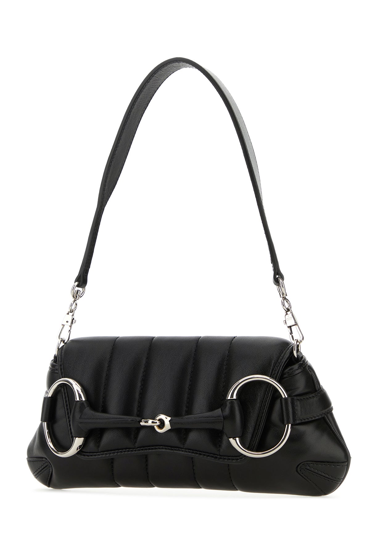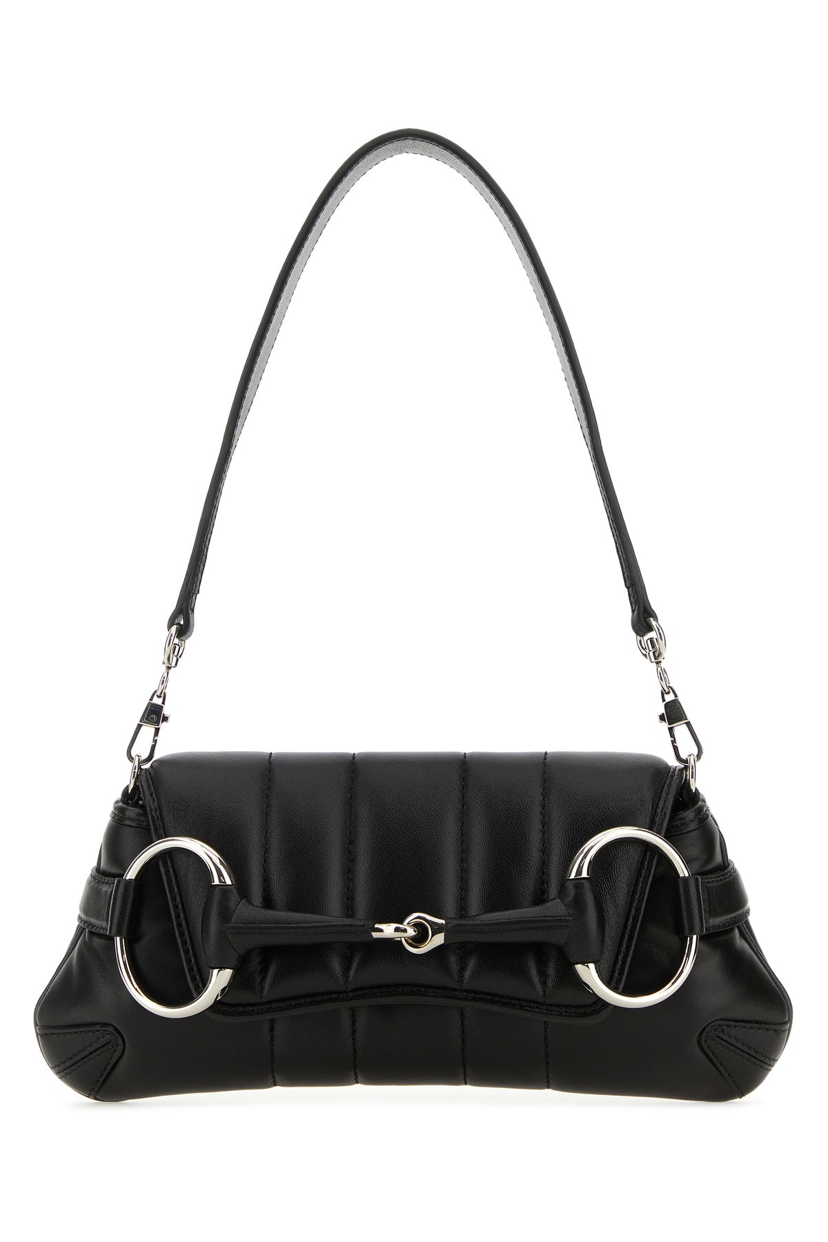 Shoulder bag realized in quilted smooth leather enriched by maxi metal Horsebit detail at the front.