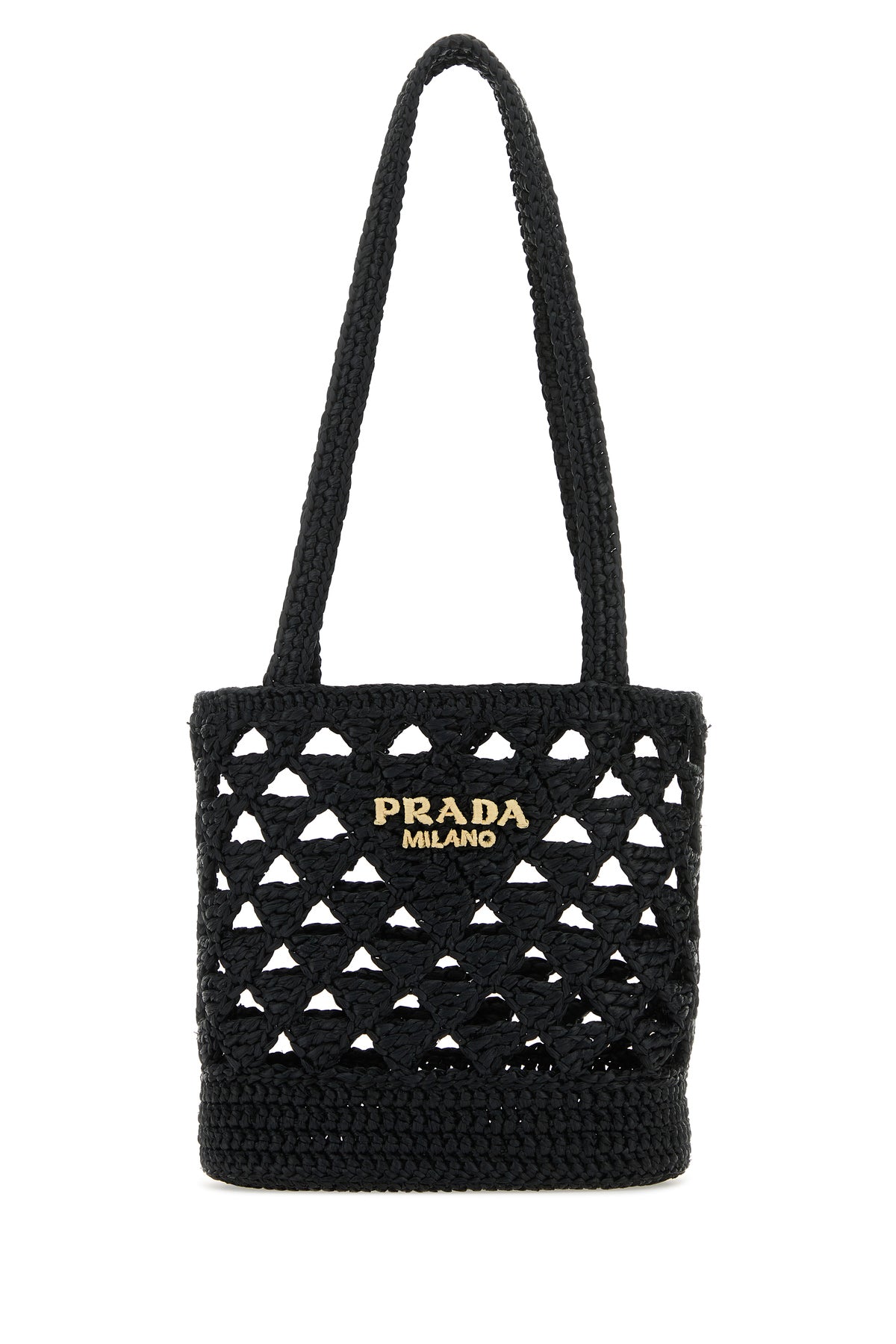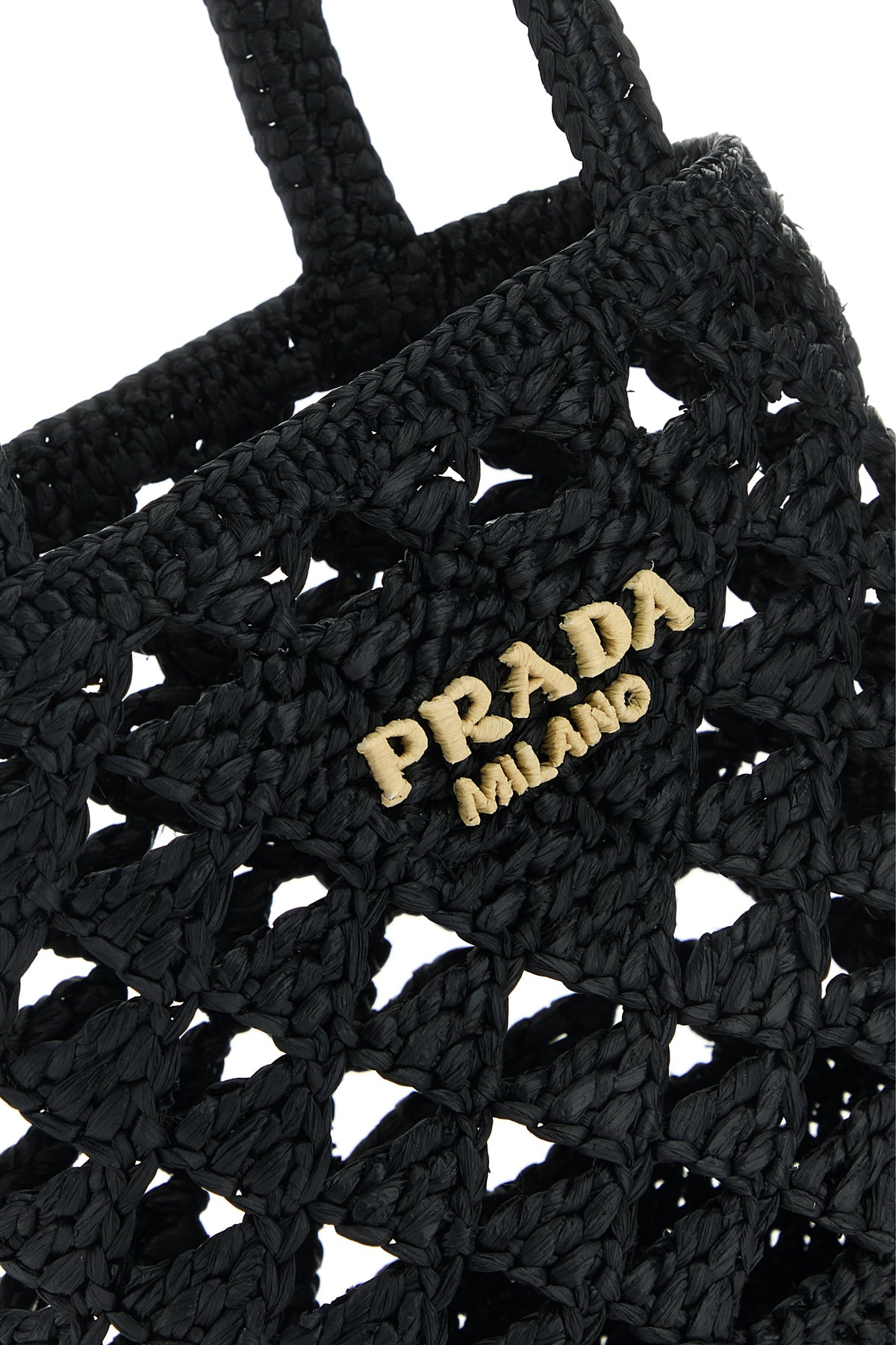 Handbag realized in woven straw characterized by contrasting logoed embroidery at the front.