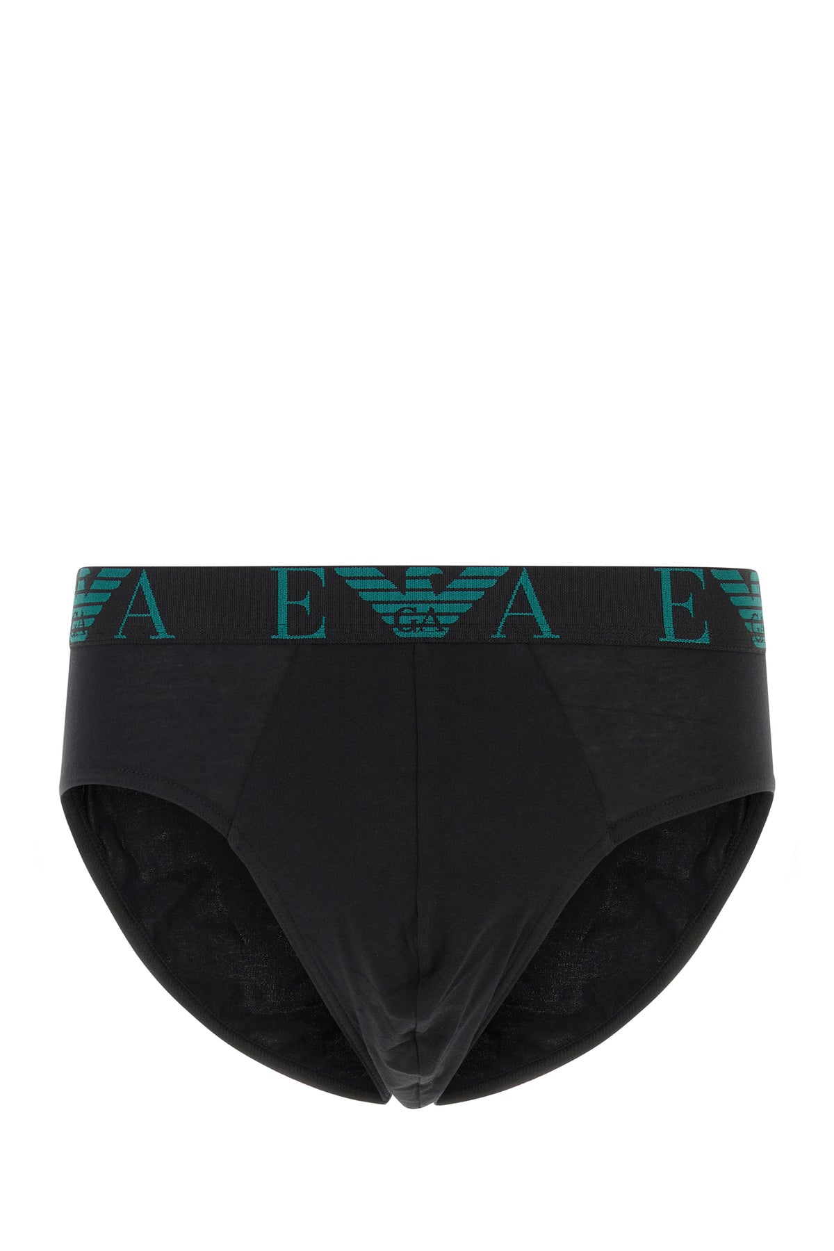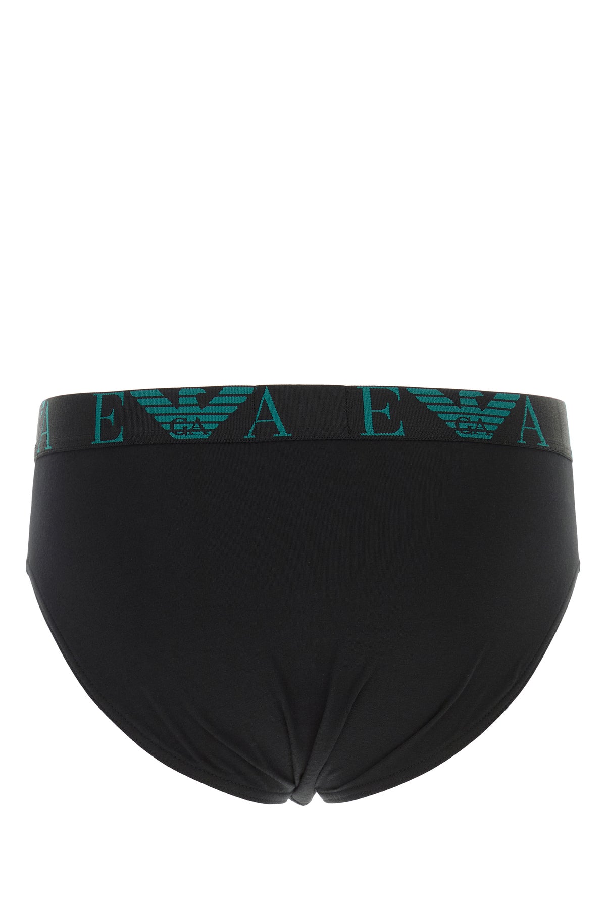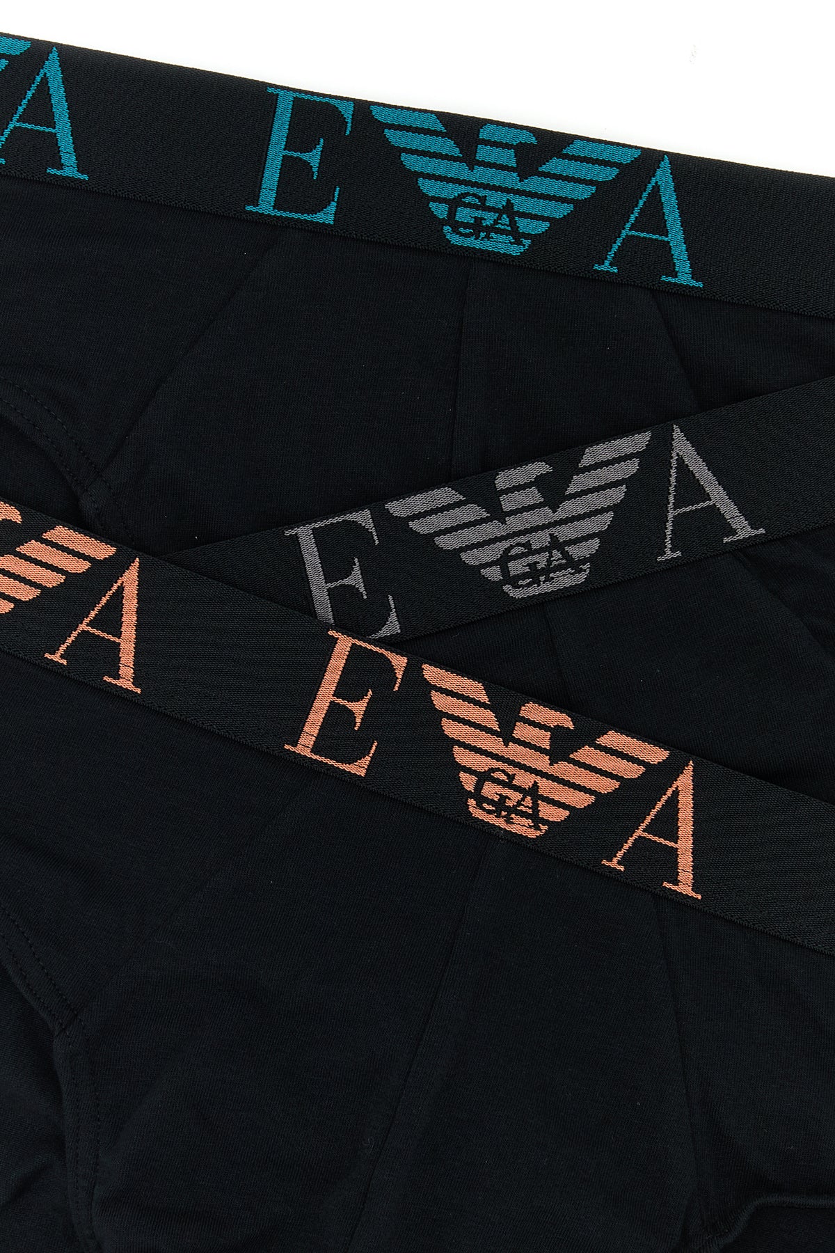 Three brief set realized in stretch cotton characterized by elastic logoed label.