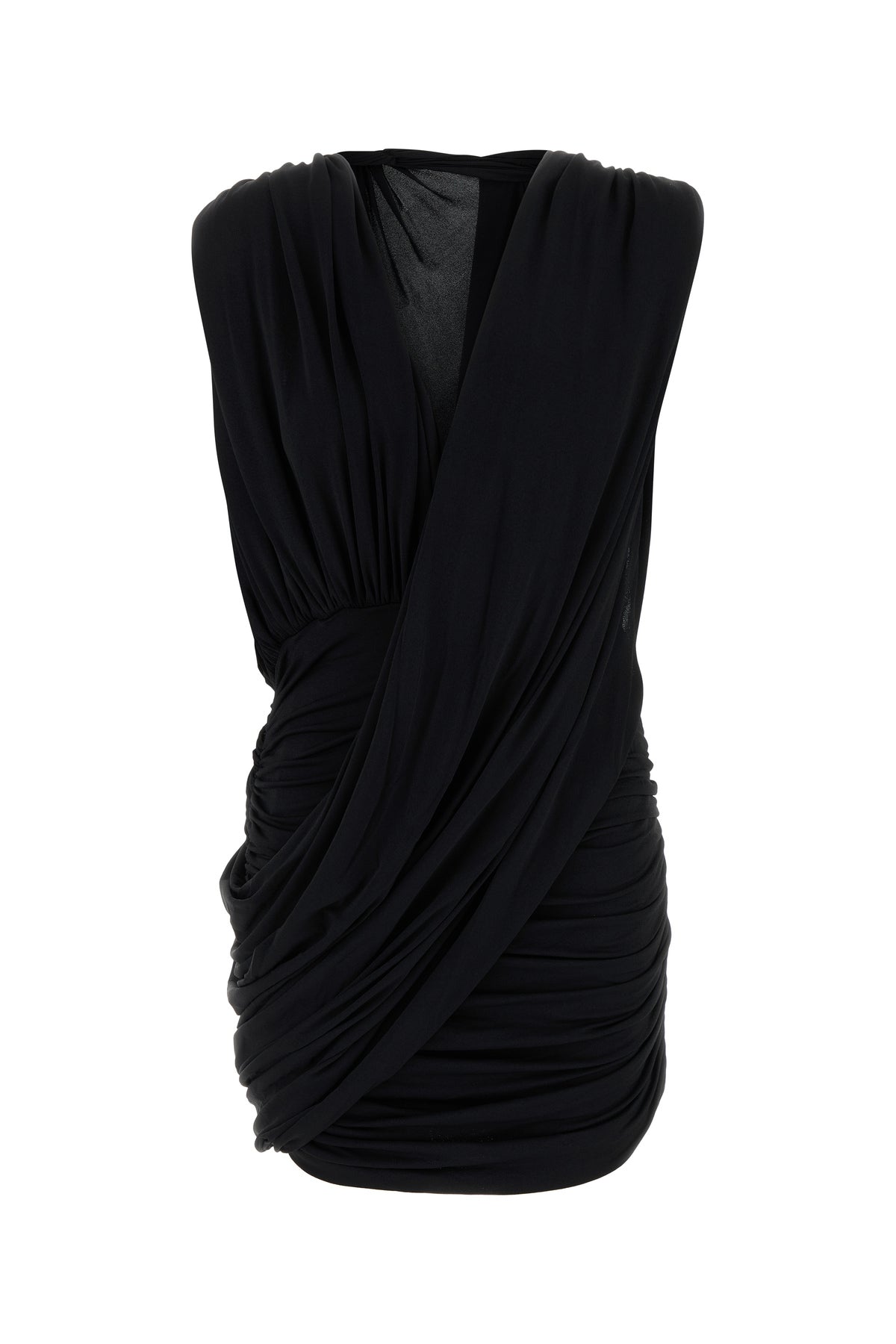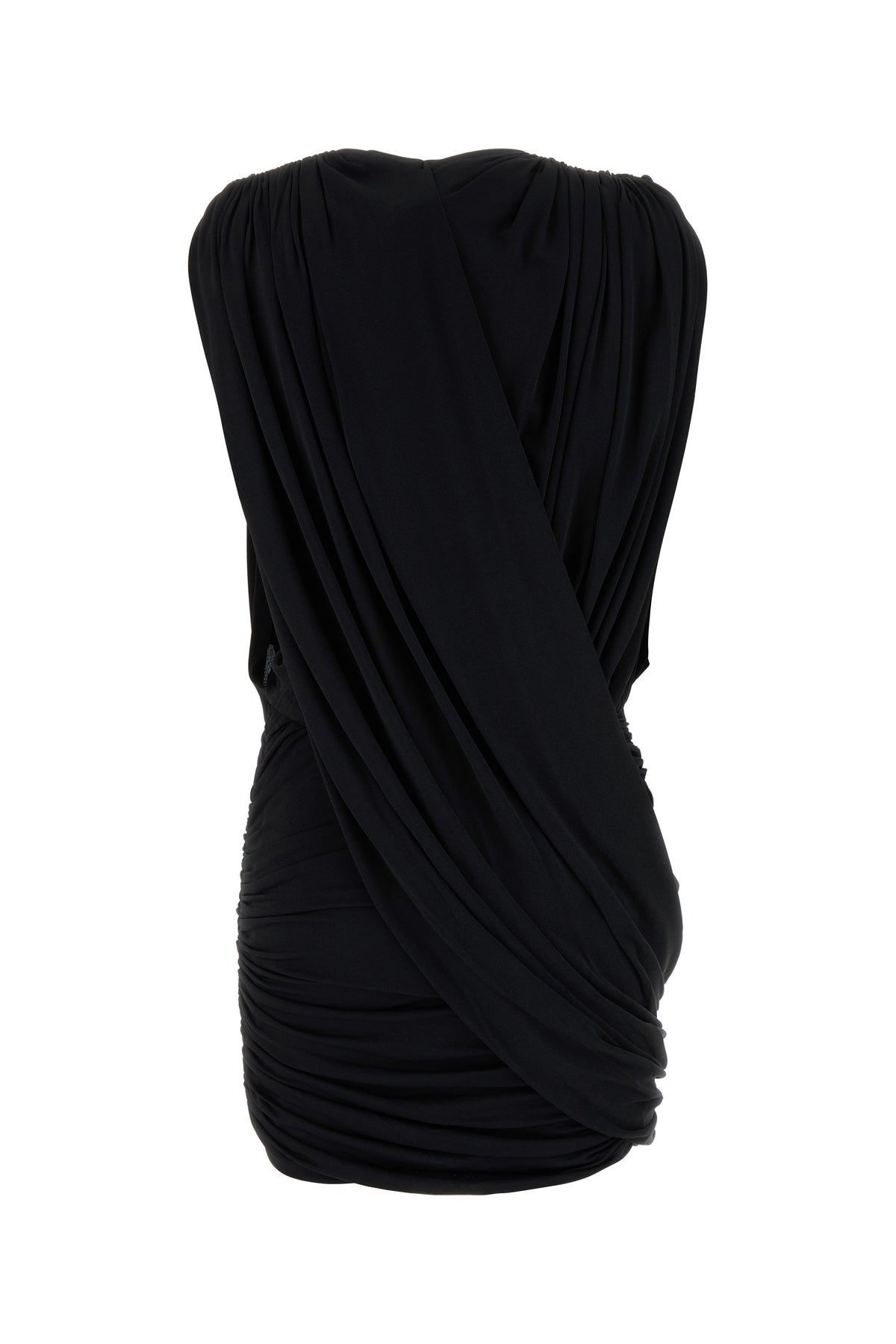 Draped mini dress realized in stretch crepe.