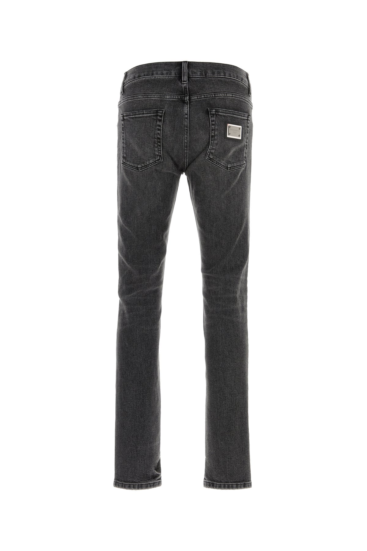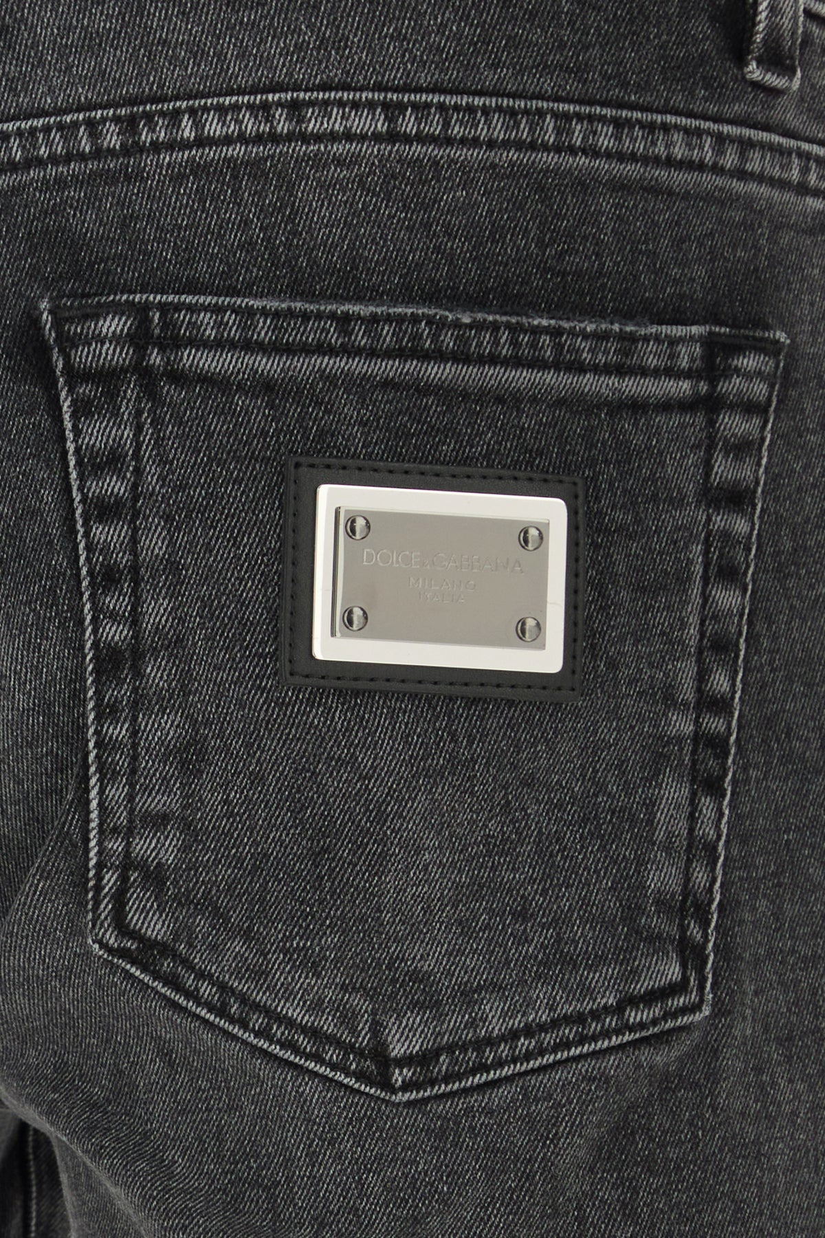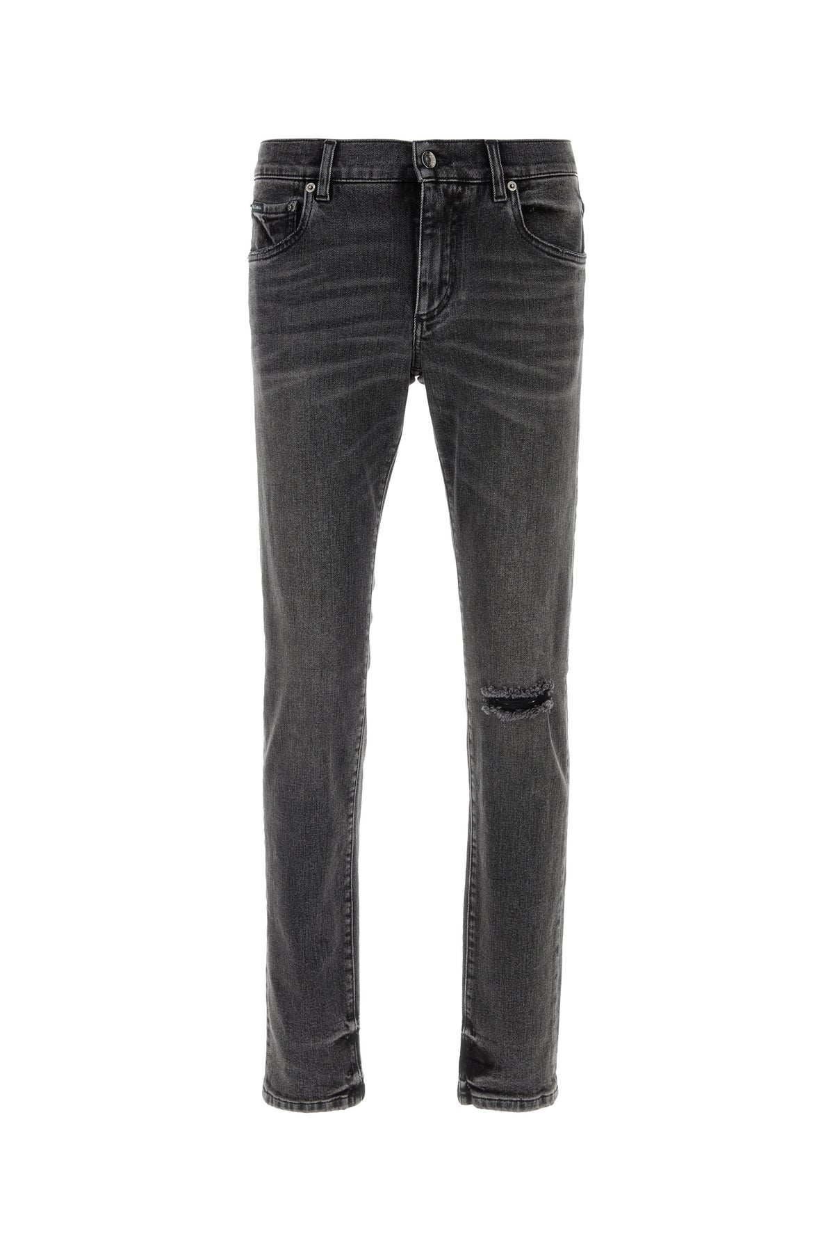 Jeans realized in stonewashed stretch cotton denim characterized by intentional rips.