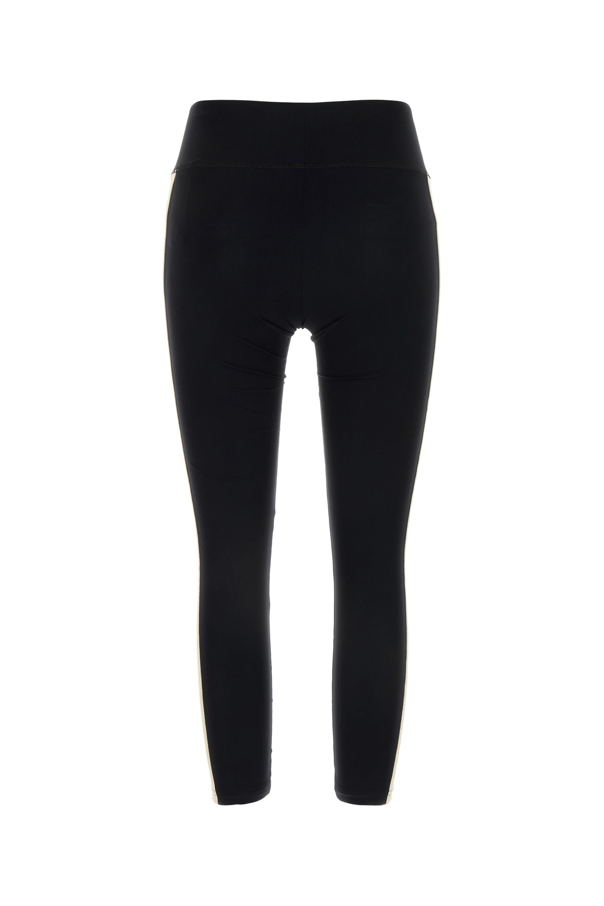 Leggings realized in stretch nylon characterized by contrasting printed logo at the front enriched by contrasting bands on the sides.