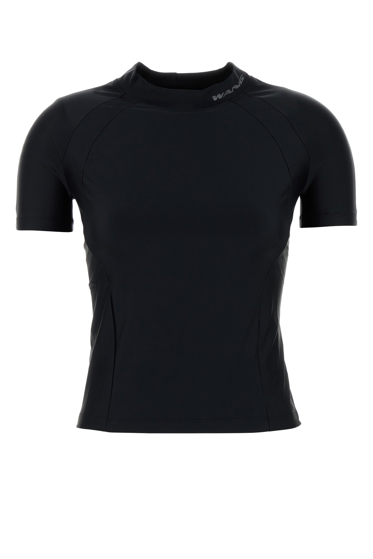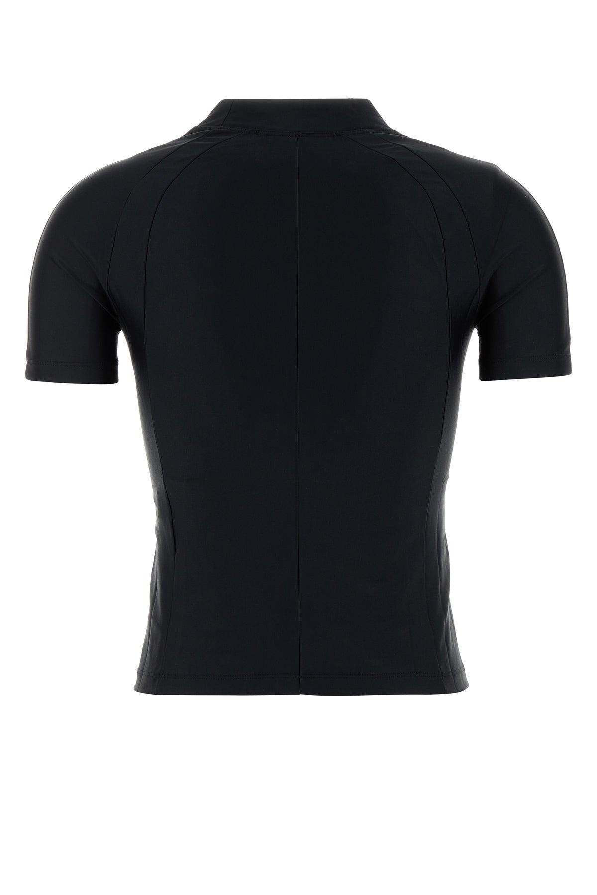 T-shirt realized in stretch nylon characterized by laminated print logo at the top.