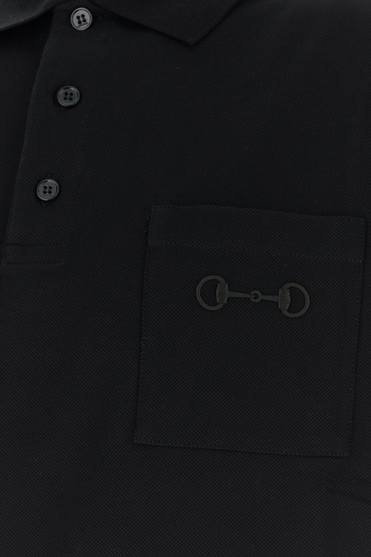 Polo shirt realized in stretch cotton piquet characterized by Horsebit embroidery on the chest.