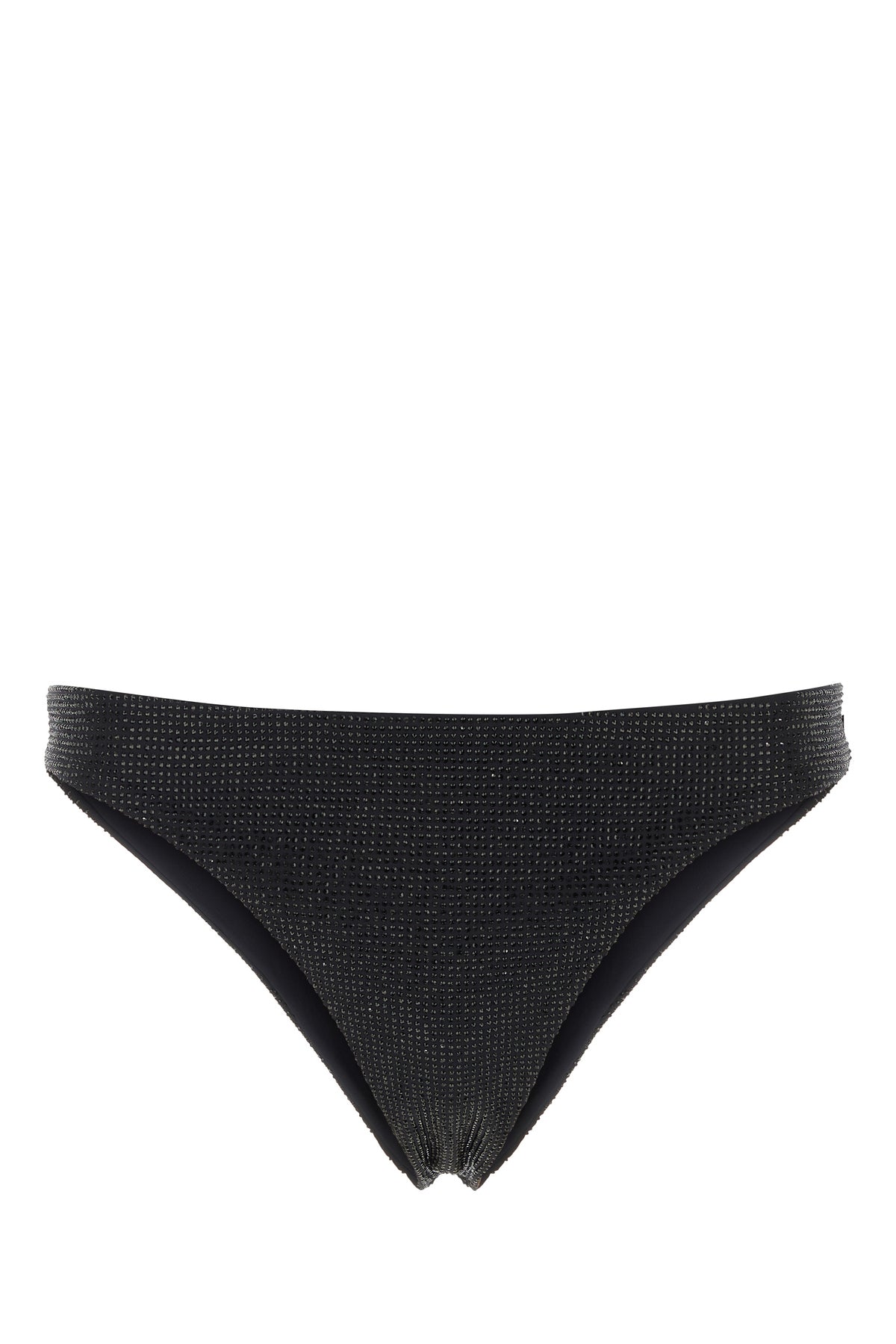 Bikini bottom realized in stretch Re-Nylon entirely covered by rhinestones.