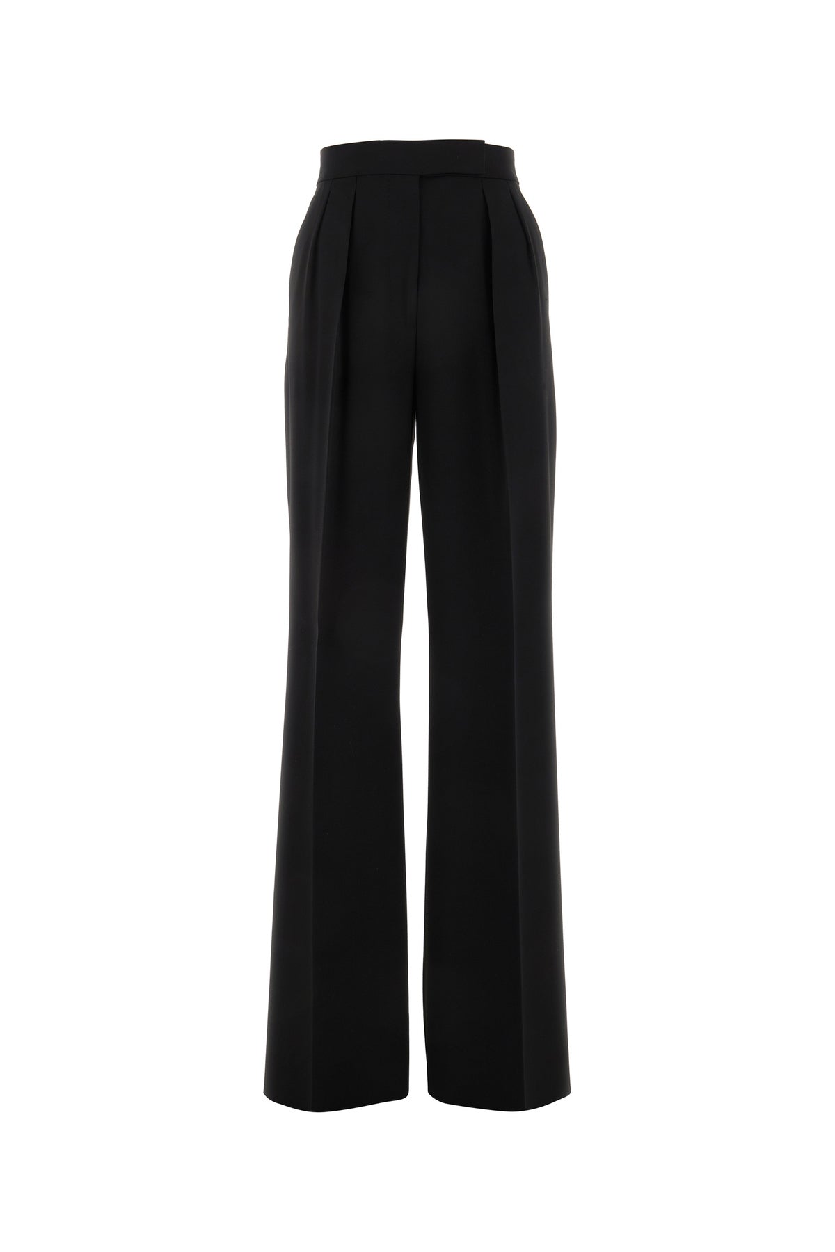 Wide-leg pant realized in stretch virgin wool with tonal satin inserts on the sides characterized by inverted pleats.