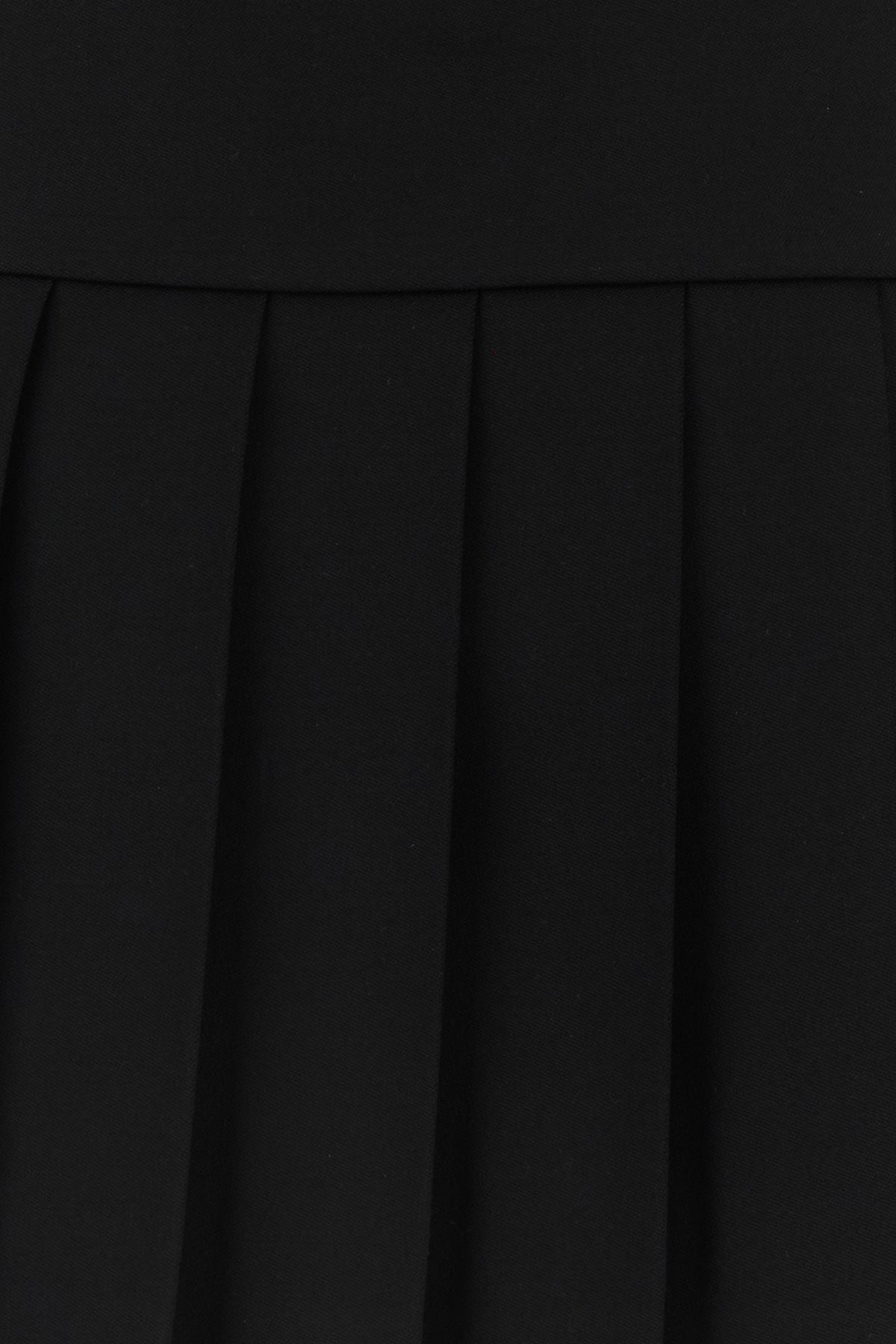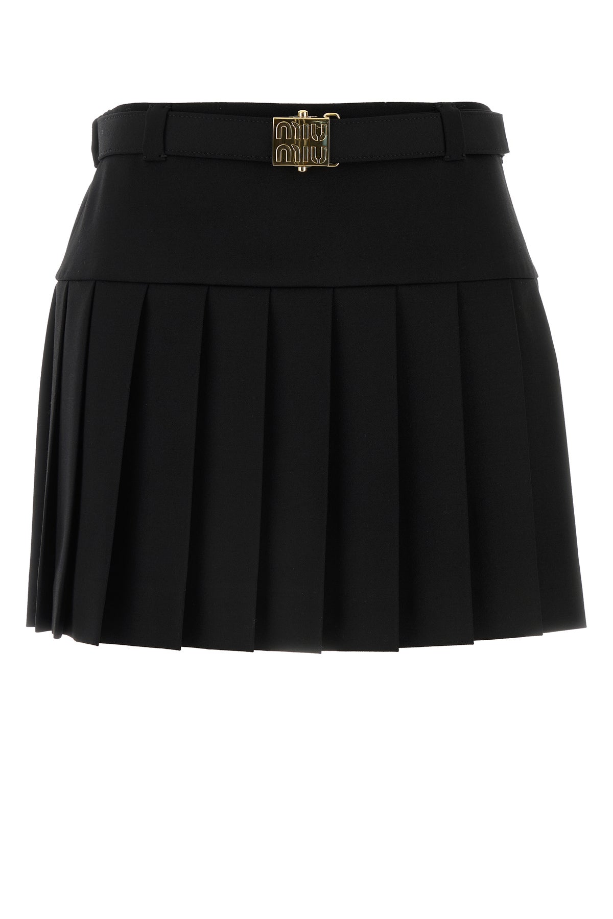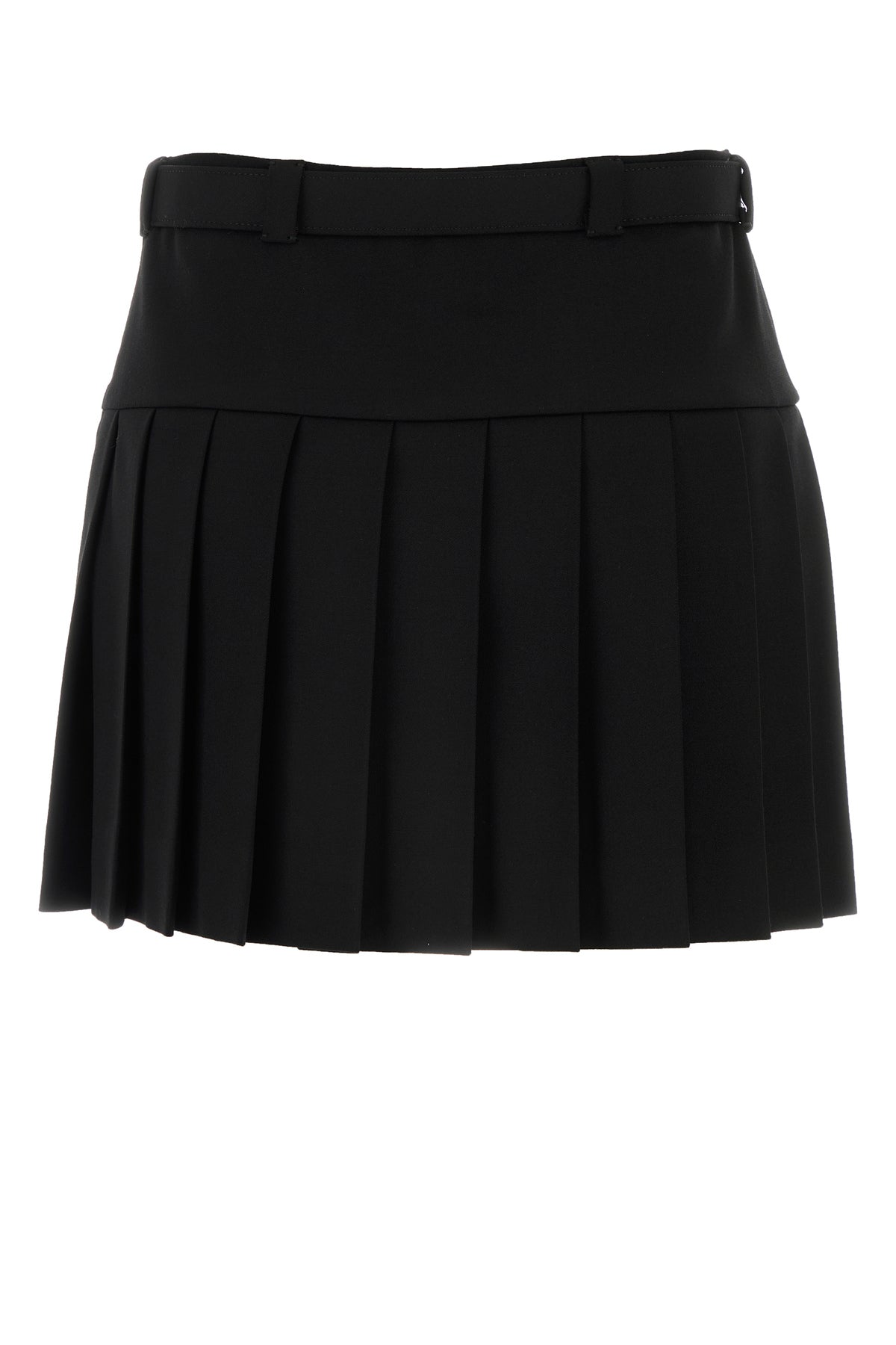 Pleated mini skirt realized in stretch wool enriched by tonal fabric belt at the waist.