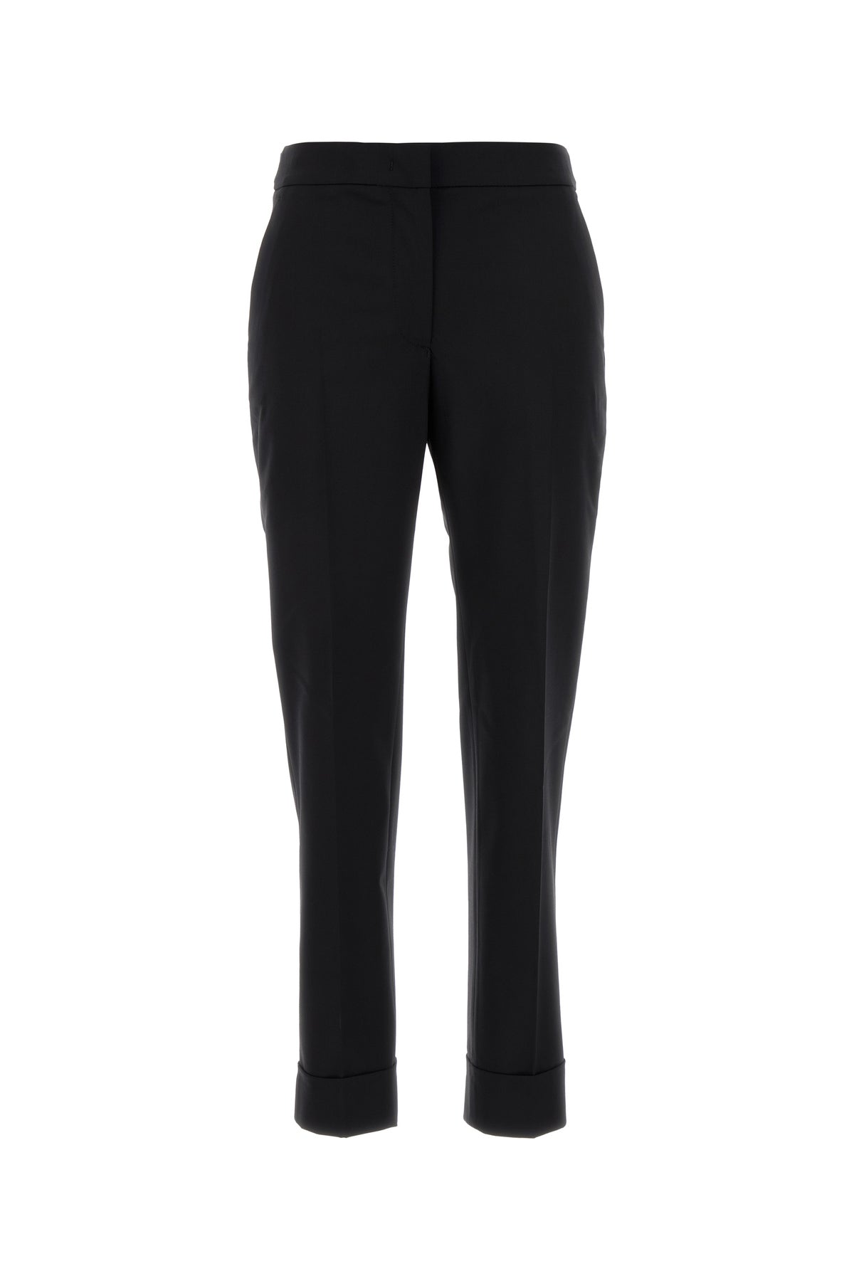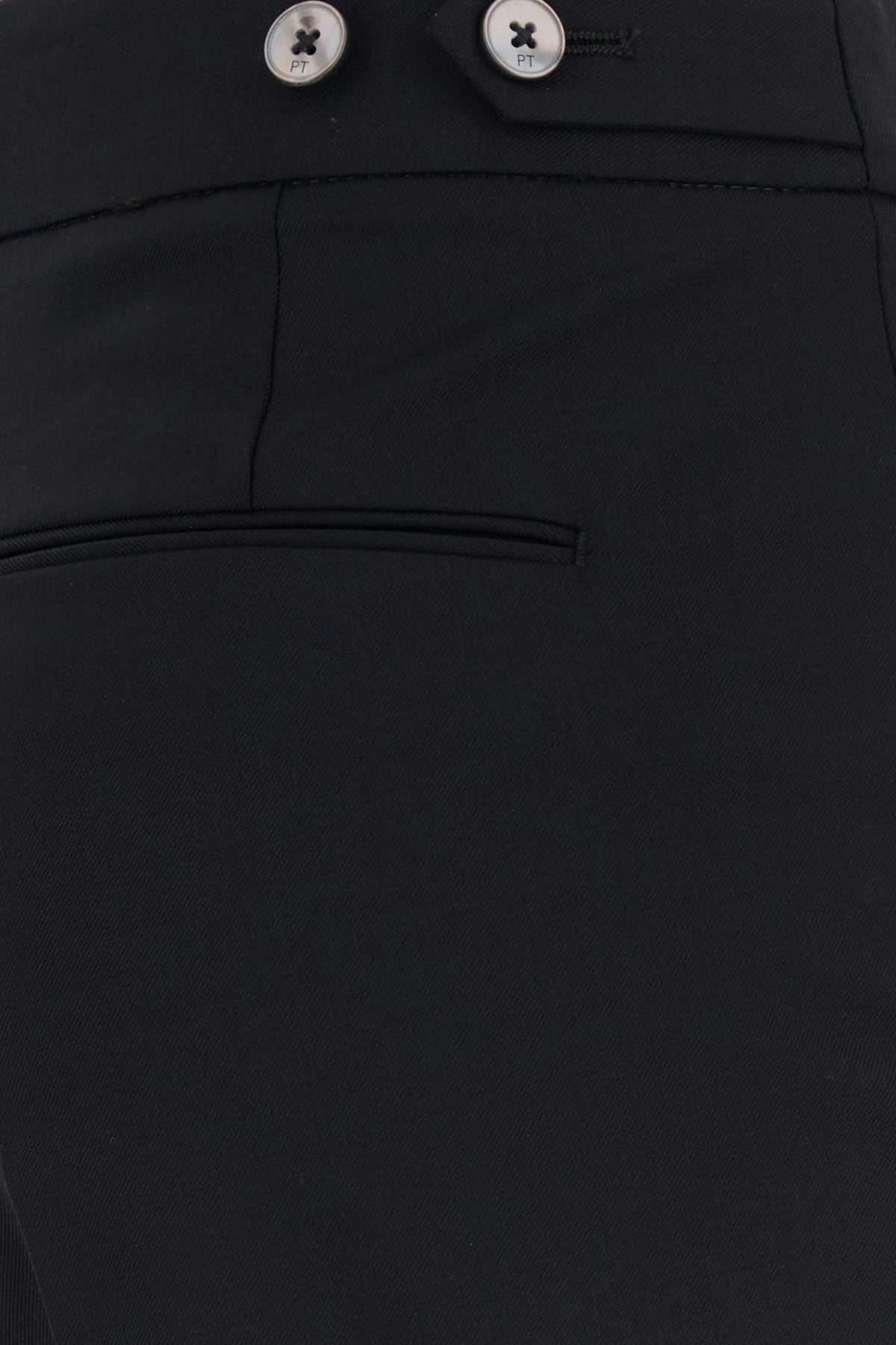 Pant realized in stretch virgin wool characterized by central ironed pleats.