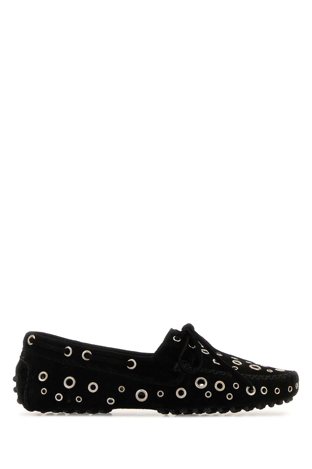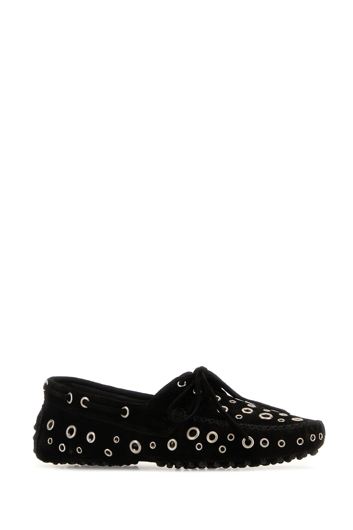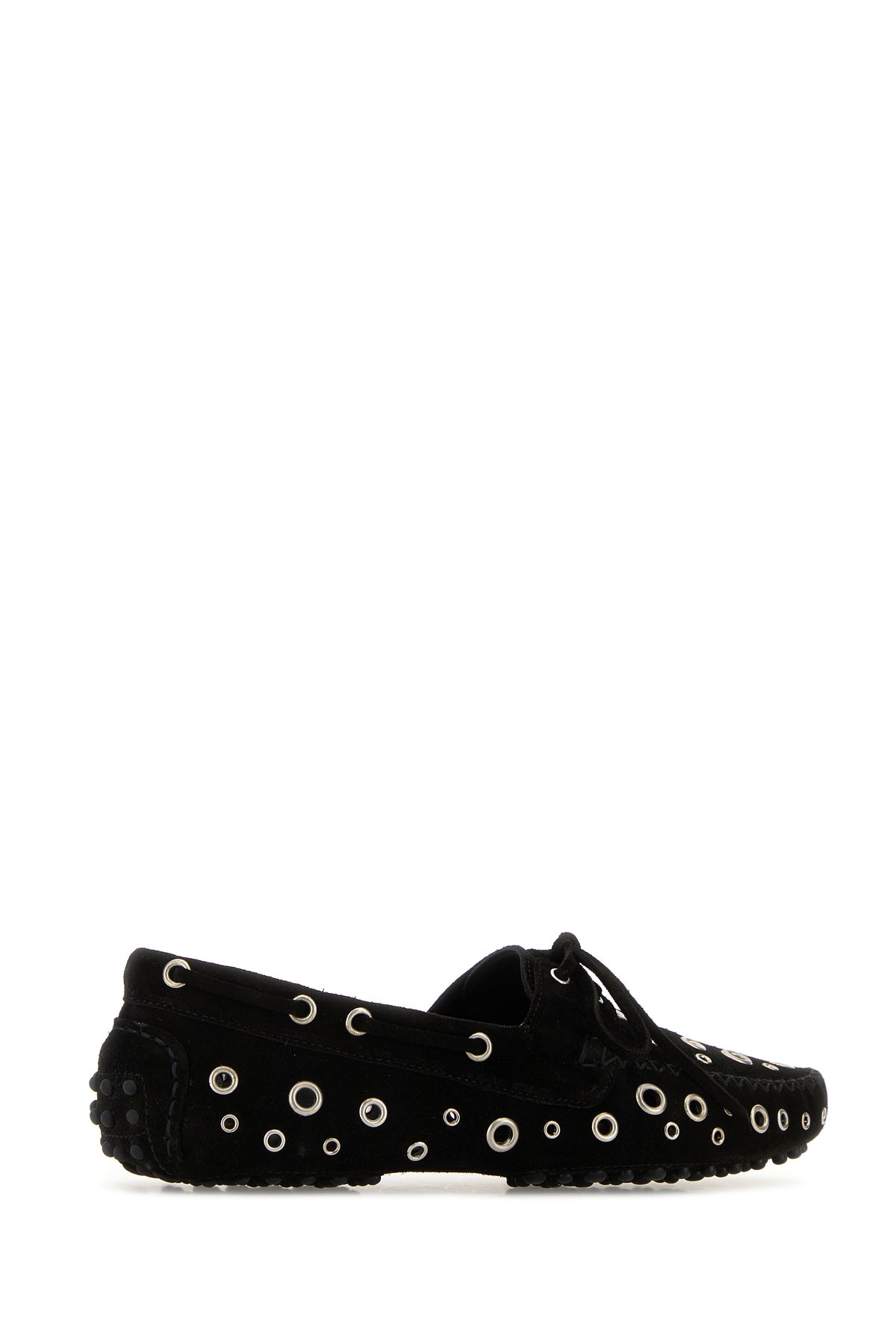 Loafers realized in suede enriched by metal studs on the entire surface.