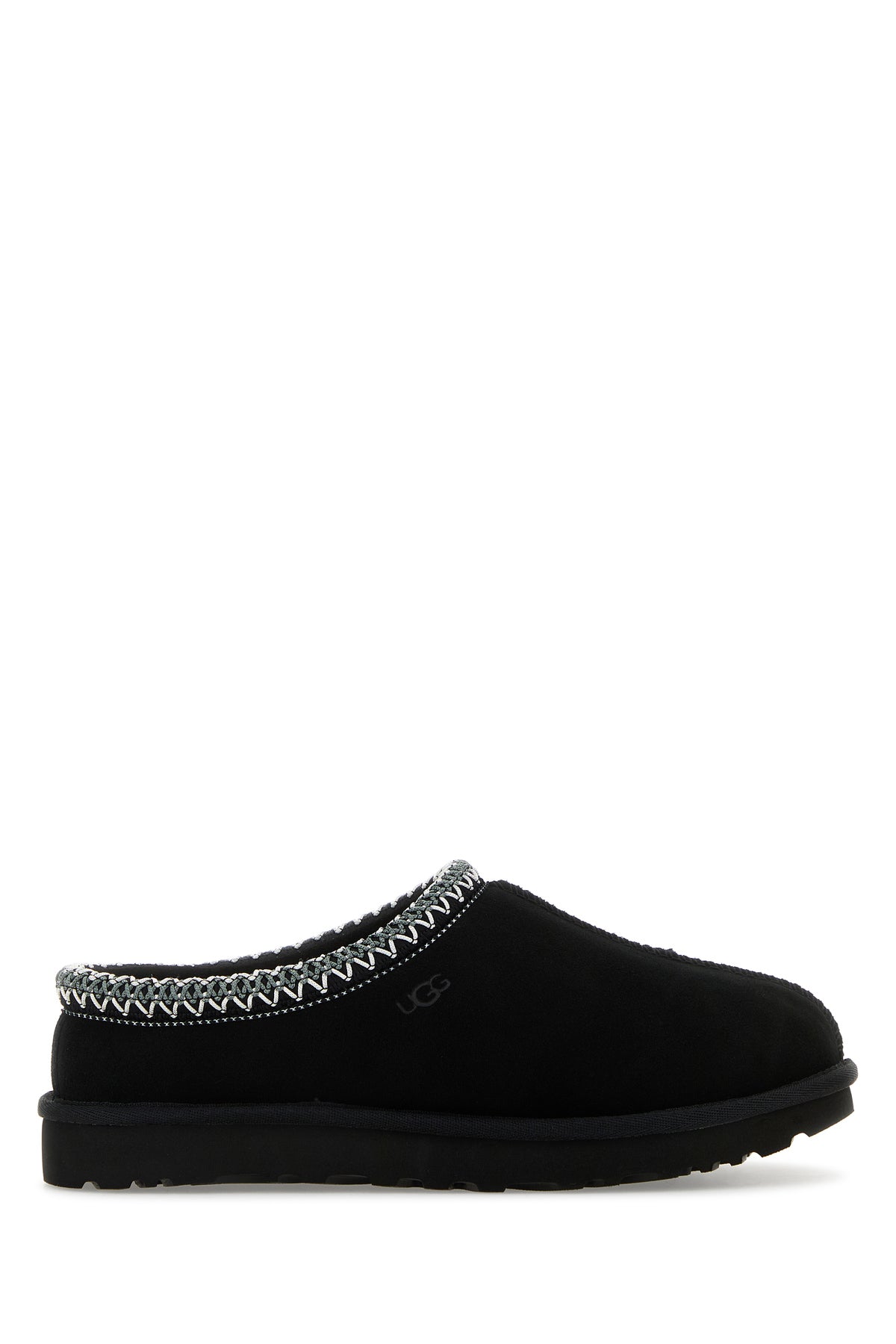 Slippers realized in suede characterized by embossed logo on the side enriched by contrasting trimming.