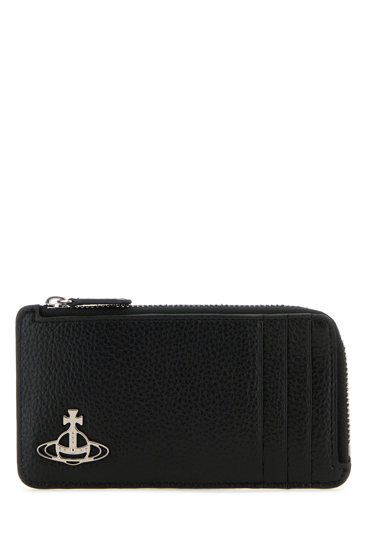 Card holder realized in pebble synthetic leather characterized by embossed logo at the back enriched by metal Orb detail at the front.