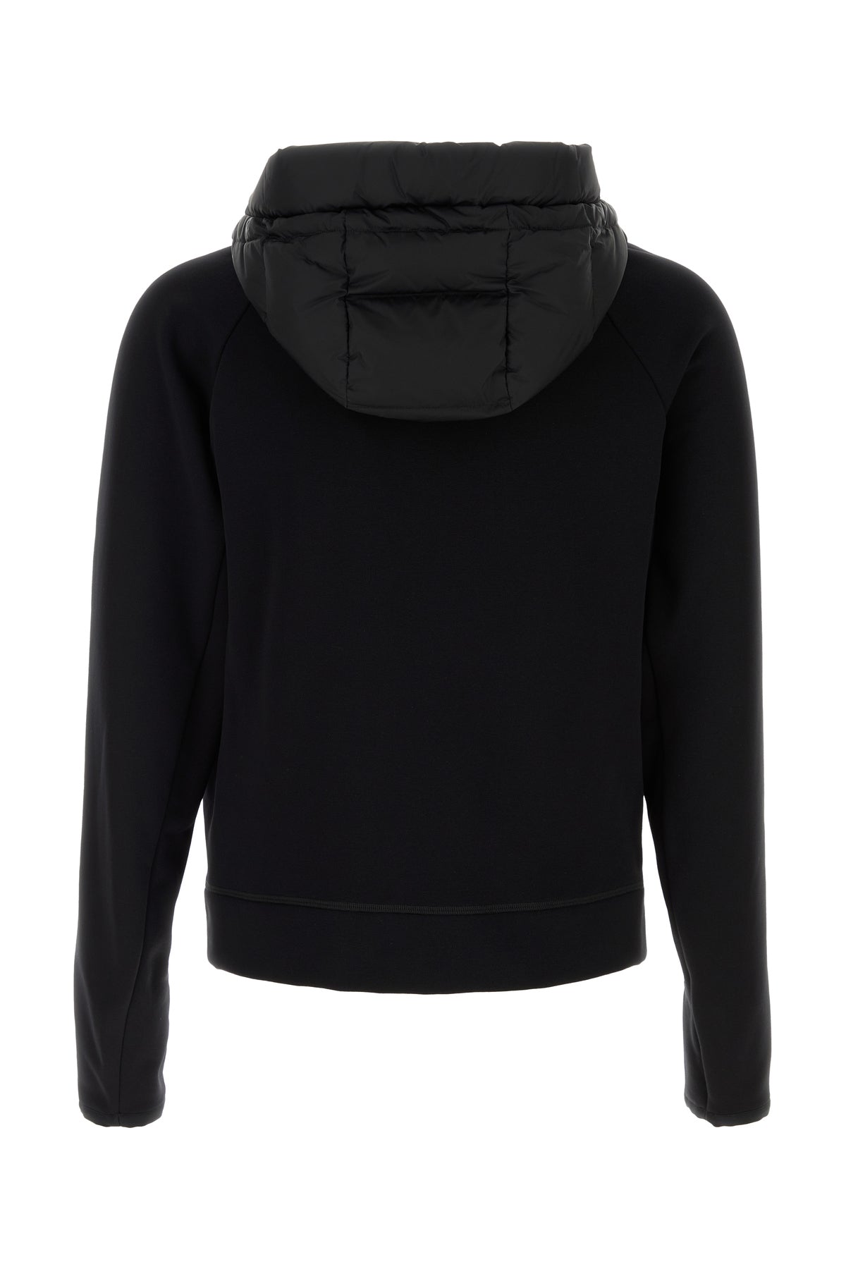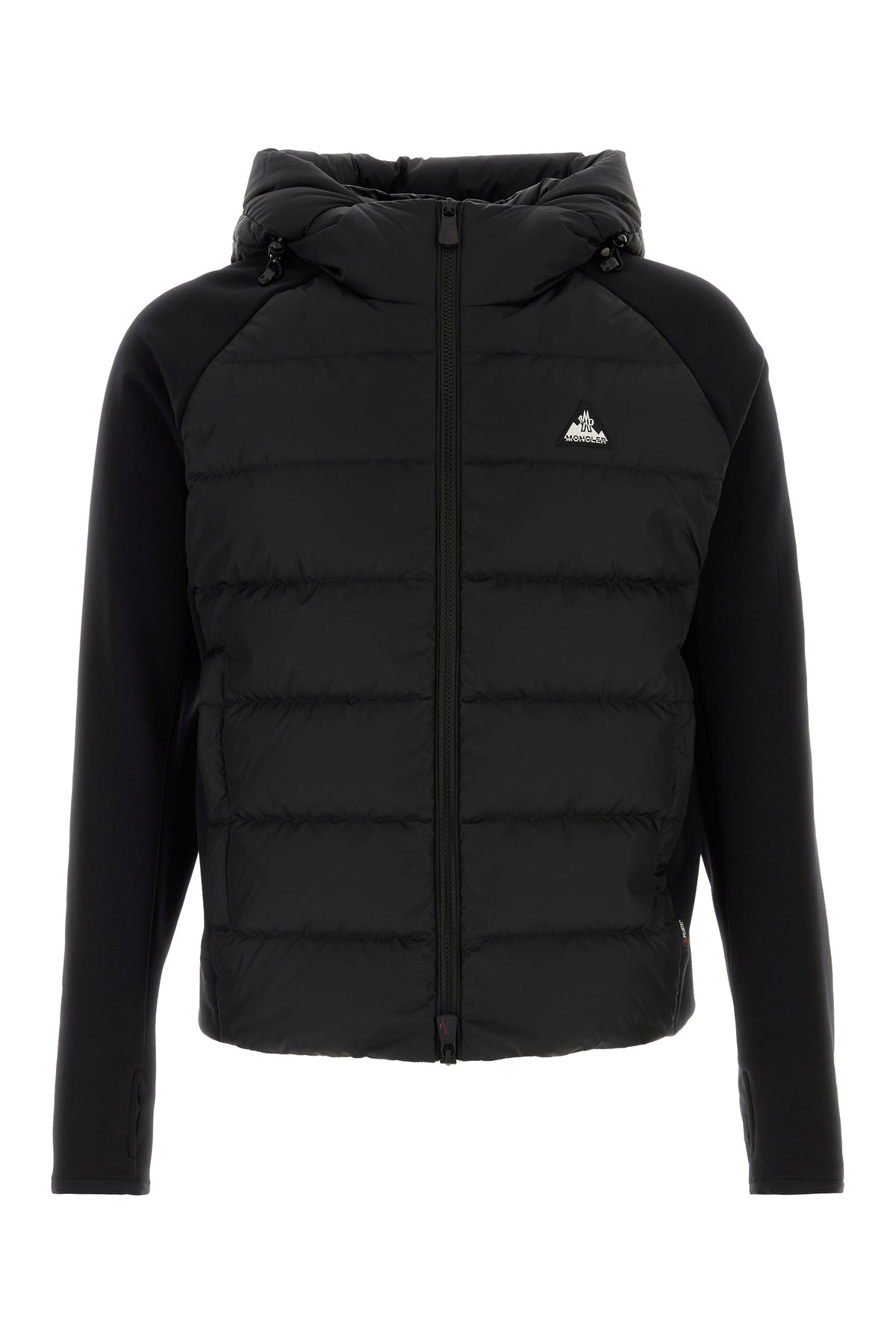 Cardigan realized in tech fabric with quilted nylon insert enriched by logoed patch on the chest.