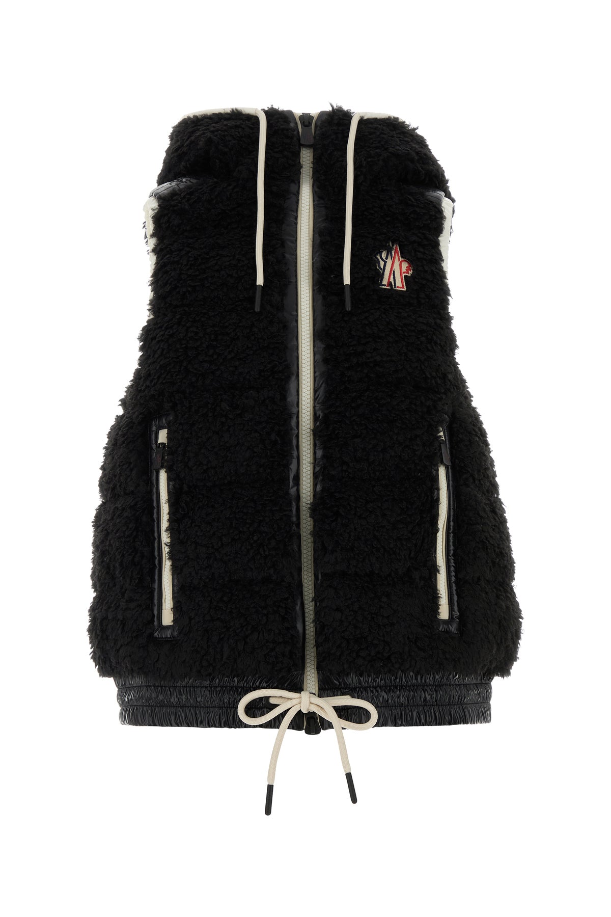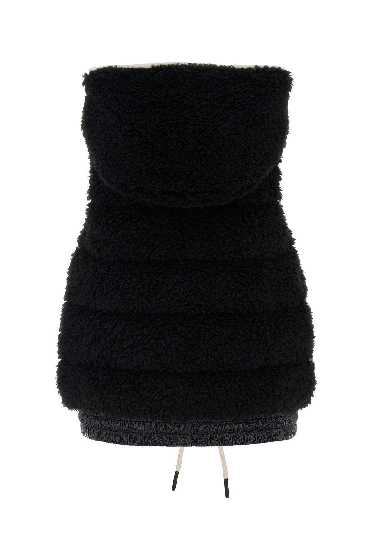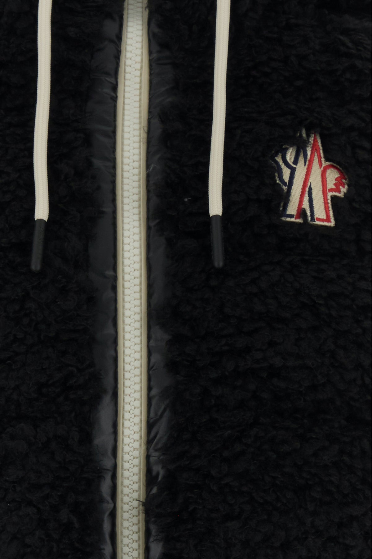 Sleeveless down jacket realized in teddy fabric enriched by contrasting logoed patch on the chest.