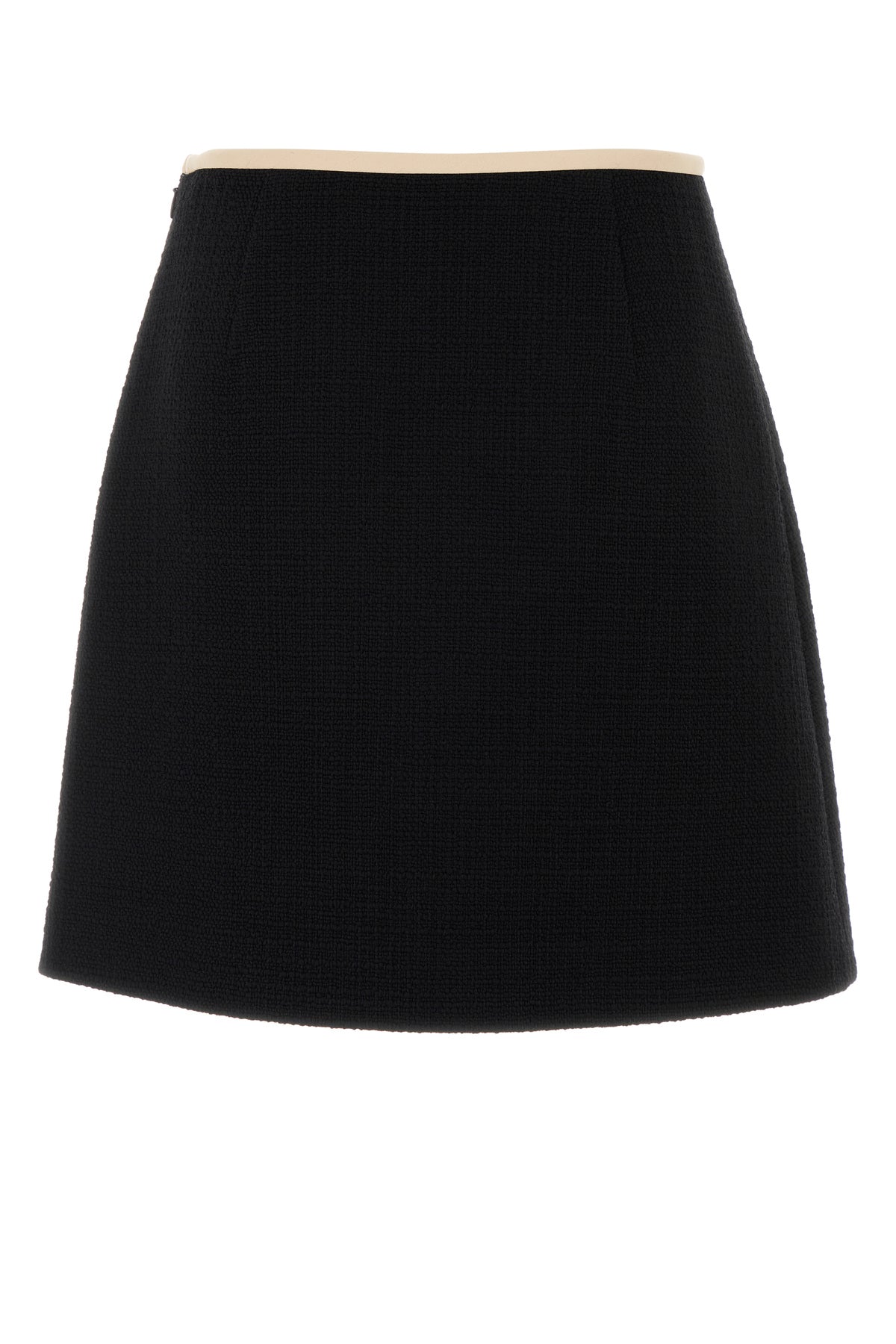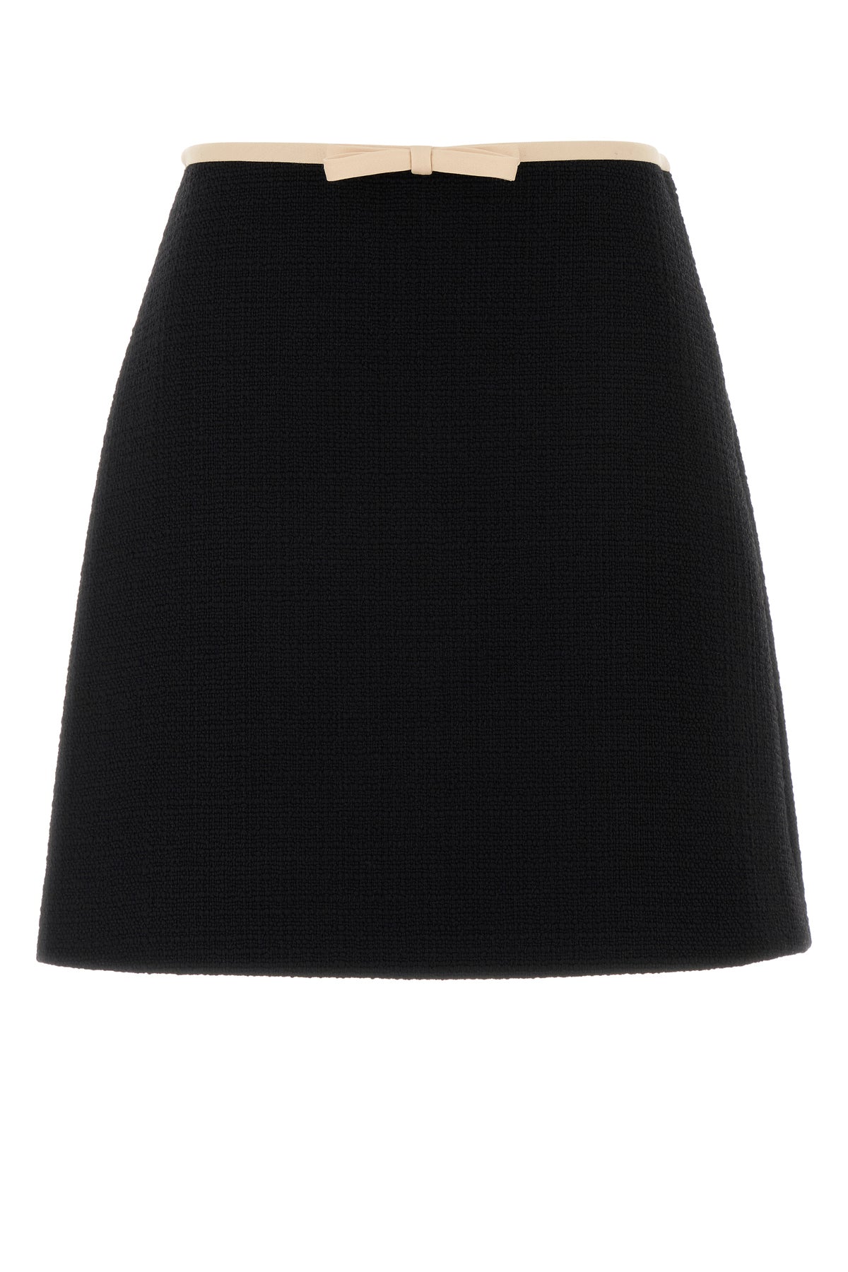 Mini skirt realized in virgin wool blend tweed enriched by contrasting crepe decorative bow at the waist.