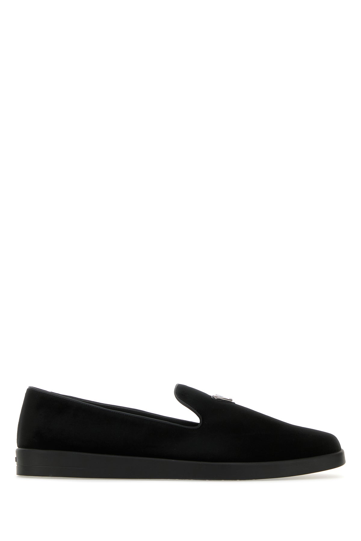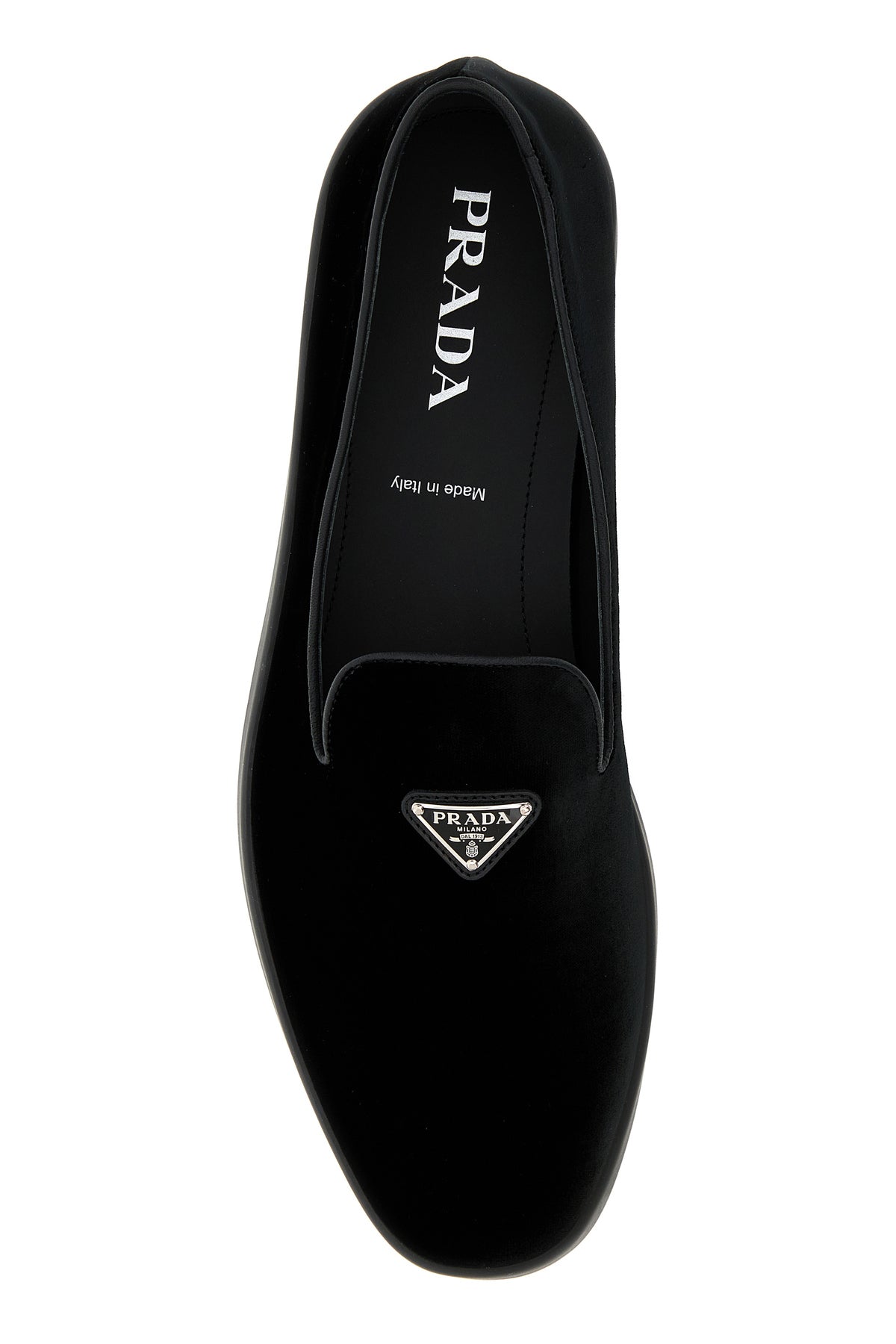 Slip ons realized in velvet characterized by logo in relief at the back enriched by iconic logoed metal triangle on the instep.