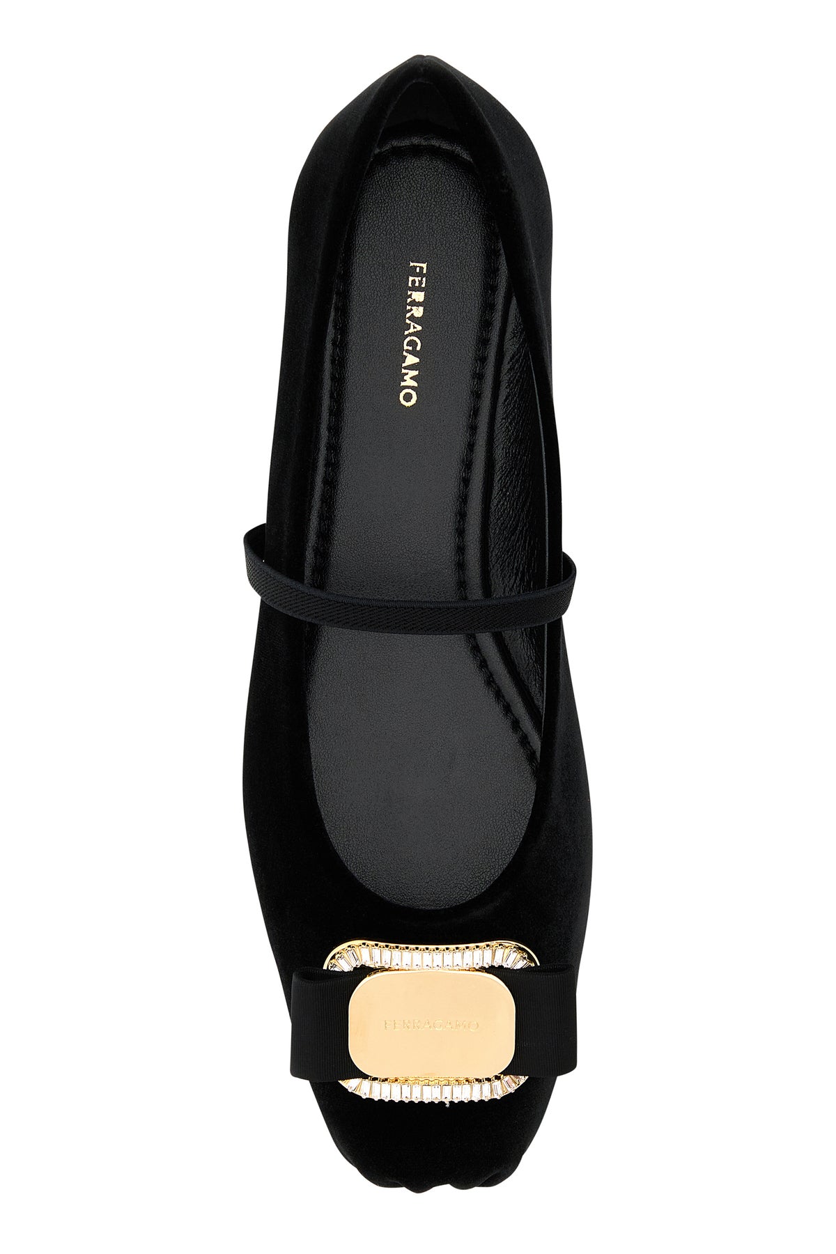 Ballerinas realized in velvet enriched by logoed jewel detail on the toe.