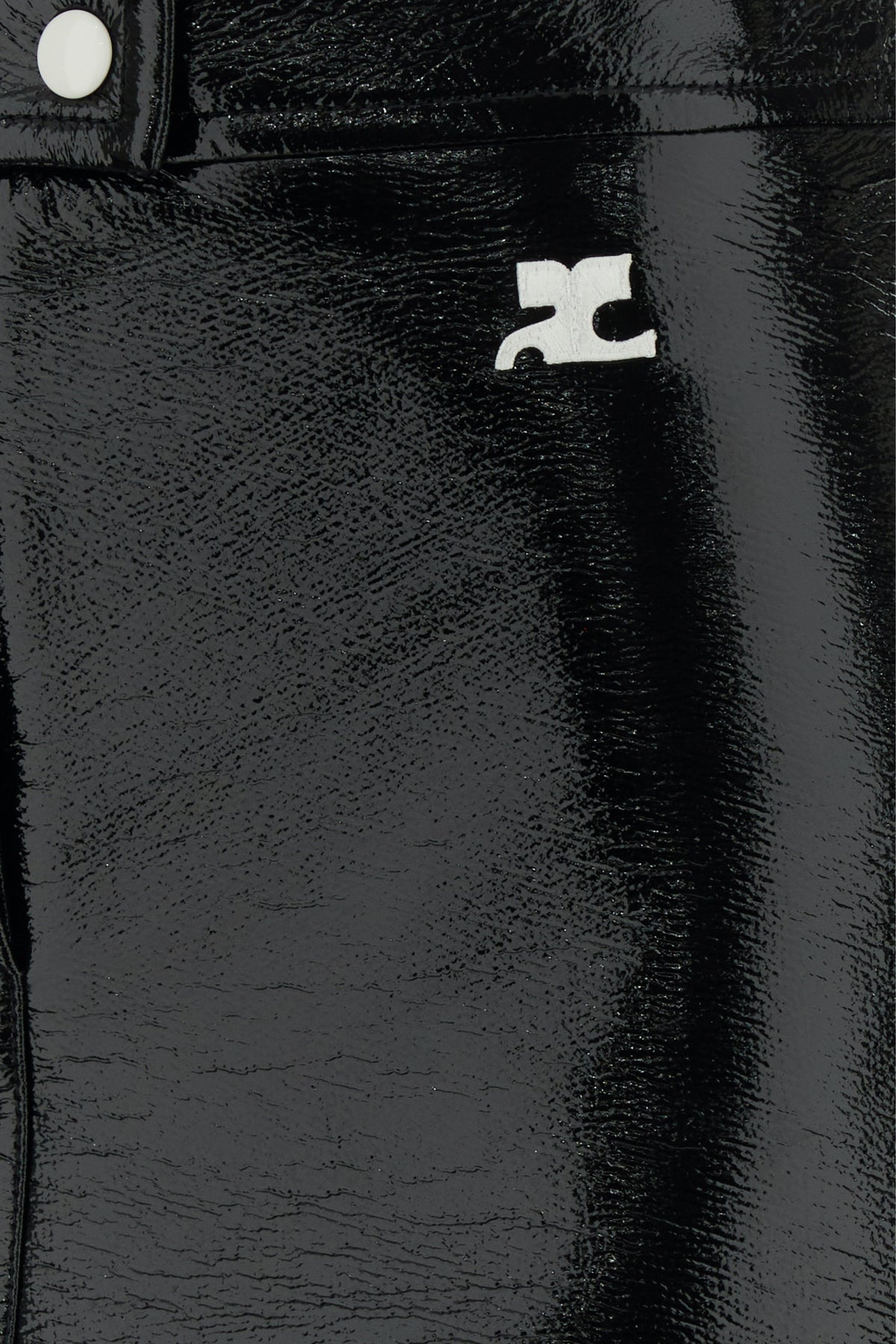 Mini skirt realized in vinyl enriched by contrasting logoed patch at the front.