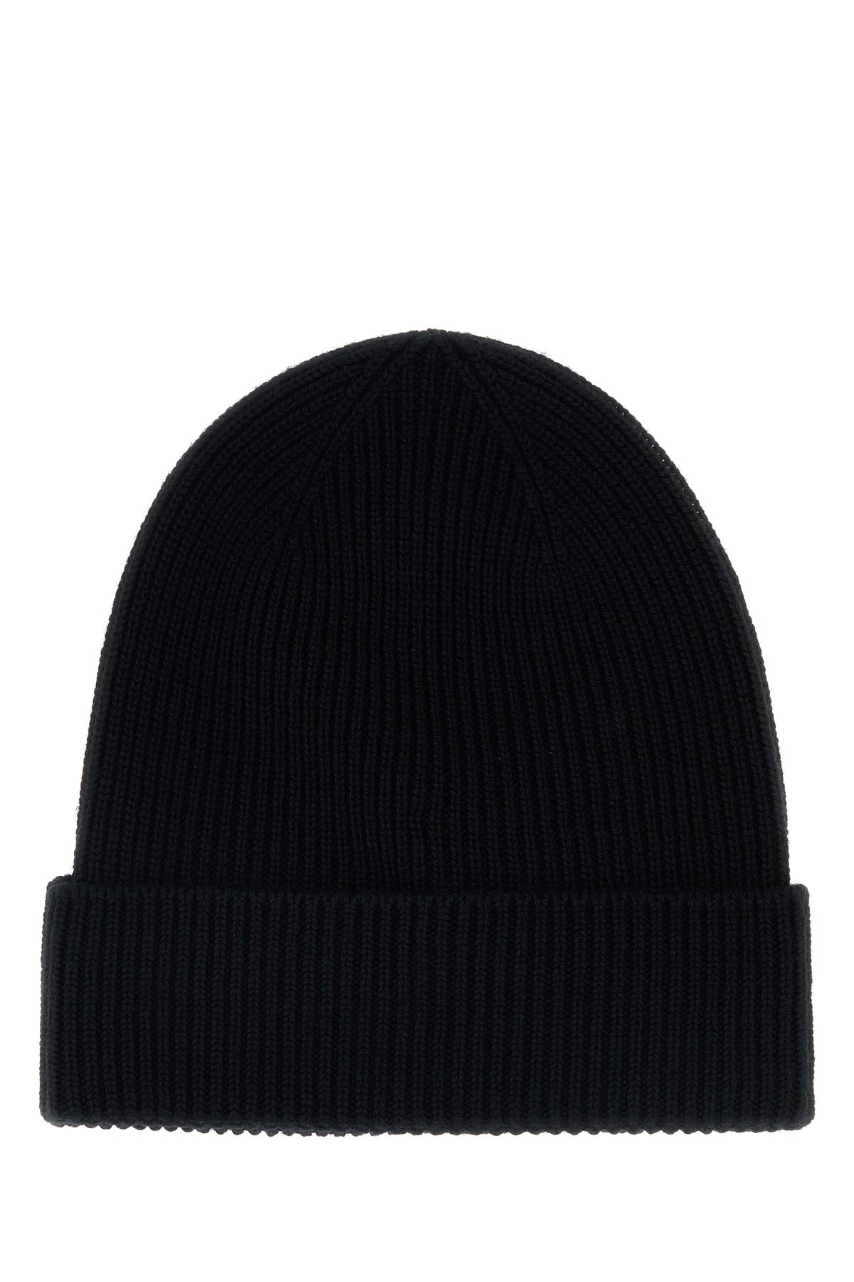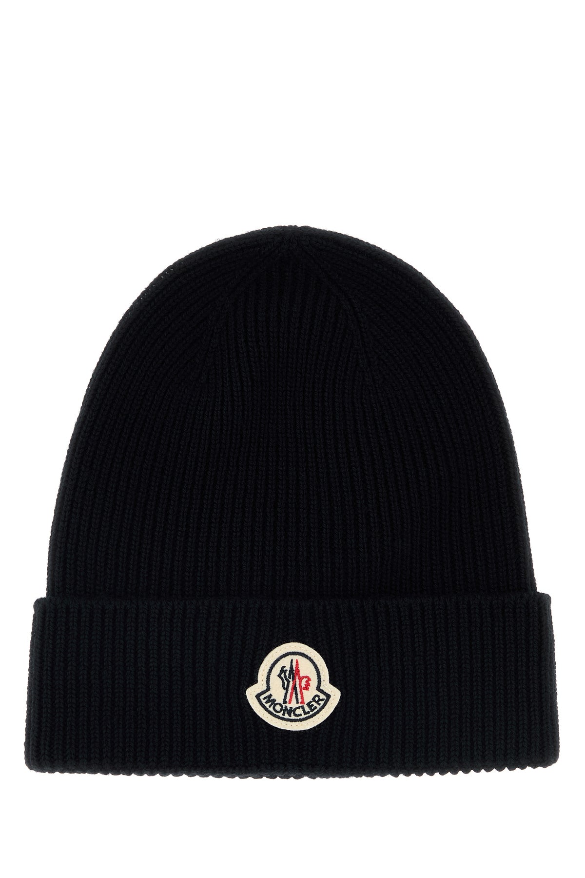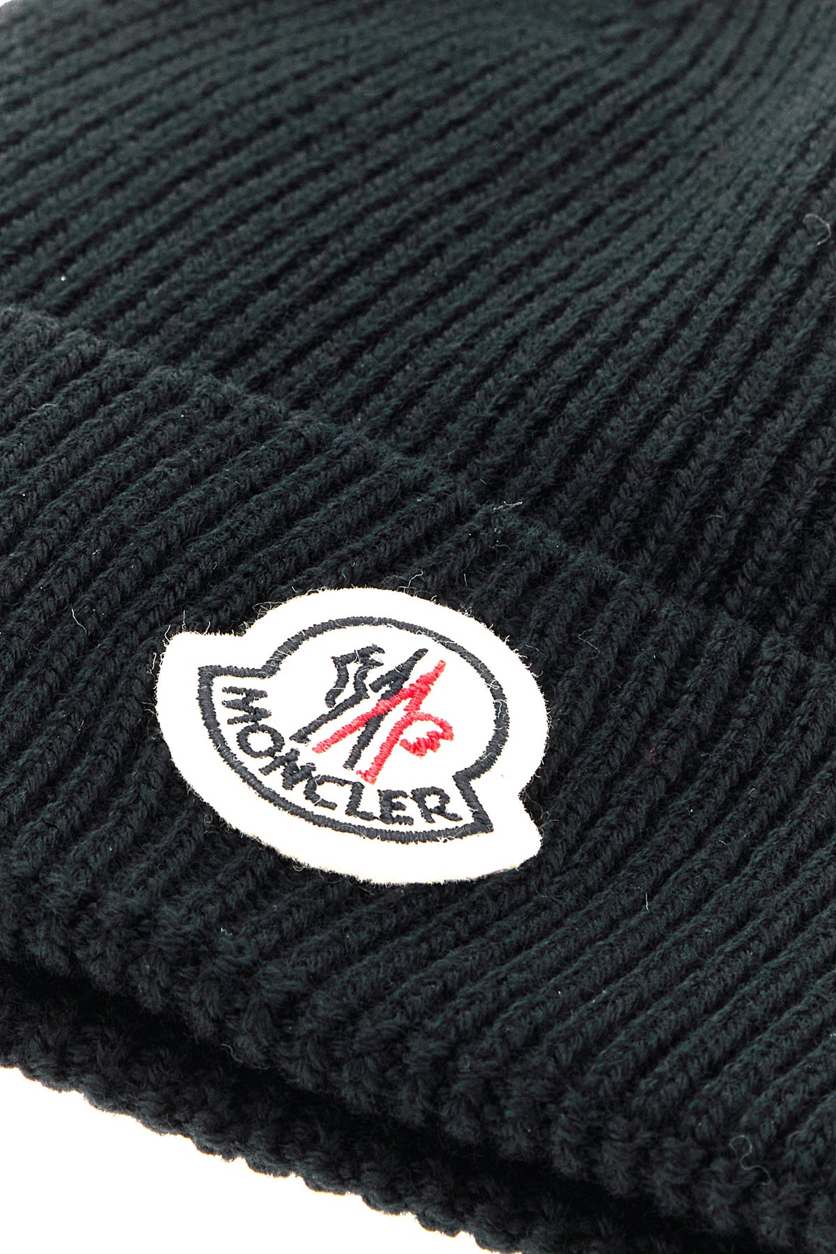 Beanie hat realized in pure virgin wool enriched by contrasting logoed patch at the front.