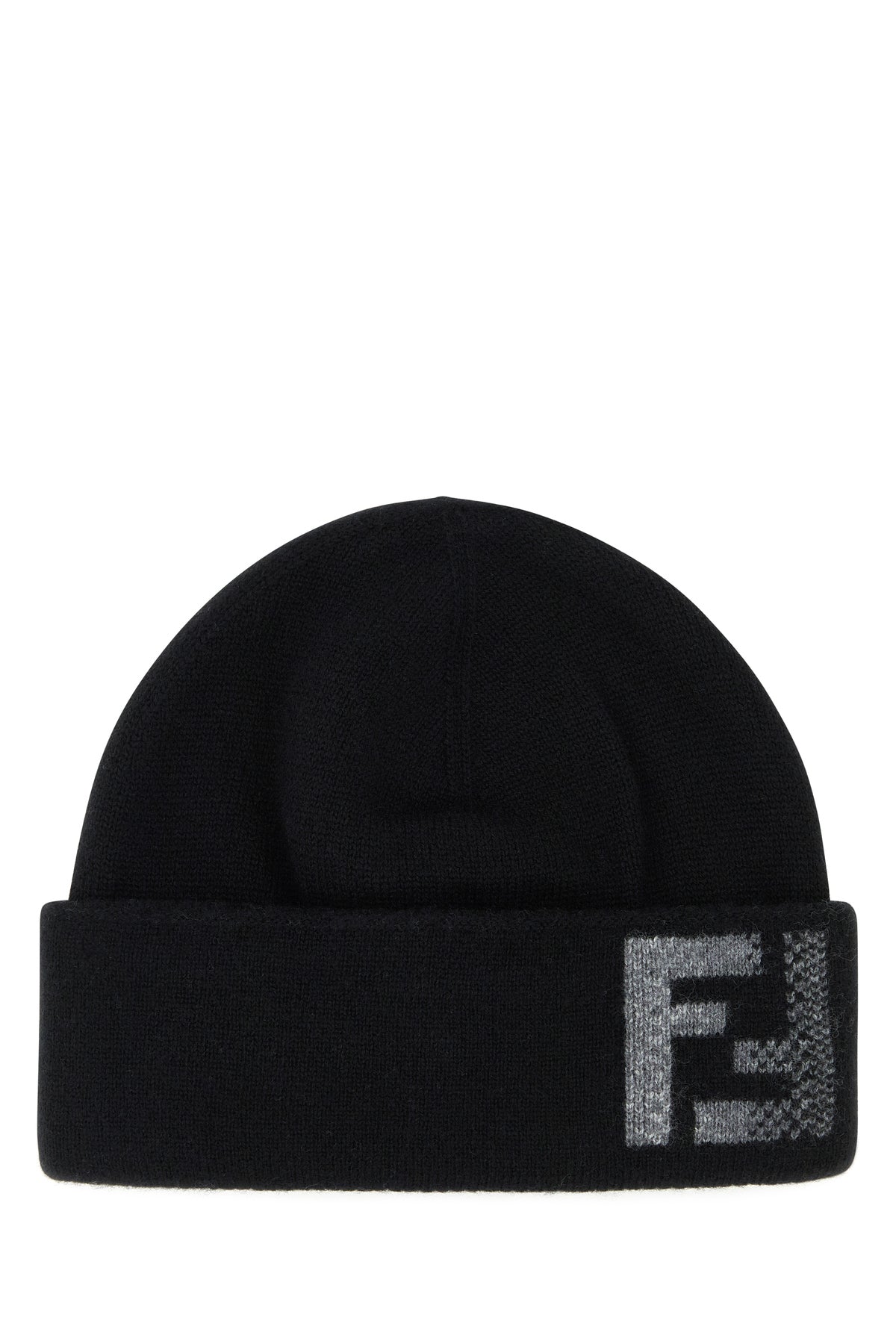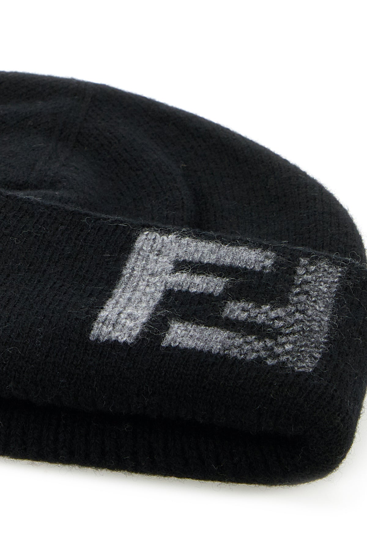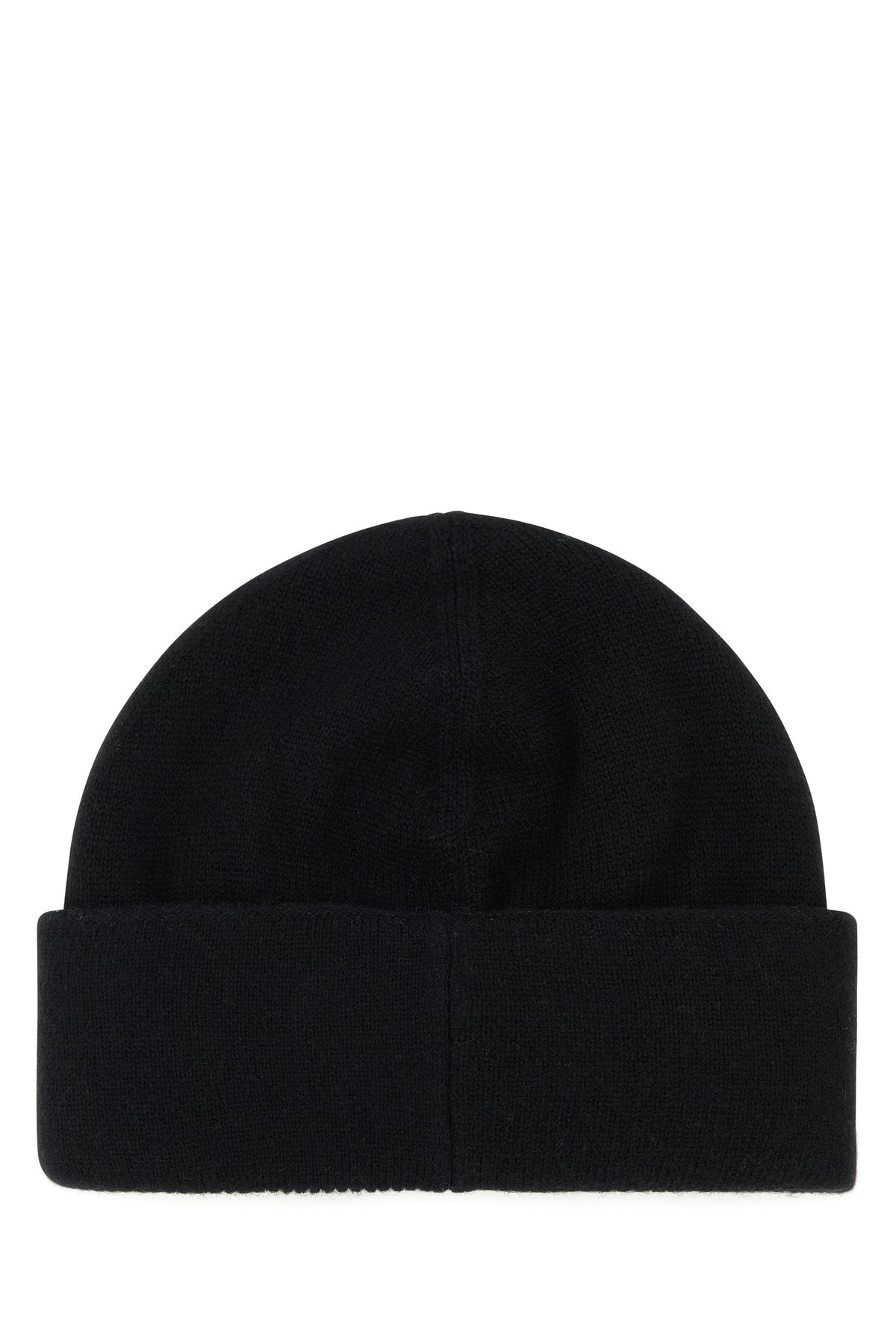 Beanie hat realized in wool and cashmere characterized by contrasting logoed embroidery at the front.