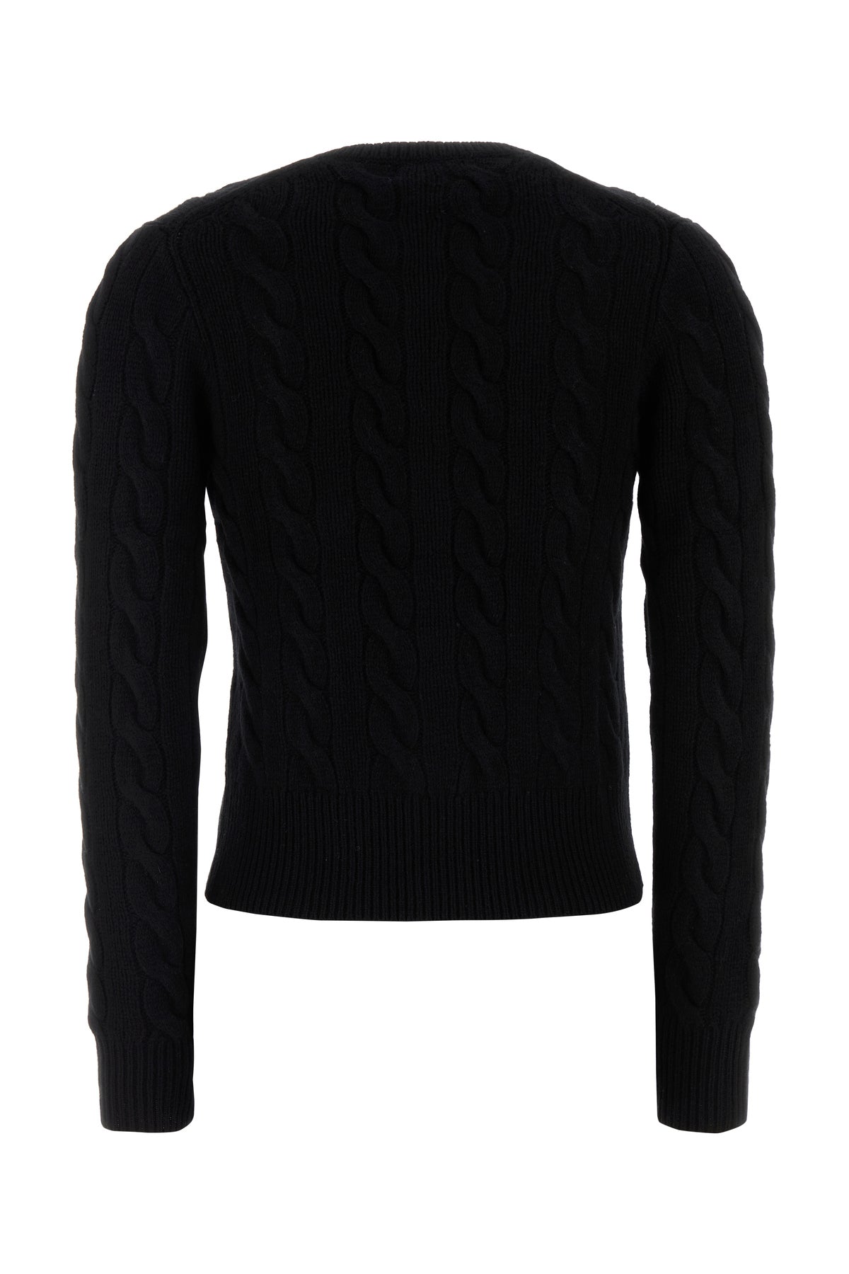 - Ribbed crew-neck, cuffs and hemline