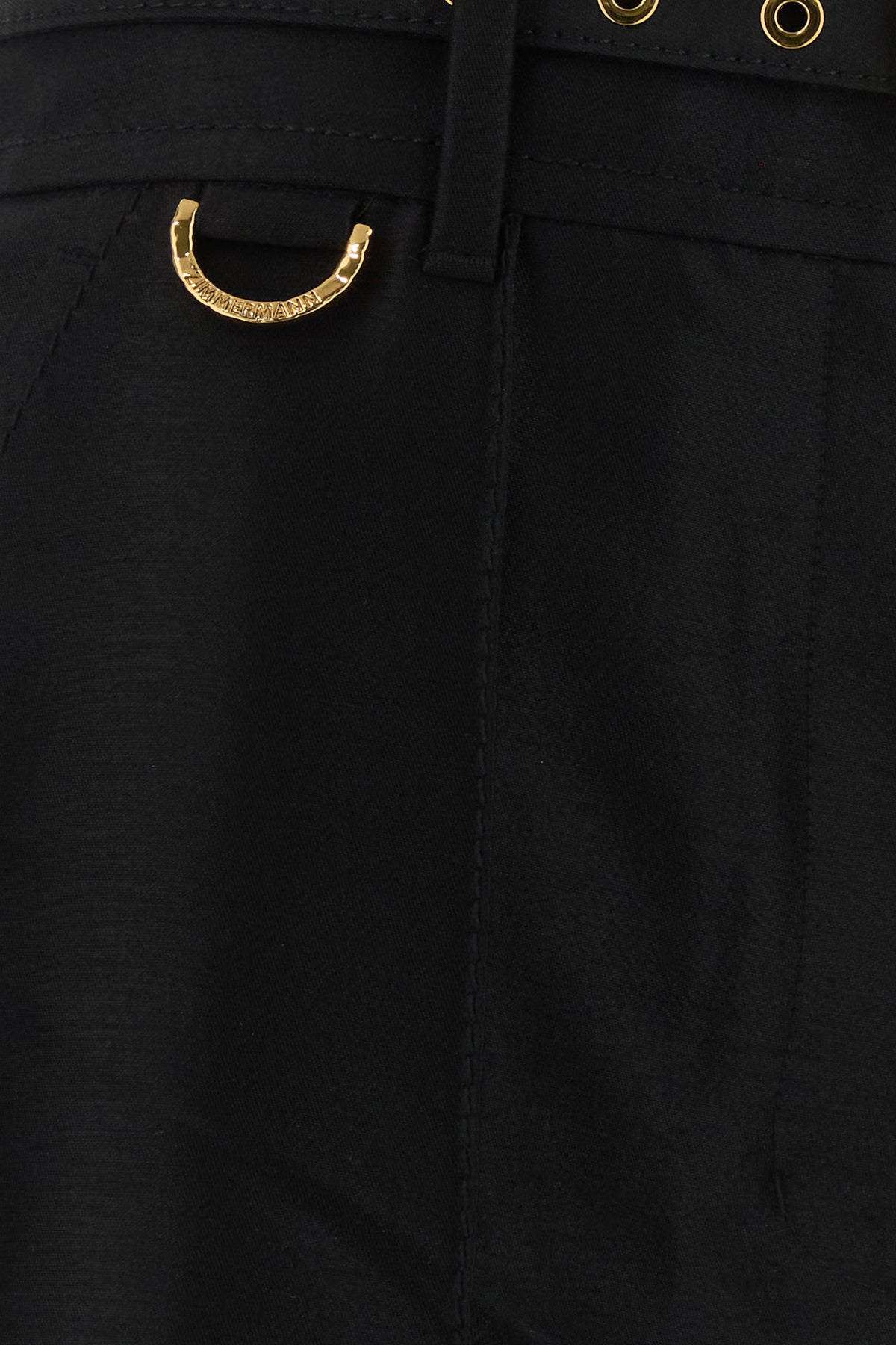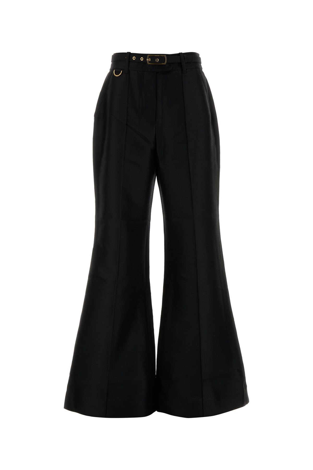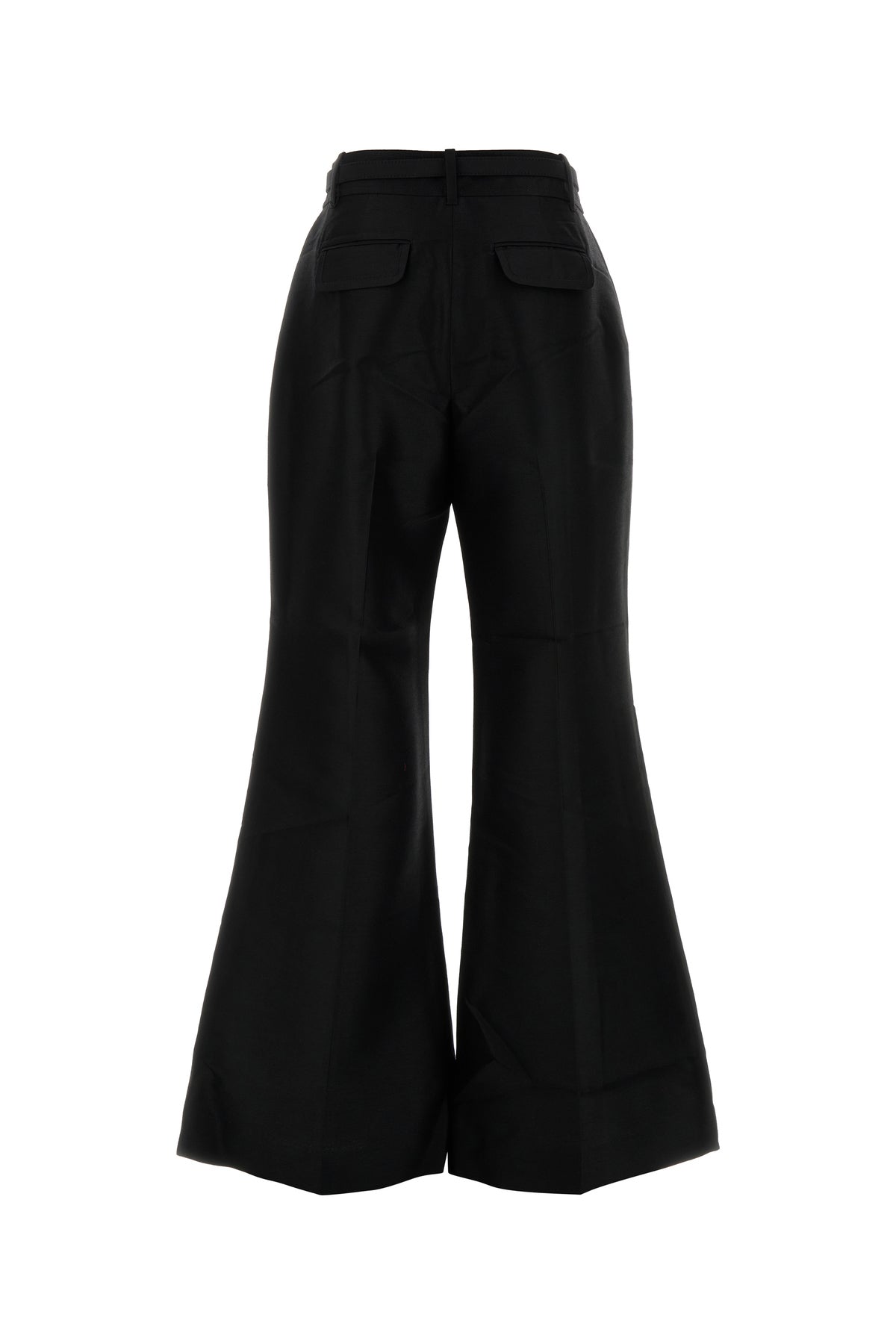Flared pant realized in wool and silk enriched by detachable belt with metal logoed buckle.