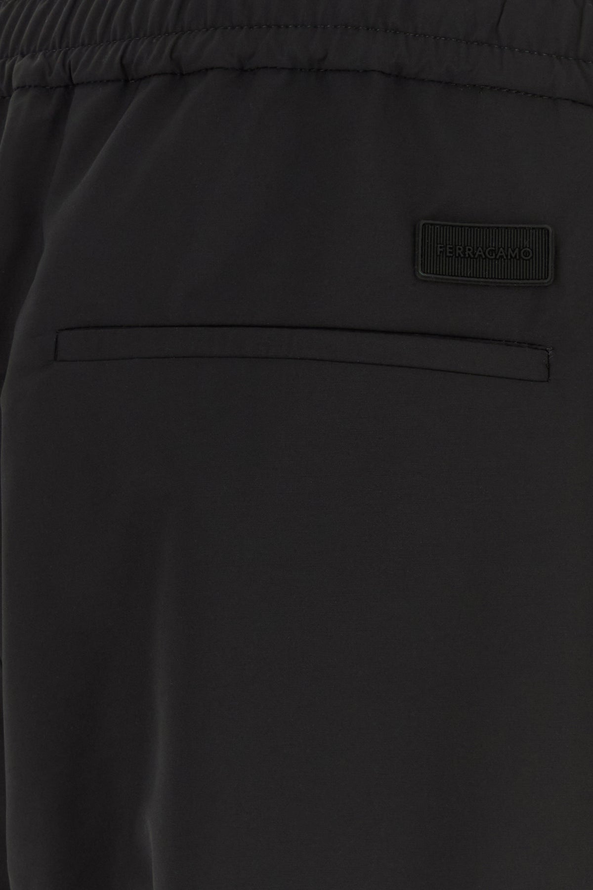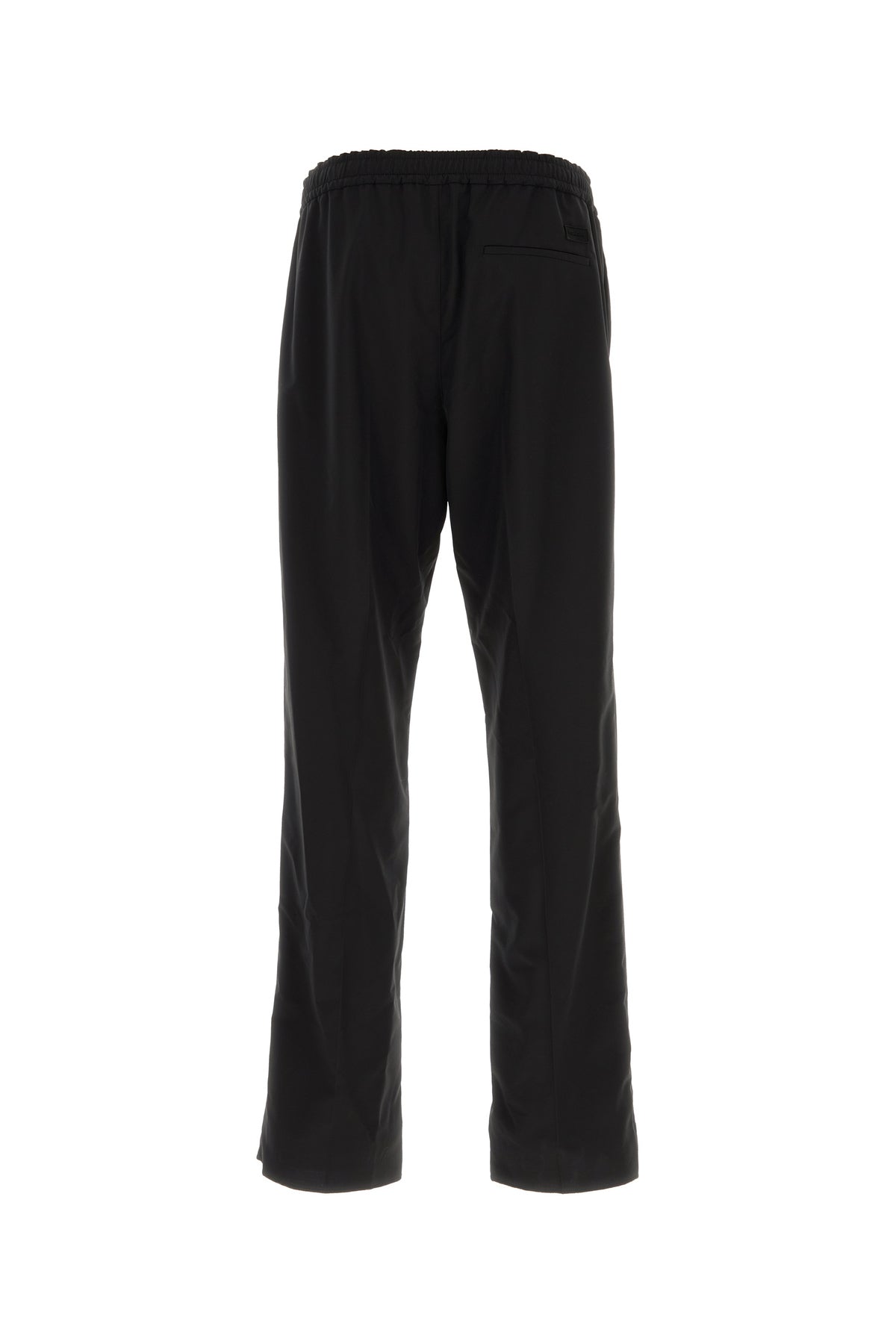 Pant realized in virgin wool veld enriched by tonal logoed patch at the back.