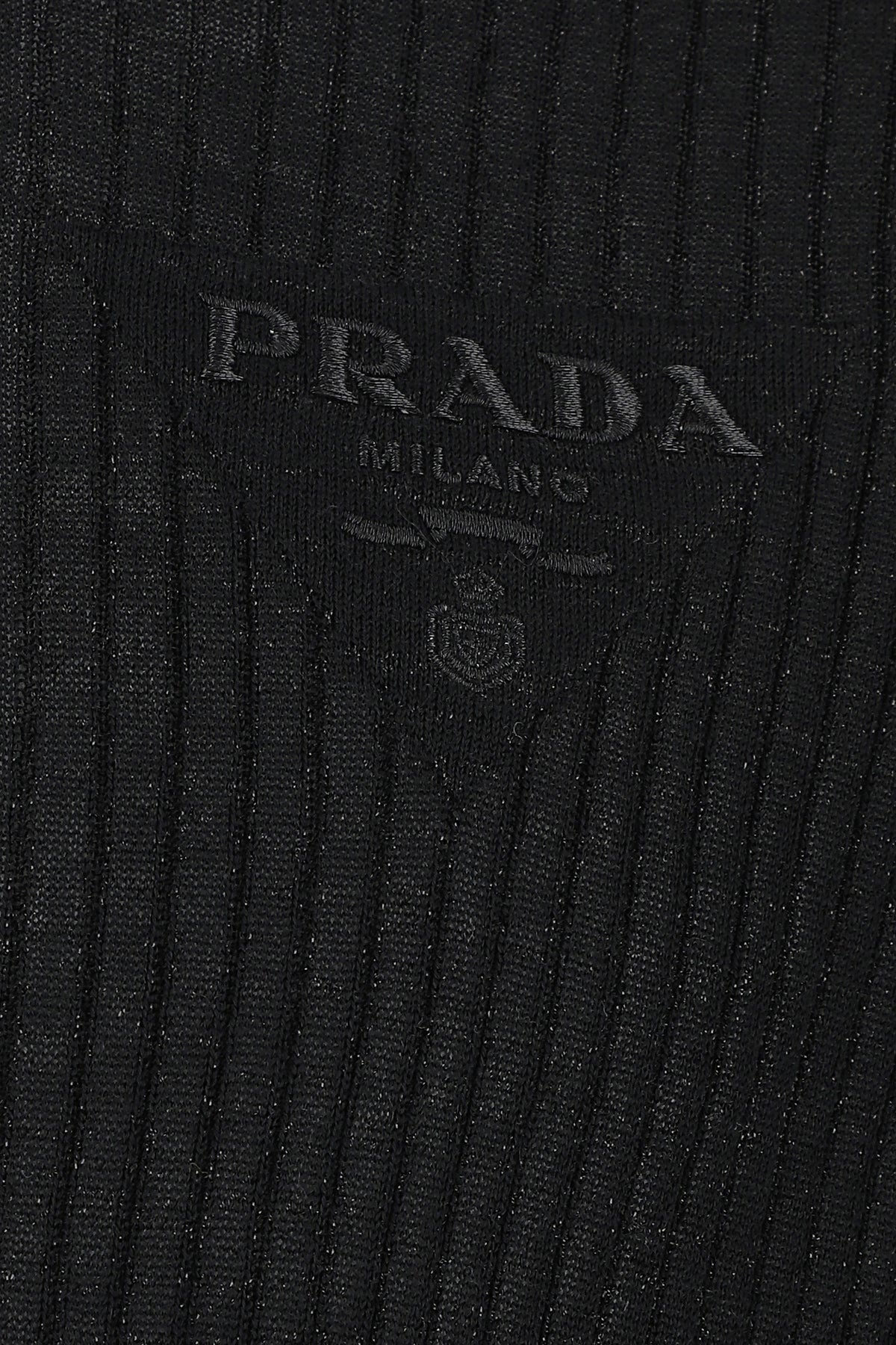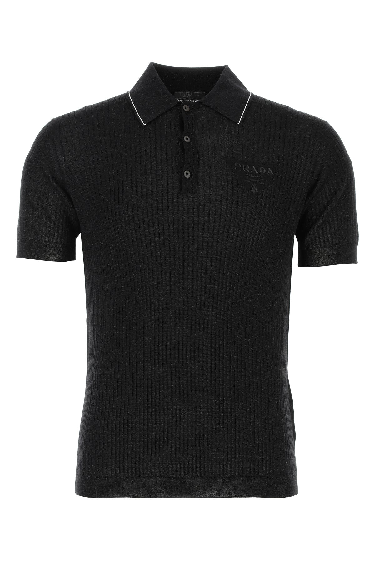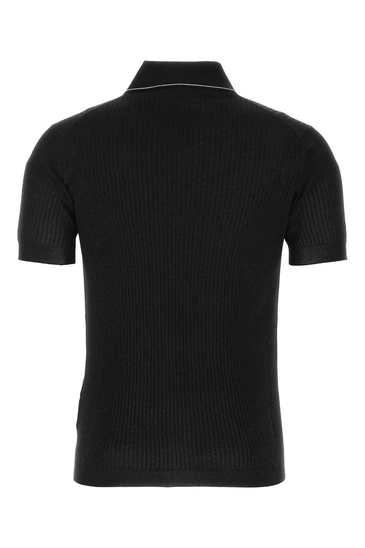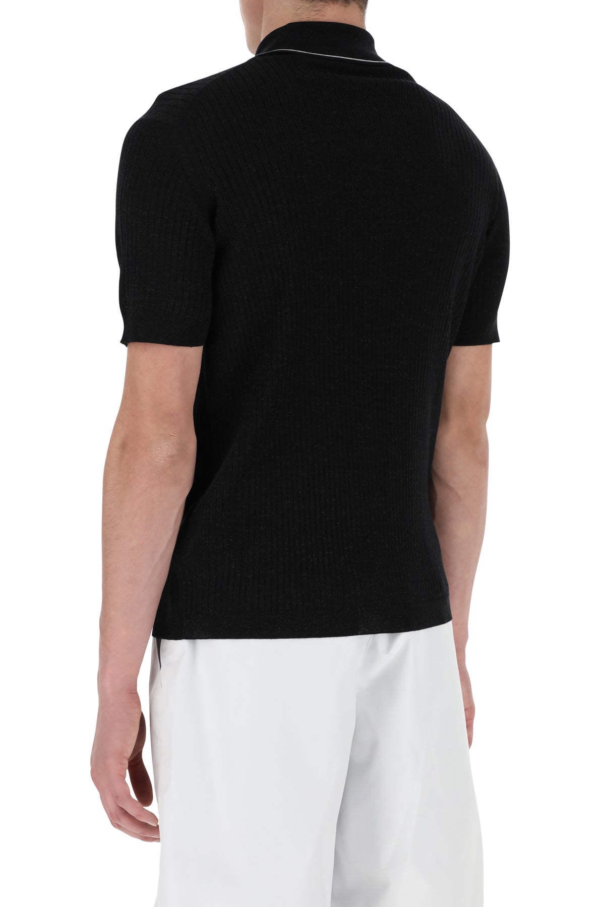 Polo shirt realized in ribbed virgin wool blend with lurex threads characterized by tonal embroidered iconic logoed triangle at the front.