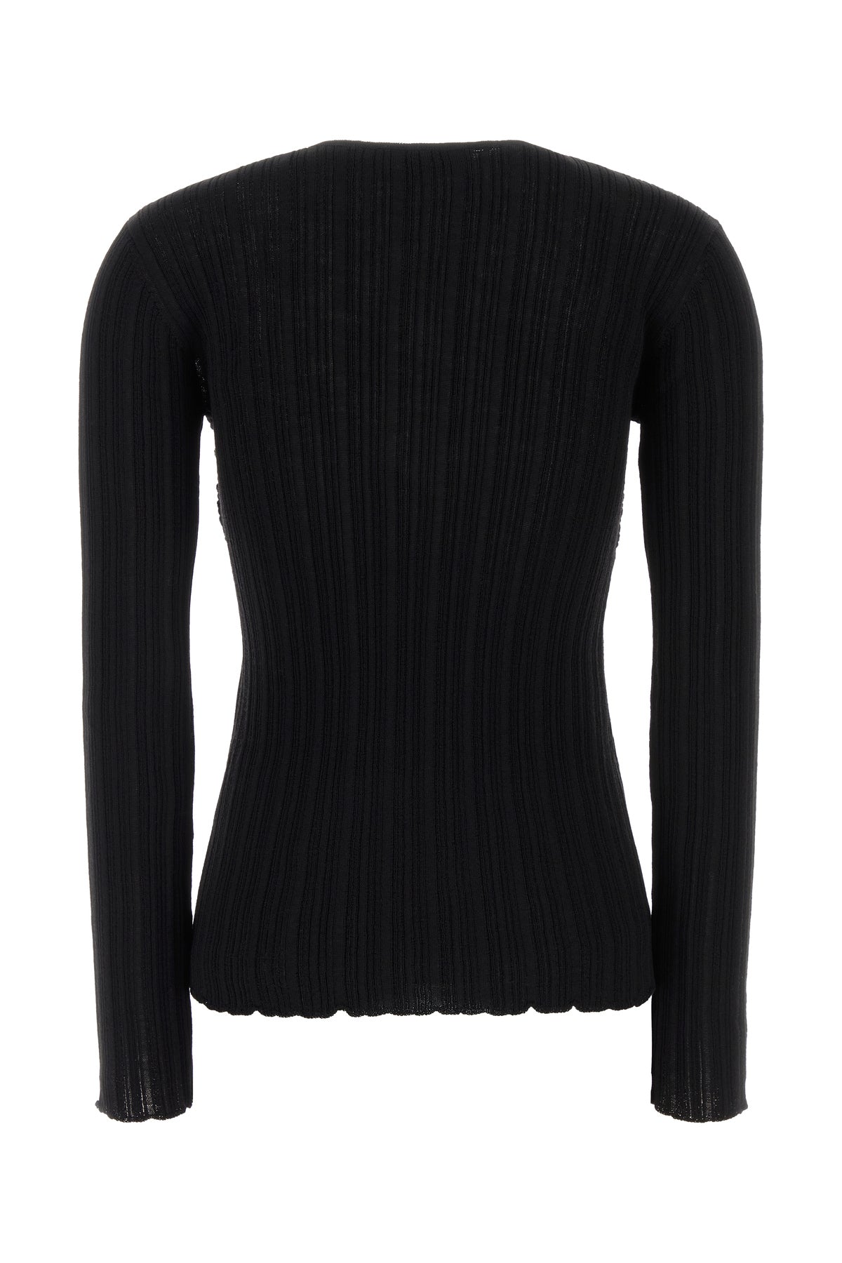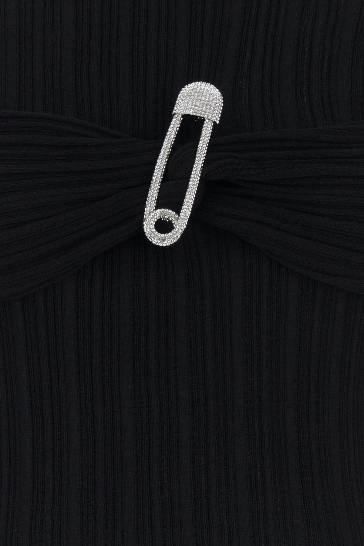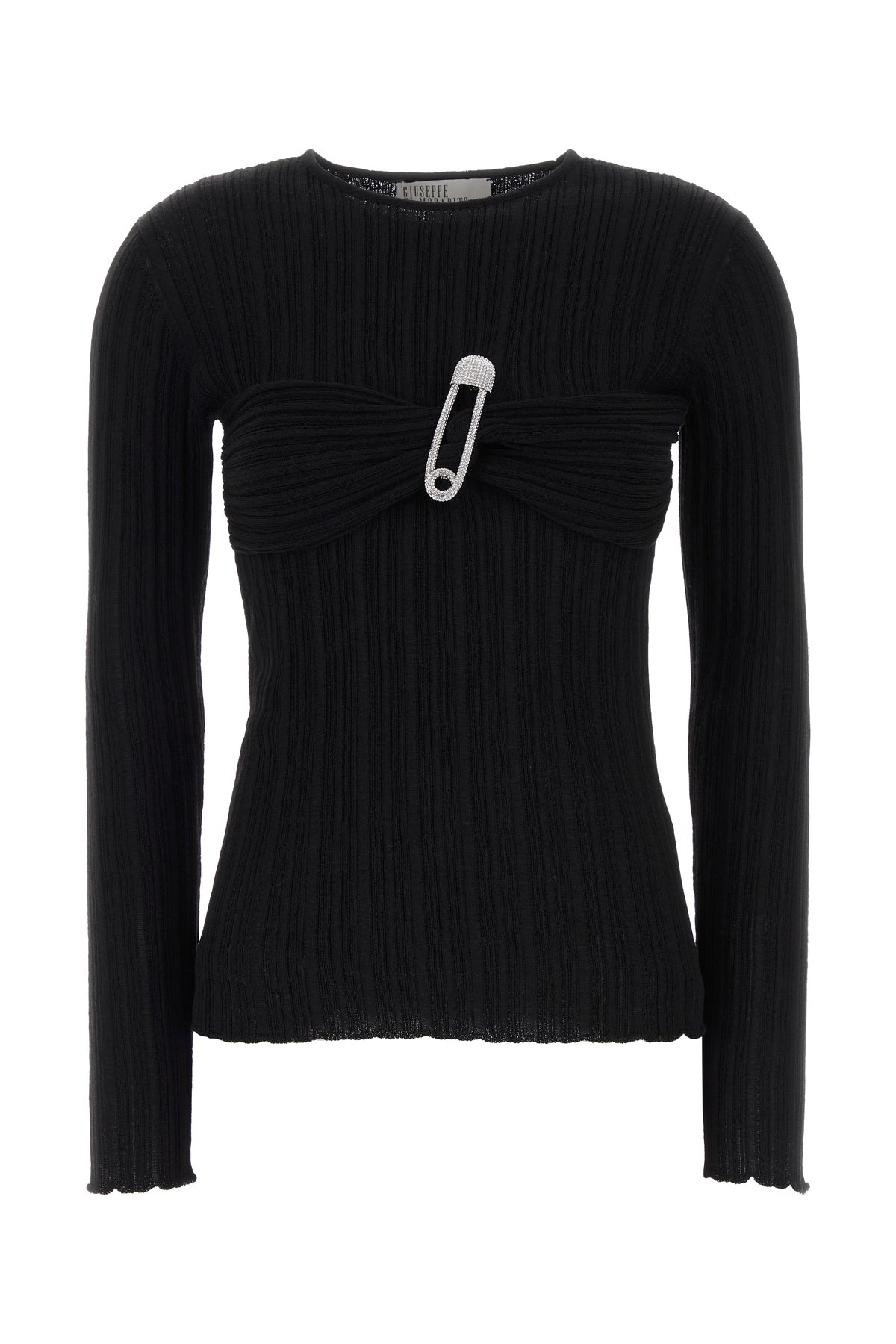 Long-sleeve top realized in merino wool blend enriched by insert with decorative jewel pin at the front.