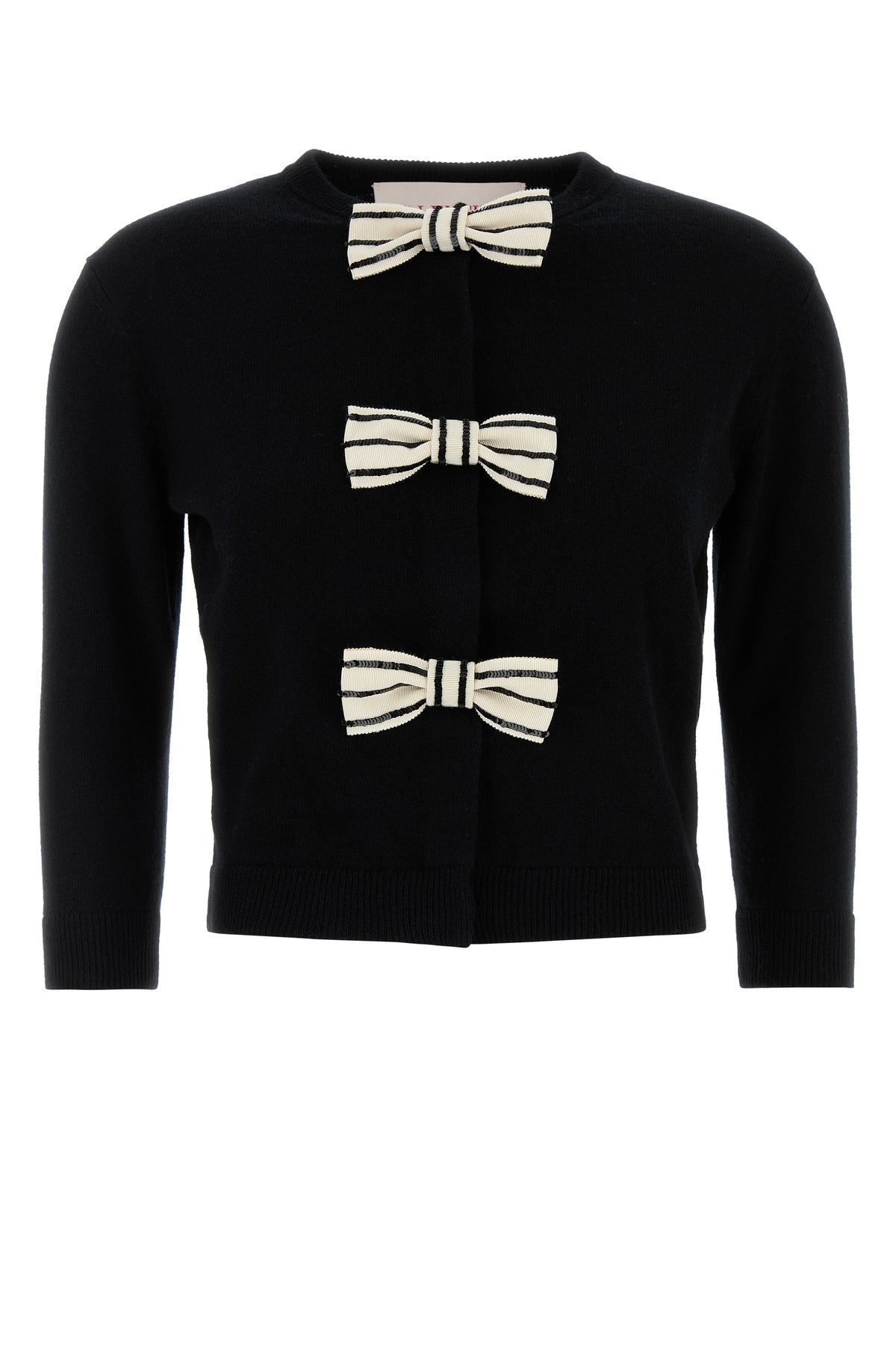 Cardigan realized in pure virgin wool enriched by maxi decorative bows with sequins at the front.