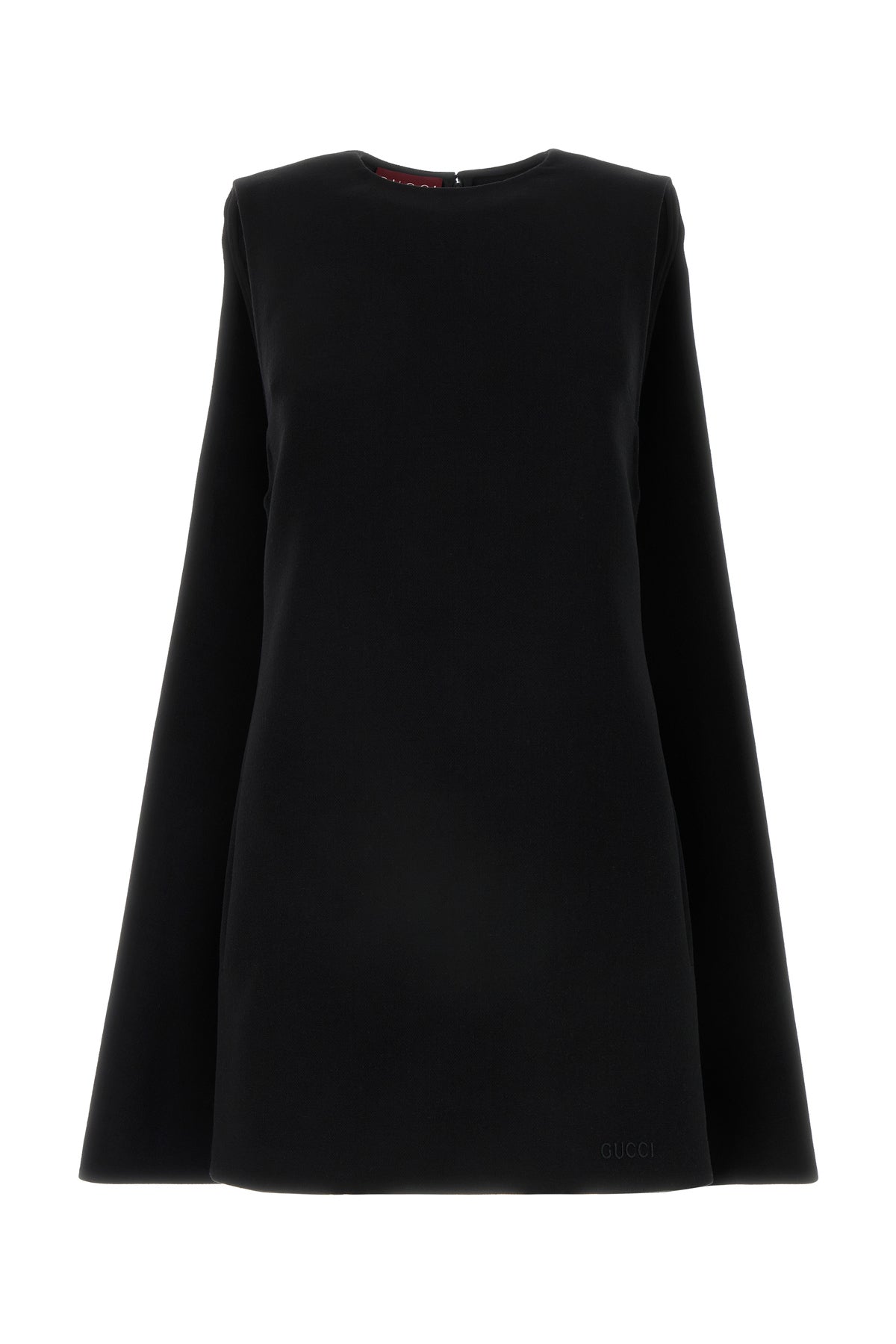 Flared mini dress realized in pure wool characterized by tonal Gucci embroidery on the hemline.