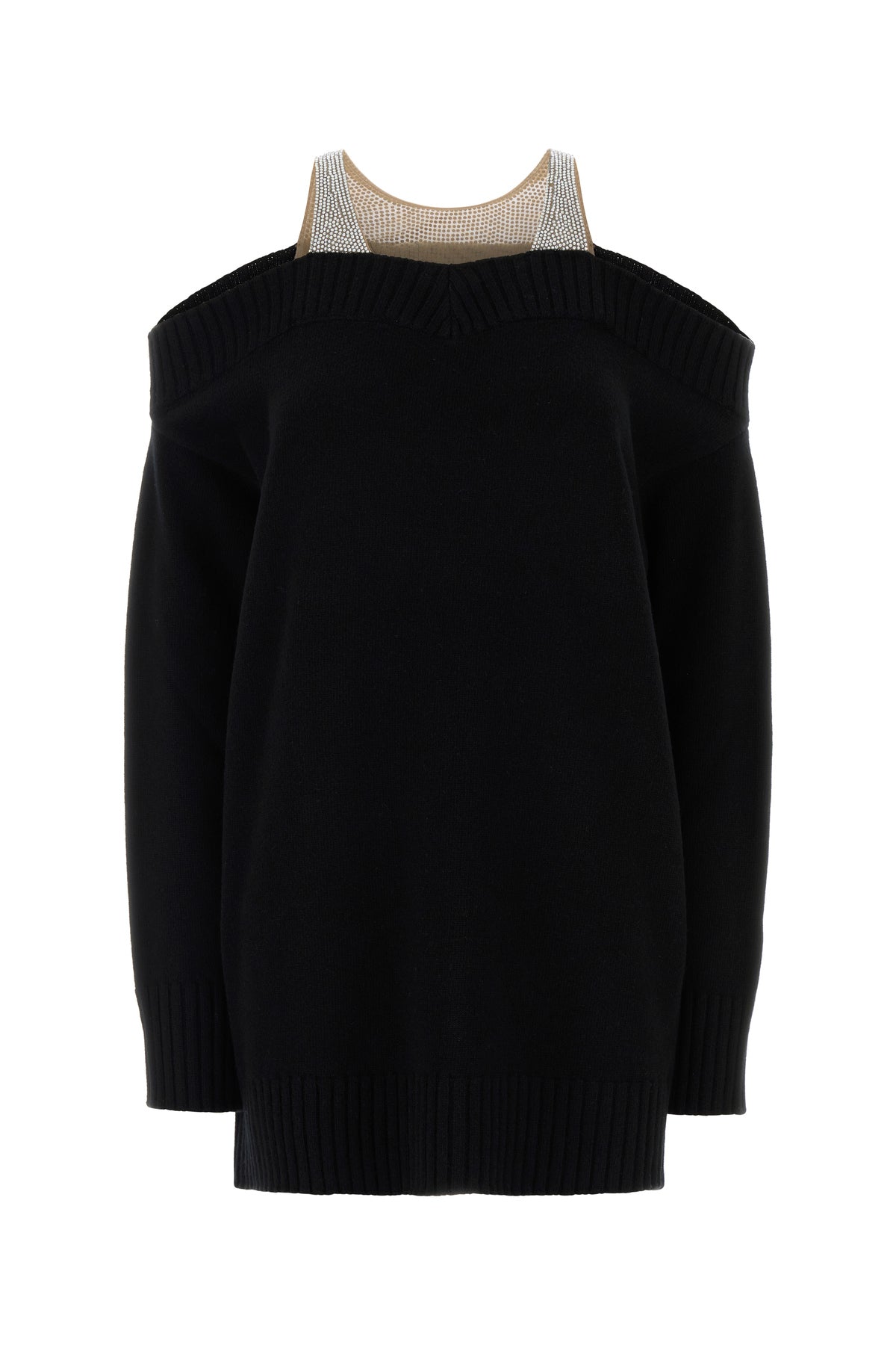 Oversize sweater realized in pure virgin wool with insert with rhinestones at the top.