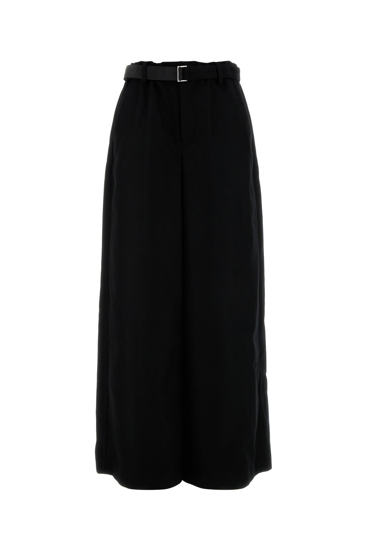 Wide-leg pant realized in pure wool enriched by tonal fabric belt at the waist.