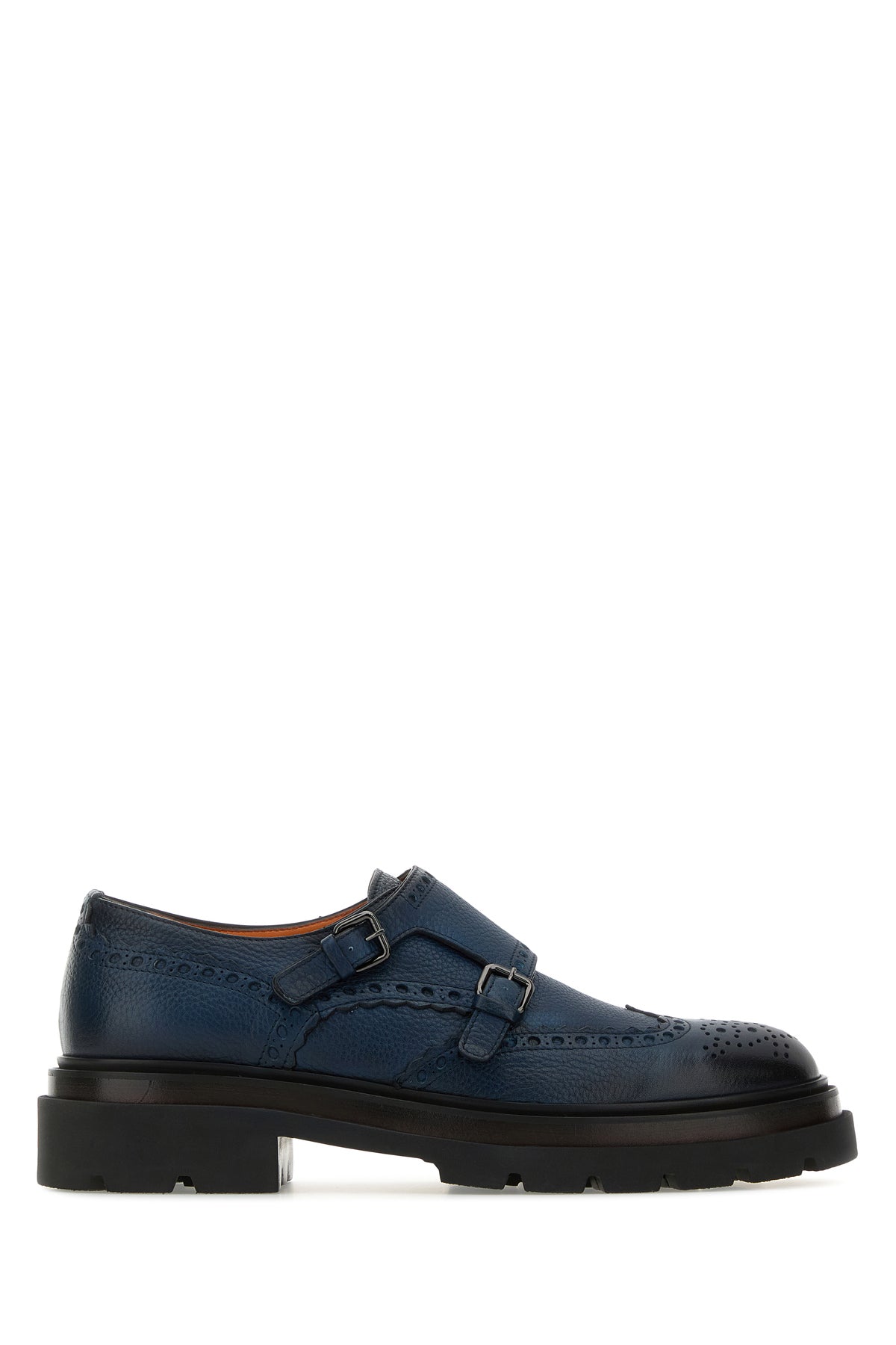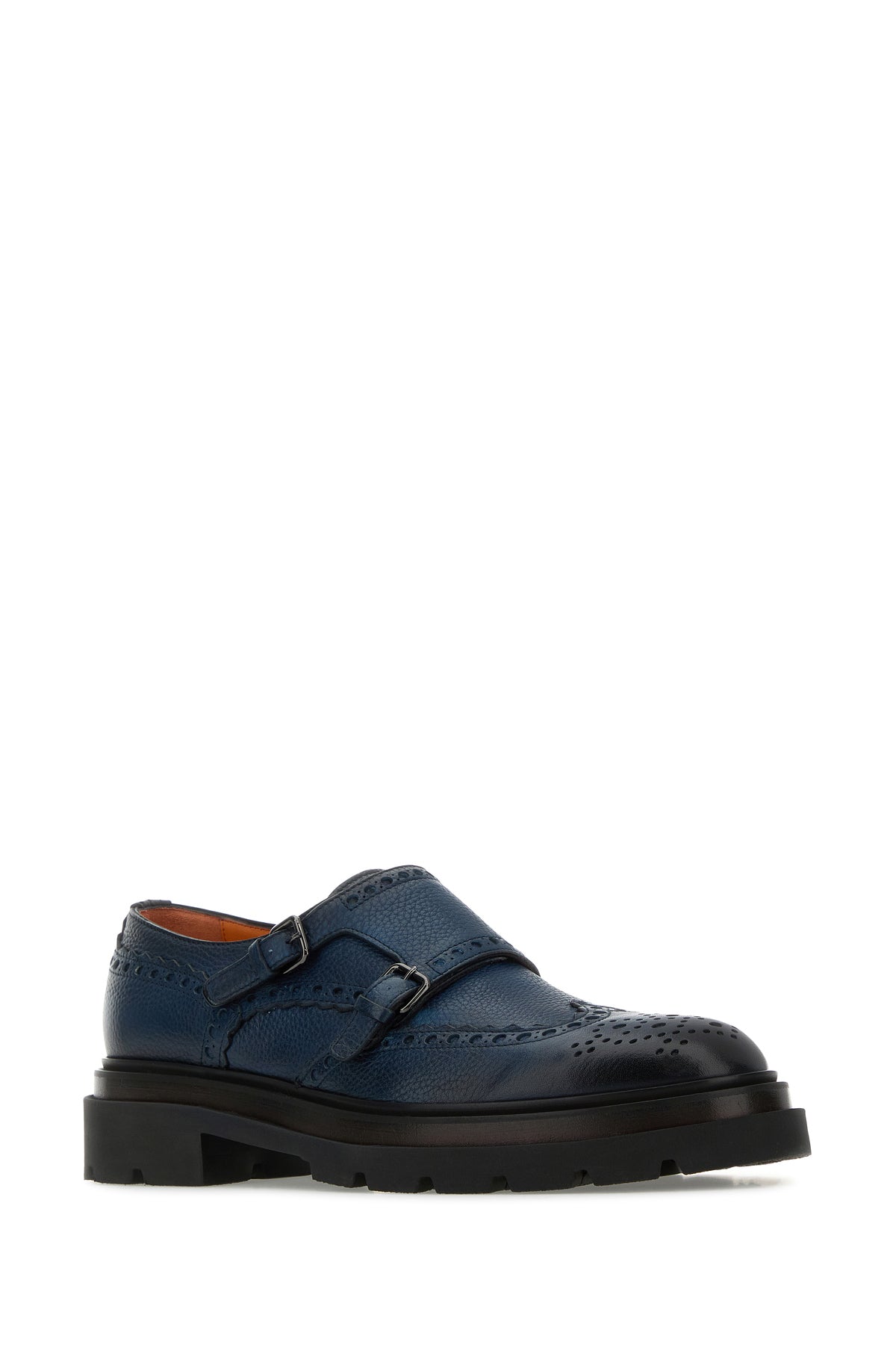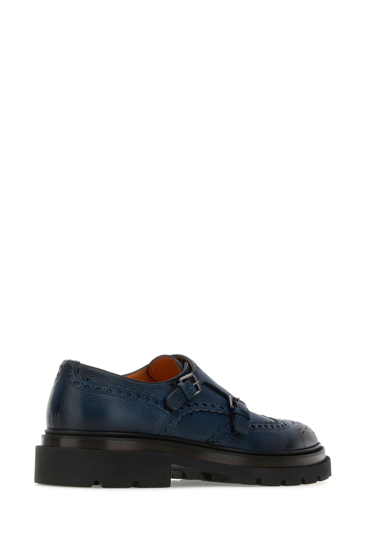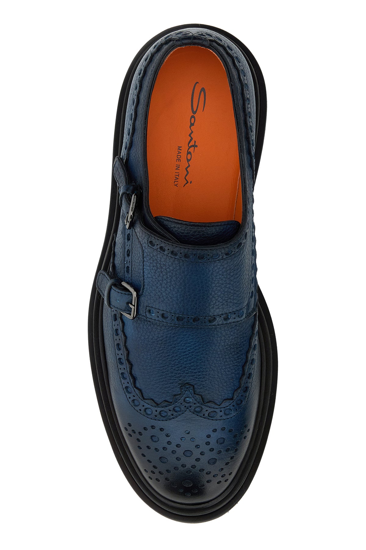 Mock strap shoes realized in pebble leather characterized by round toe.