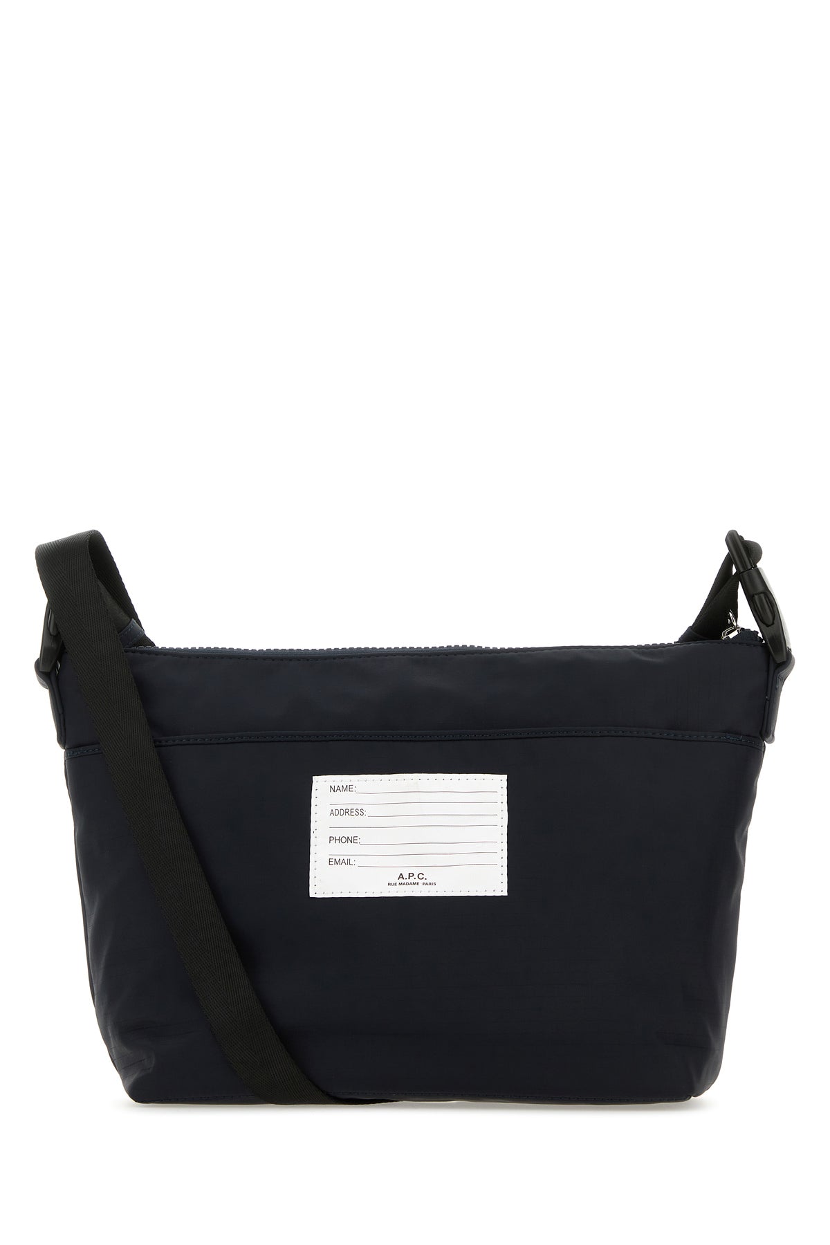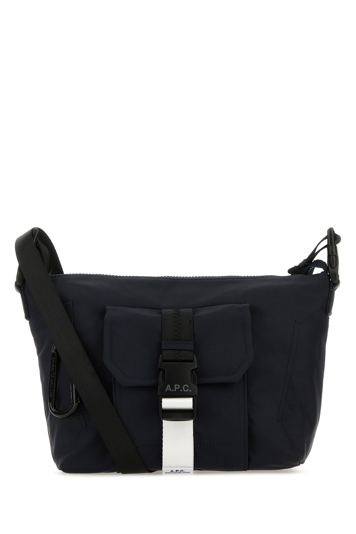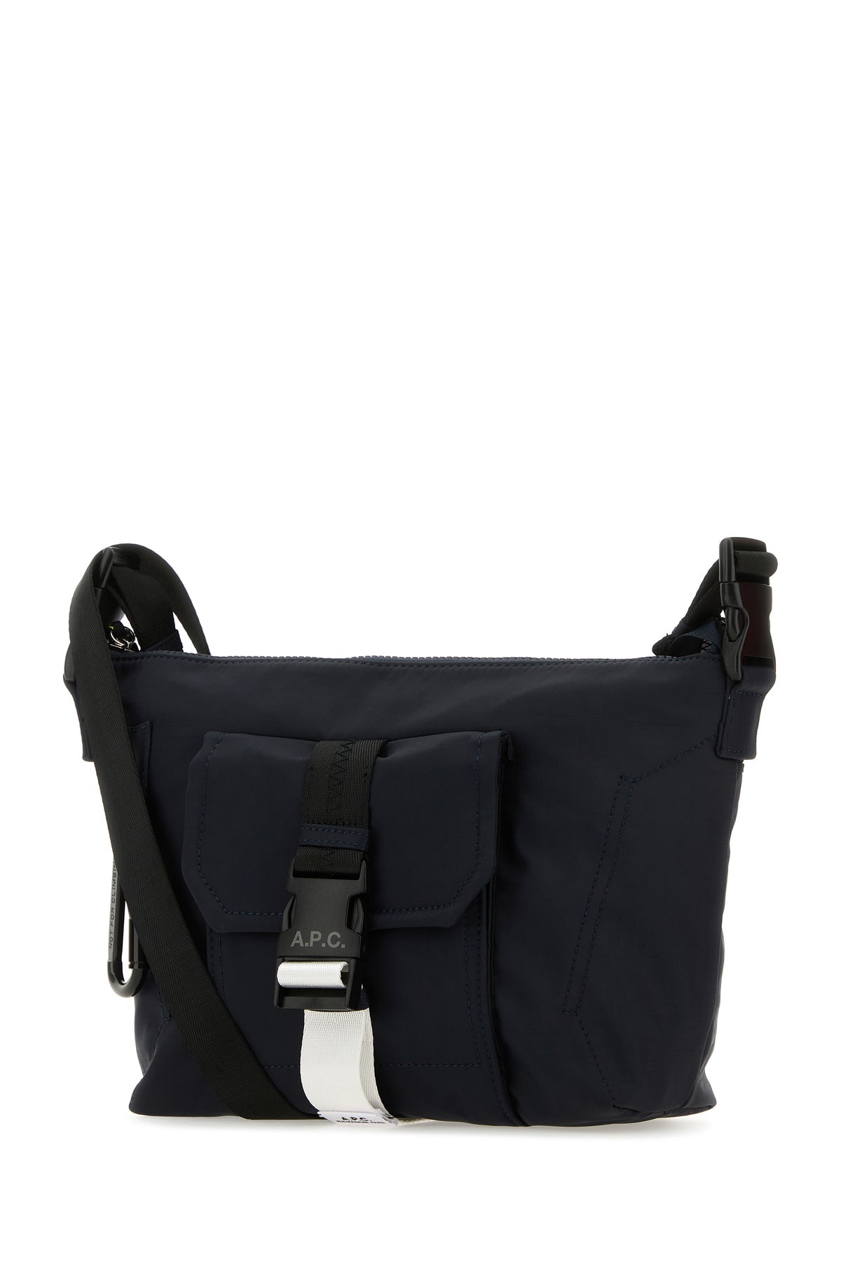 Crossbody bag realized in nylon enriched by detachable metal accessory at the front and contrasting logoed label at the front and at the back.