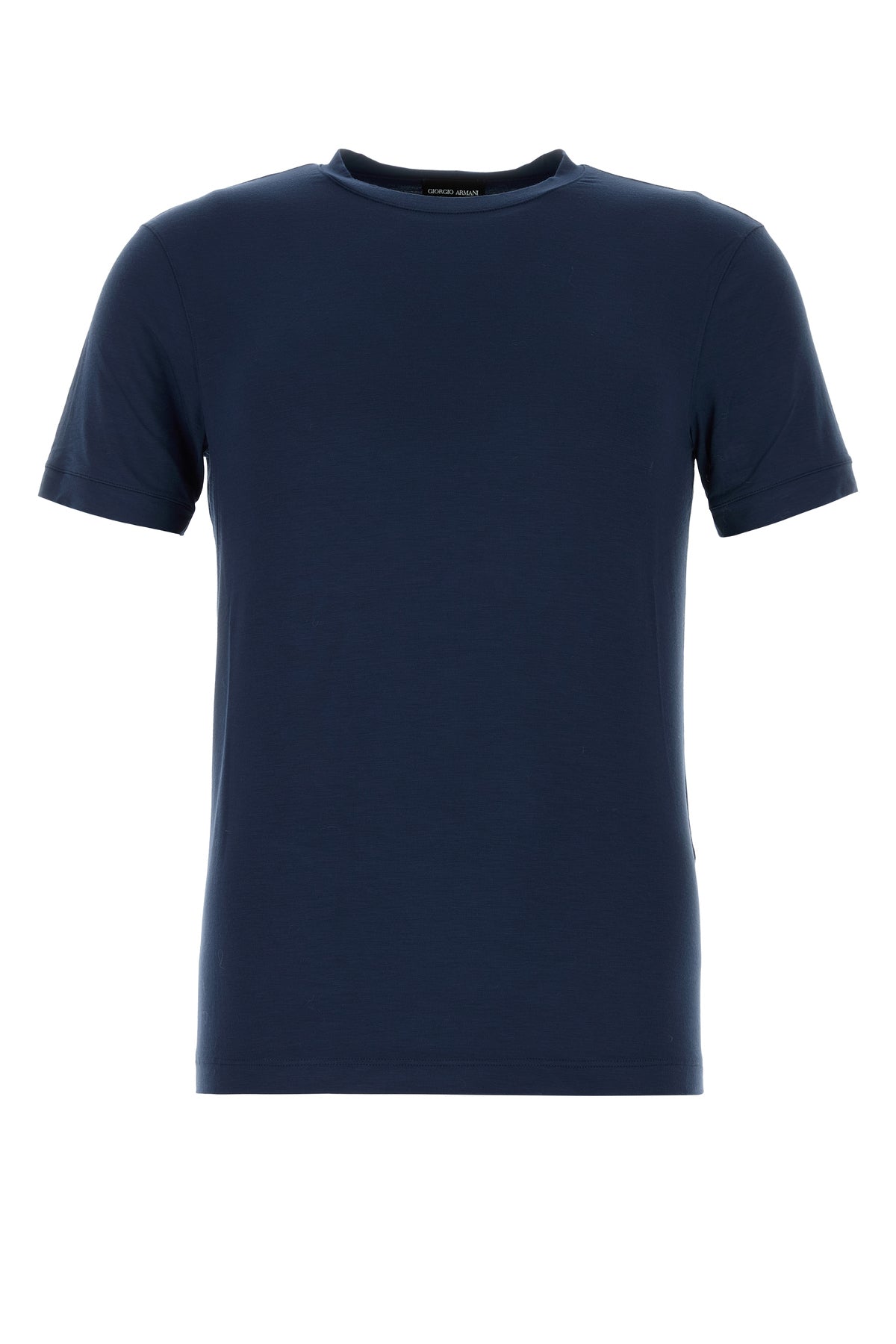 T-shirt realized in stretch viscose characterized by ribbed crew-neck.
