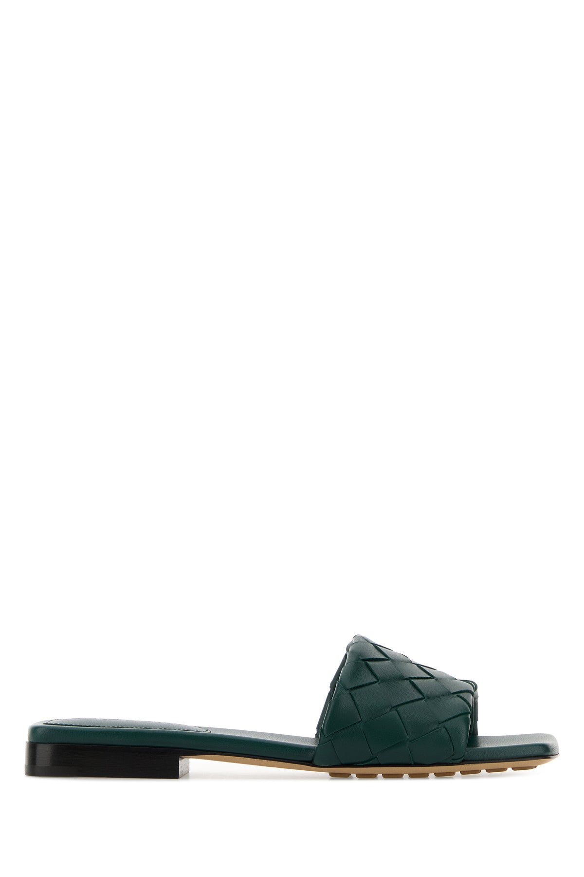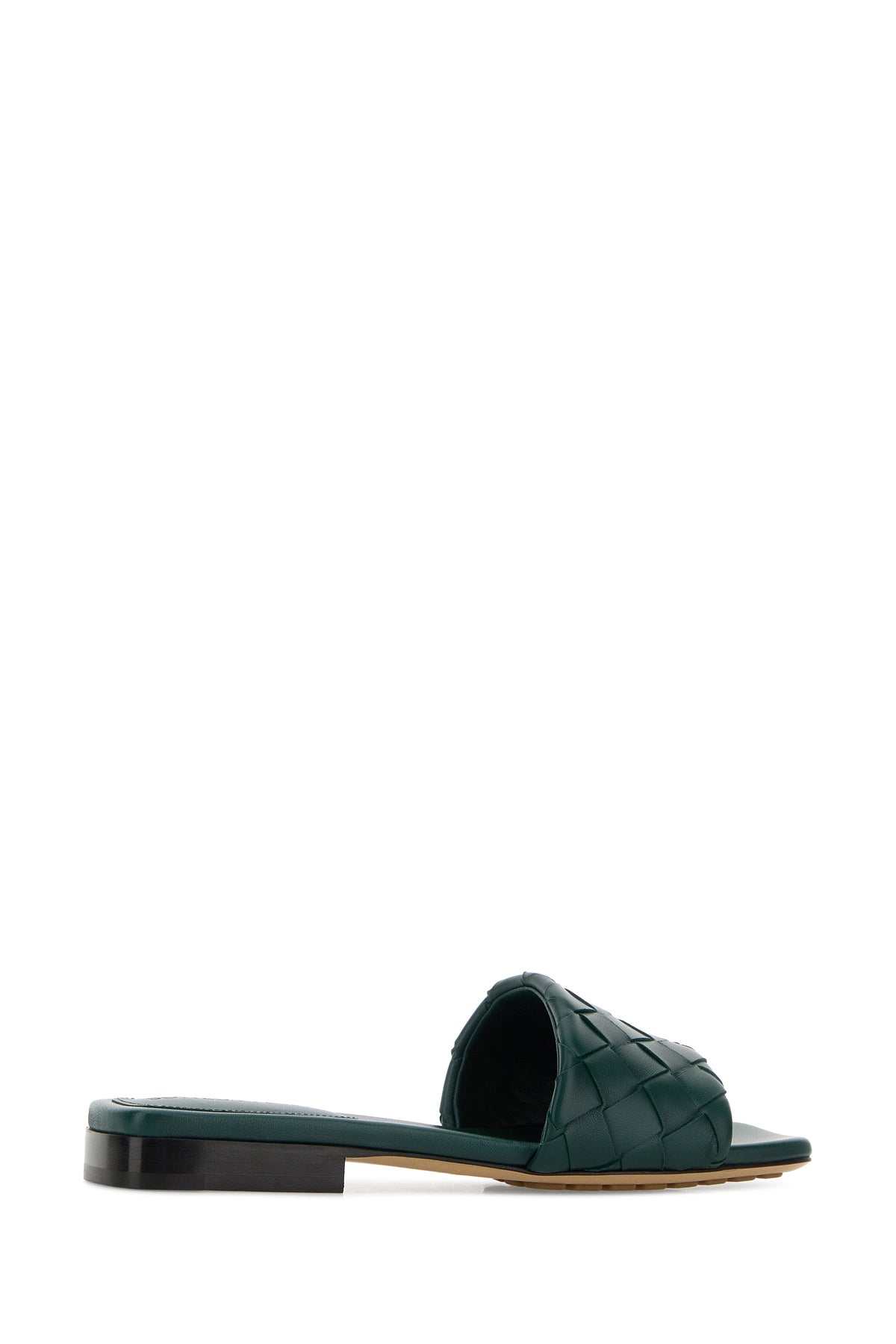Slippers realized in lamb leather characterized by iconic Intrecciato motif on the instep.