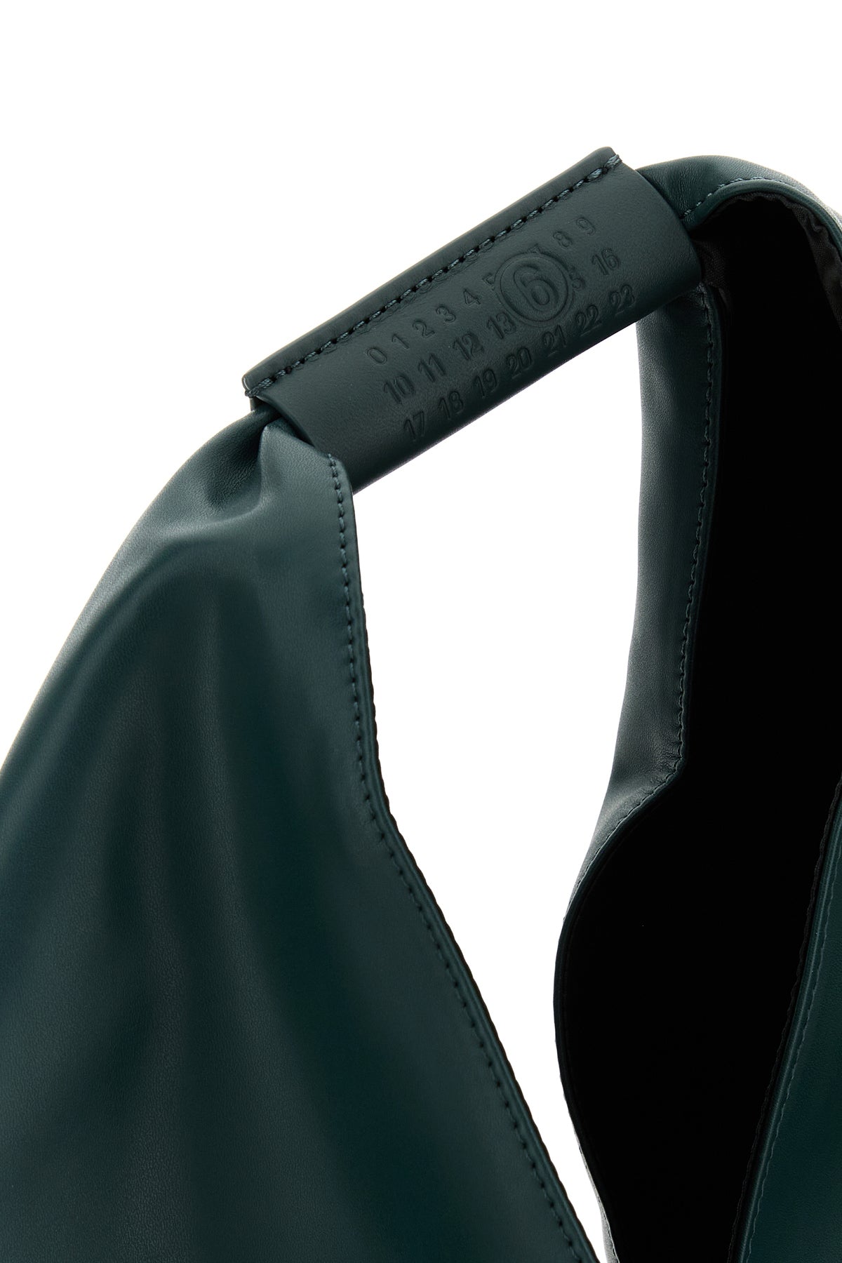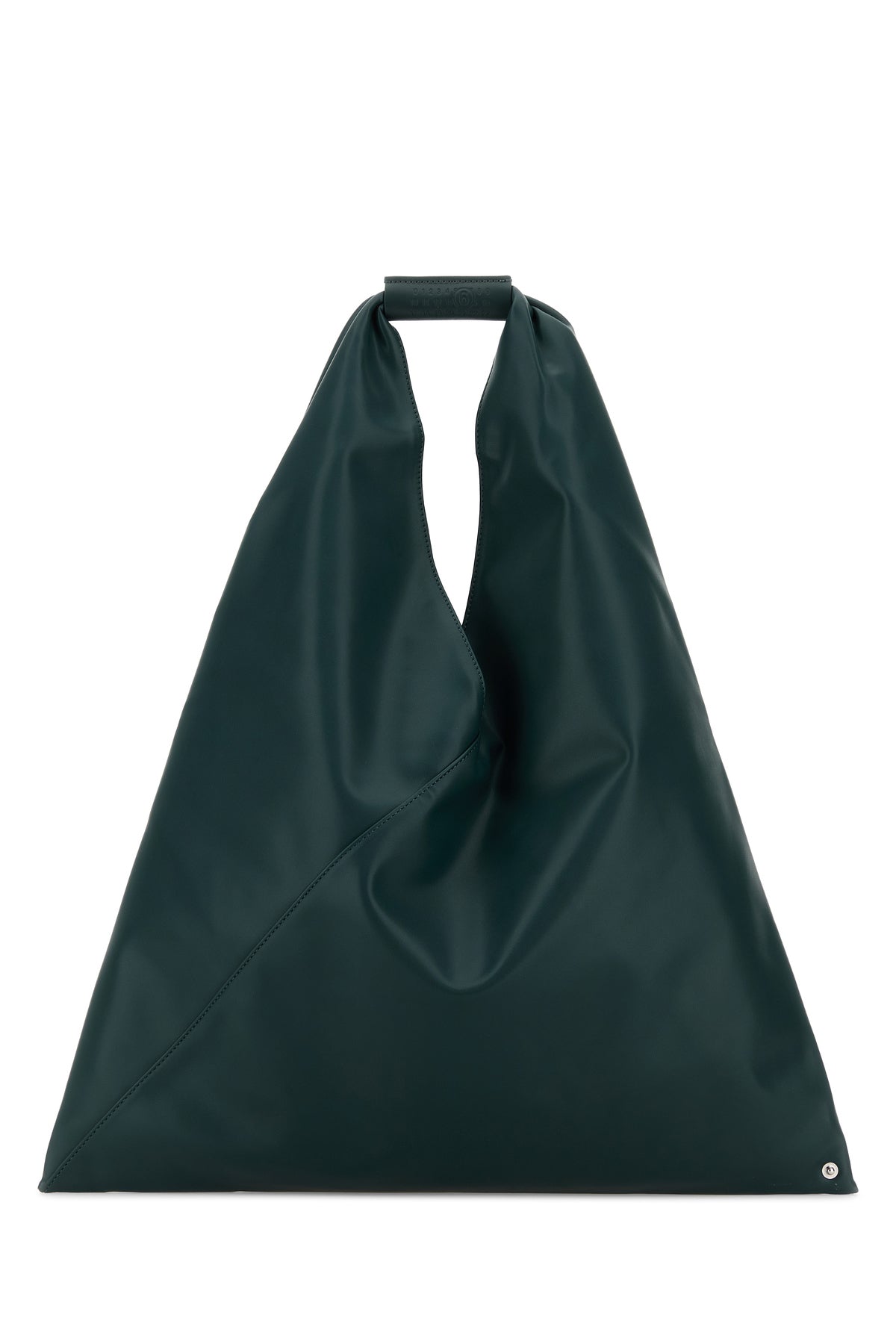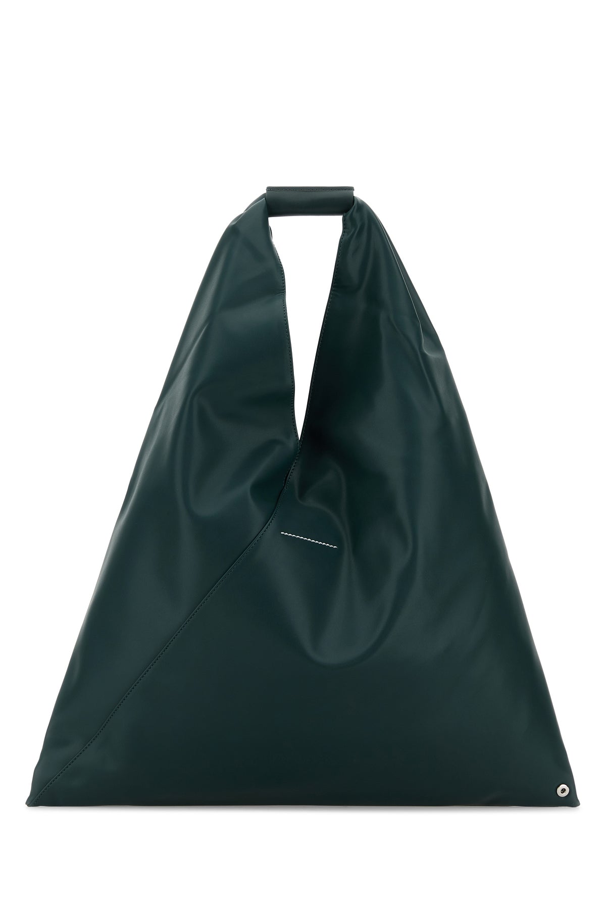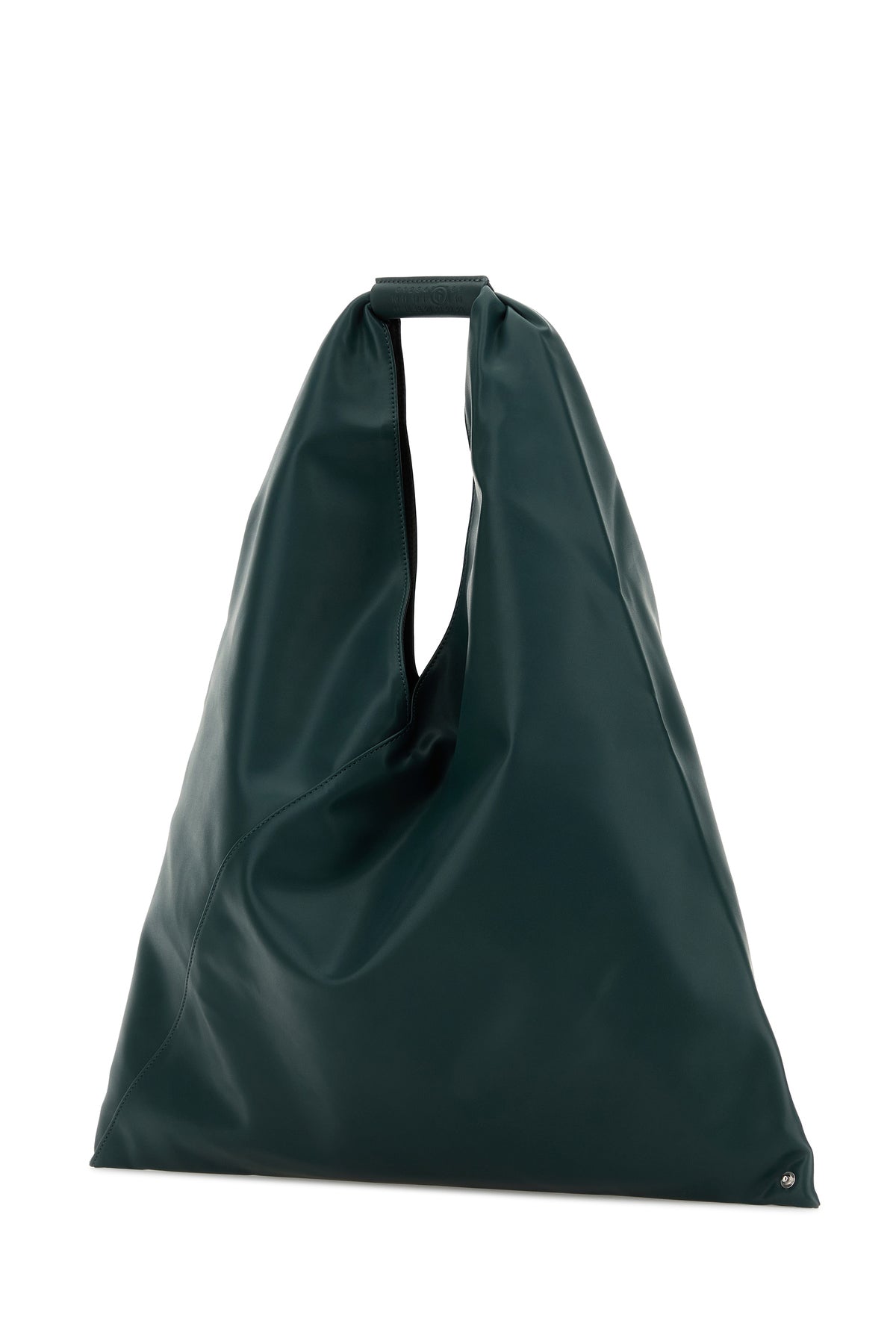 Handbag realized in synthetic leather characterized by contrasting stitching at the back.