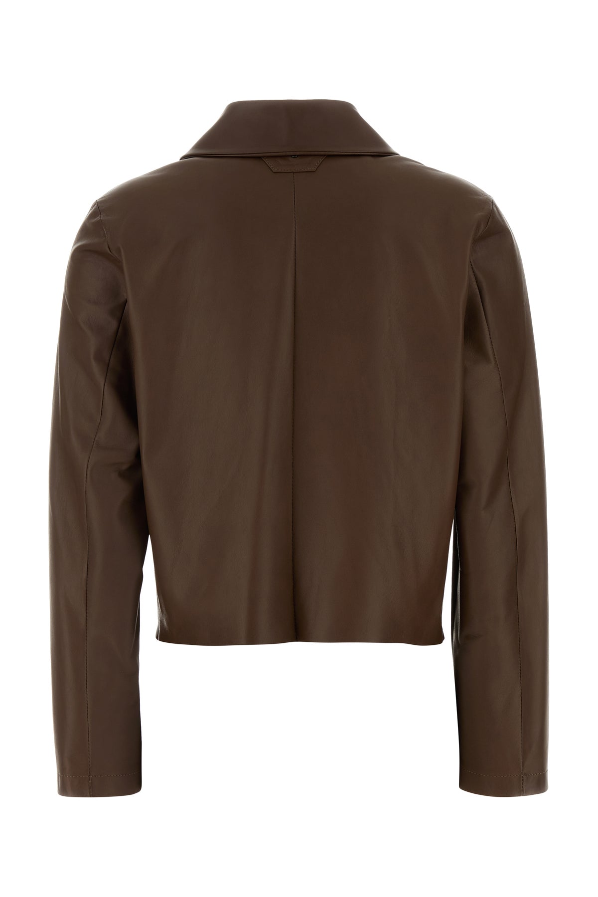Jacket realized in ovine leather enriched by metal lettering logo at the back.