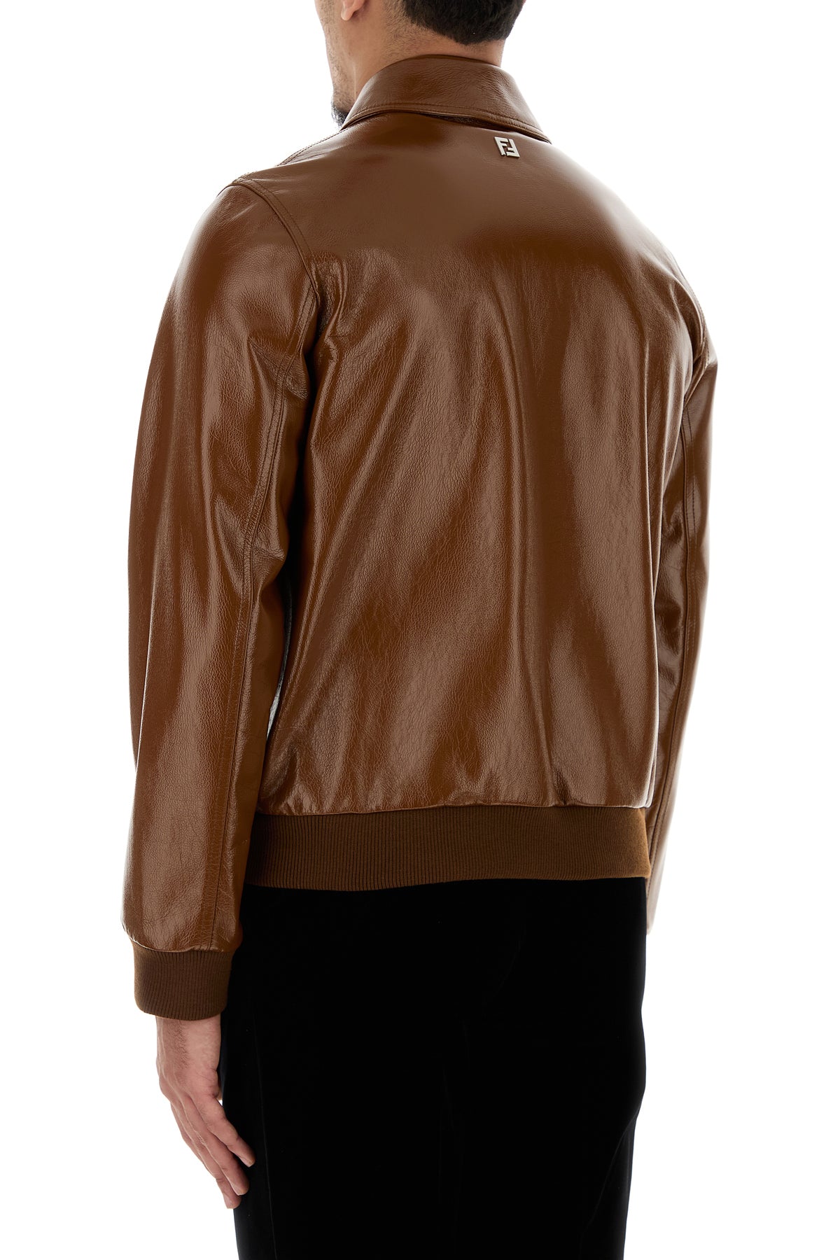 Jacket realized in polished-finish calf leather enriched by metal FF detail at the back.