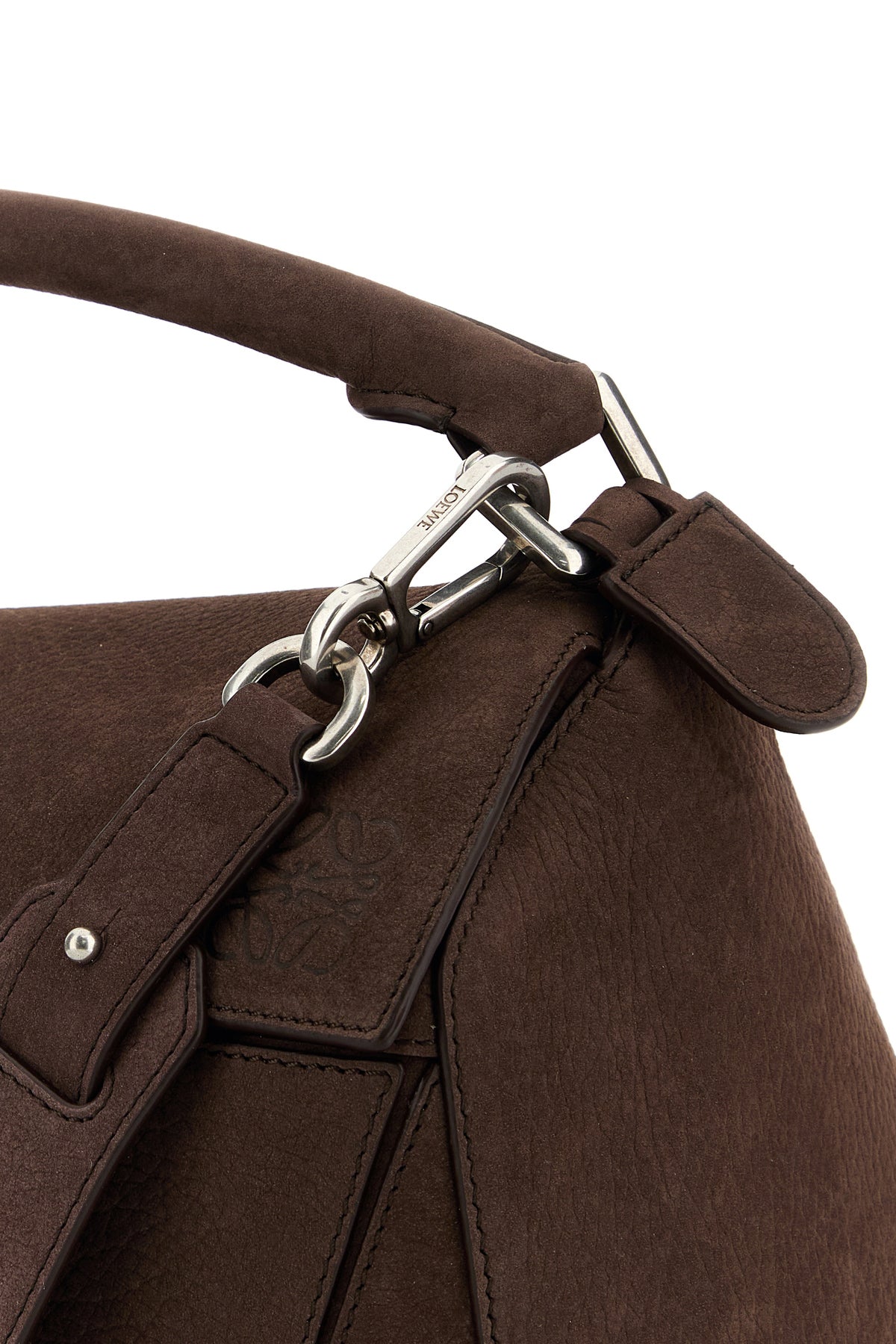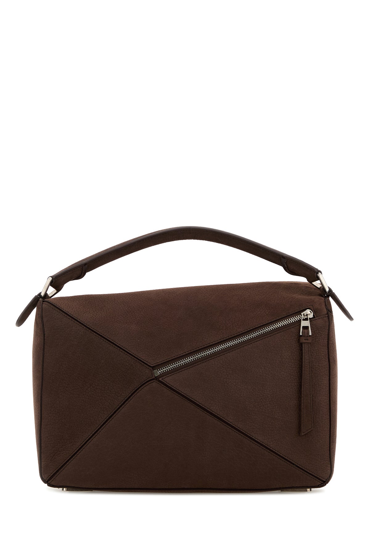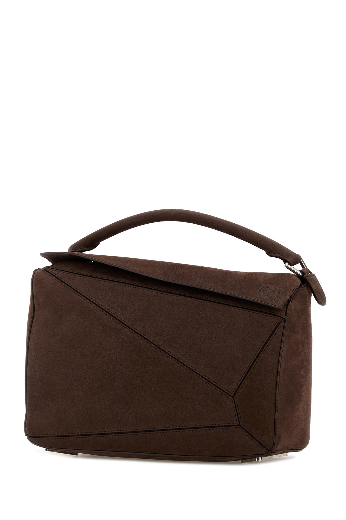 Handbag realized in pebble nabuk leather enriched by inlays and embossed Anagram motif on the flap and iconic geometric motif on the neater surface.