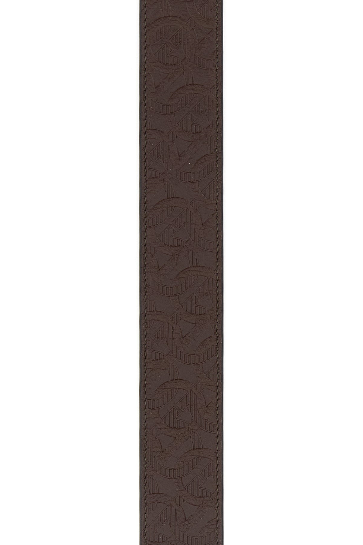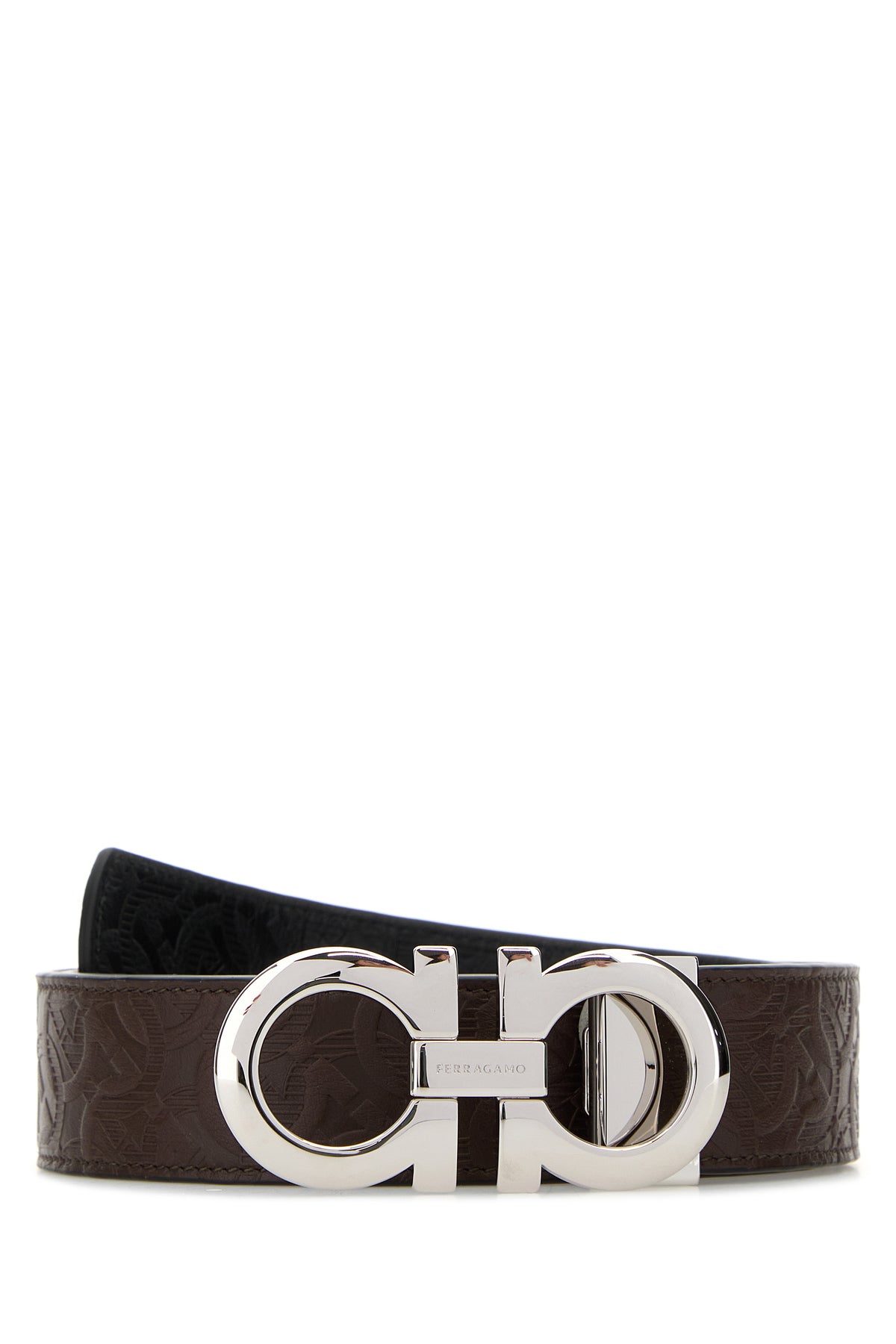 Reversible belt realized in smooth leather characterized by Gancini motif in relief on the entire surface enriched by Gancini metal buckle.