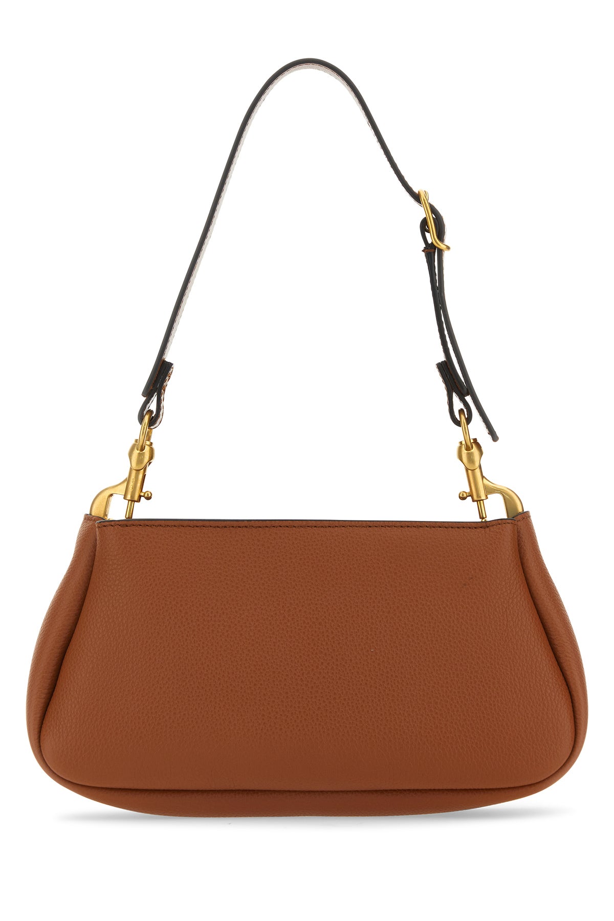 Clutch realized in pebble calf leather characterized by embossed logo on the flap.