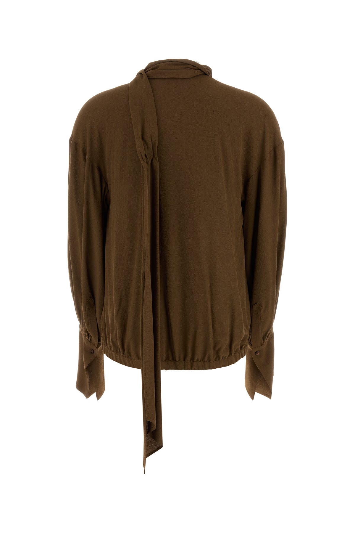 Blouse realized in viscose marocaine enriched by scarf to tie at the neck.
