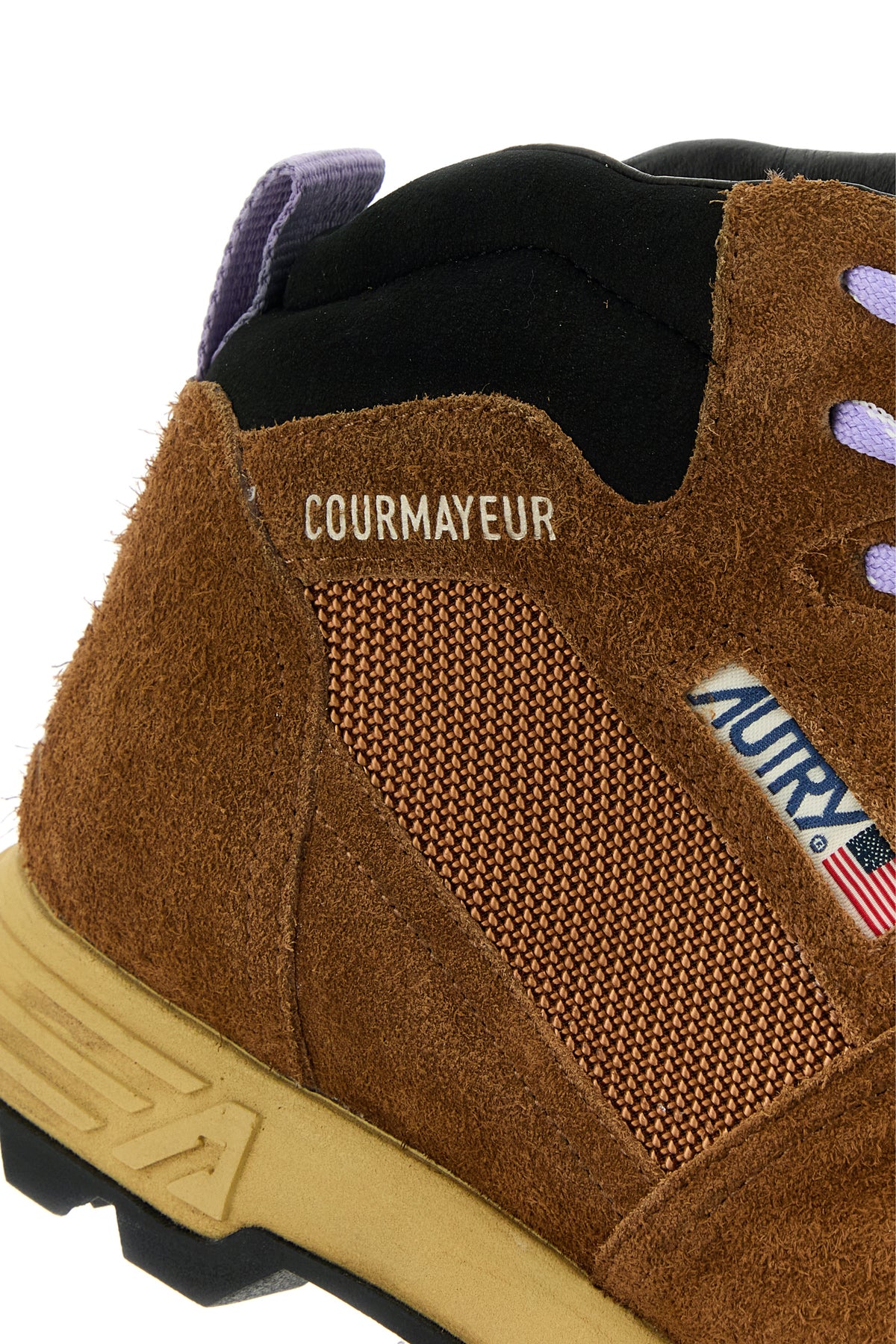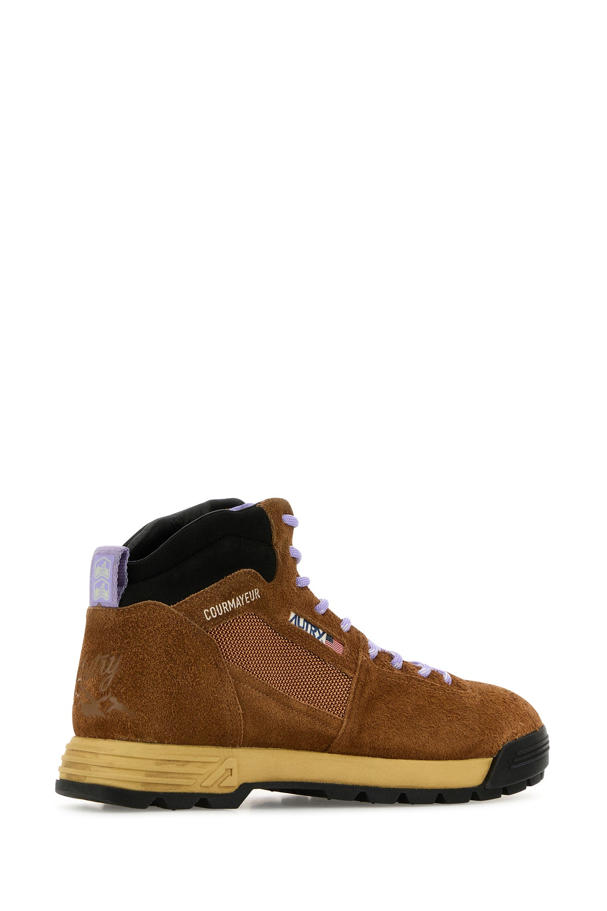 High-top sneakers realized in suede characterized by peculiar print on the side enriched by contrasting logoed label on the side.