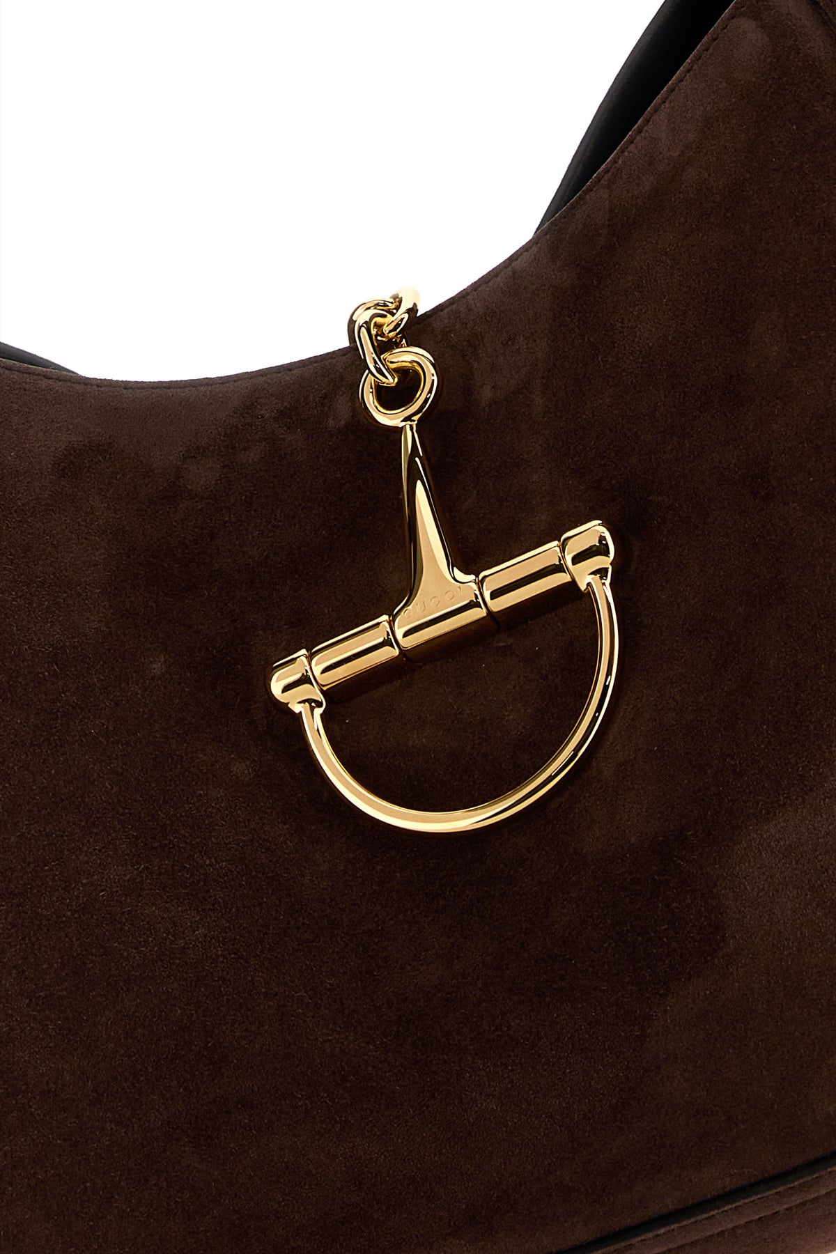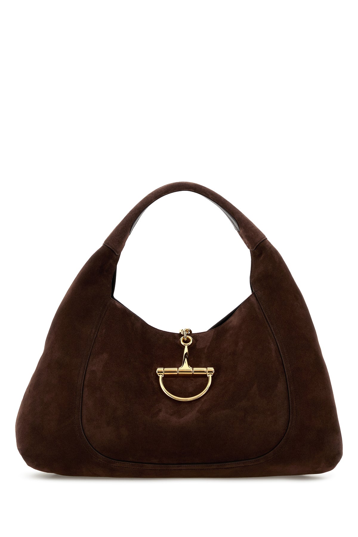Shoulder bag realized in suede characterized by Hardware snap-fit closure.