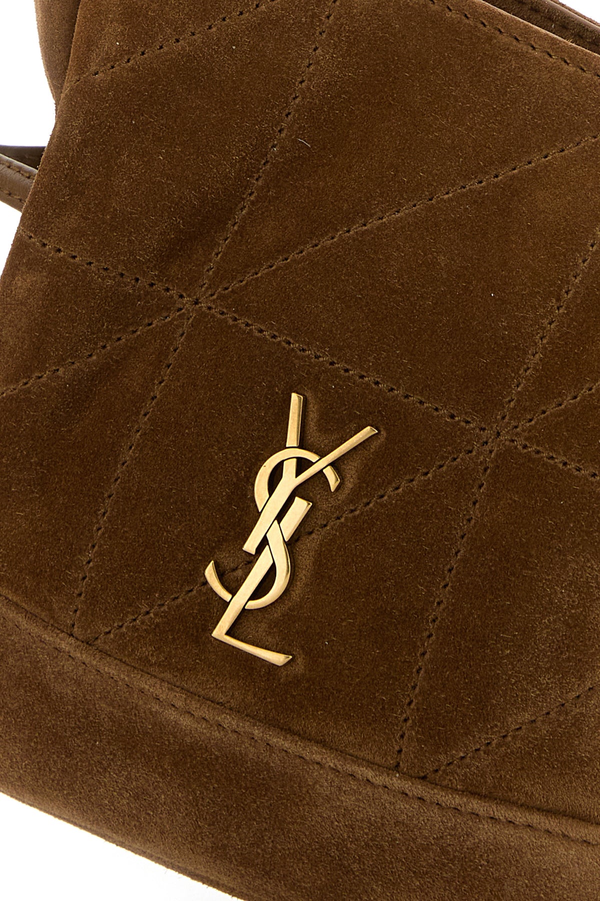 Bucket bag realized in quilted calf suede enriched by iconic Monogram metal detail at the front.
