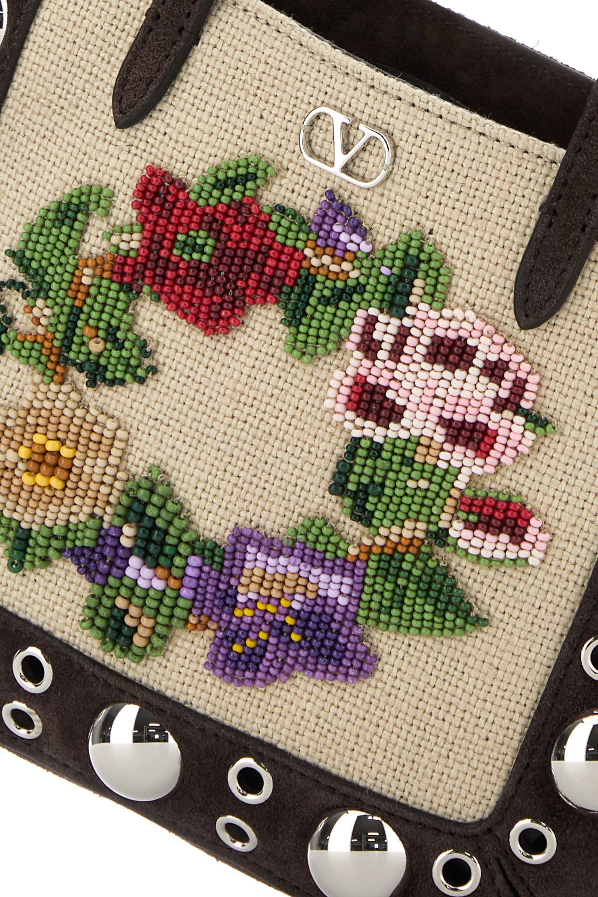 Shoulder bag realized in suede characterized by embroidery with beads at the front enriched by VLogo Signature metal detail and metal studs on the trimmings.