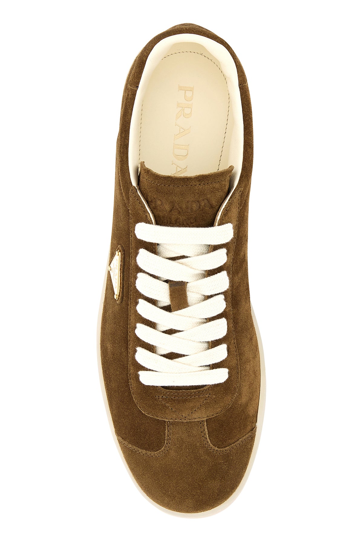 Sneakers realized in suede characterized by embossed logo at the back and logo in relief at the back enriched by iconic logoed triangle on the side.