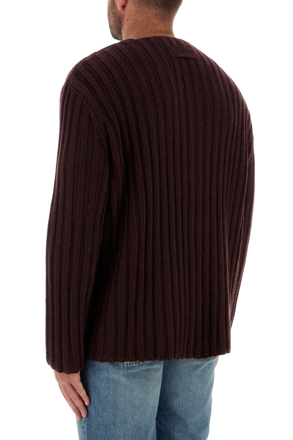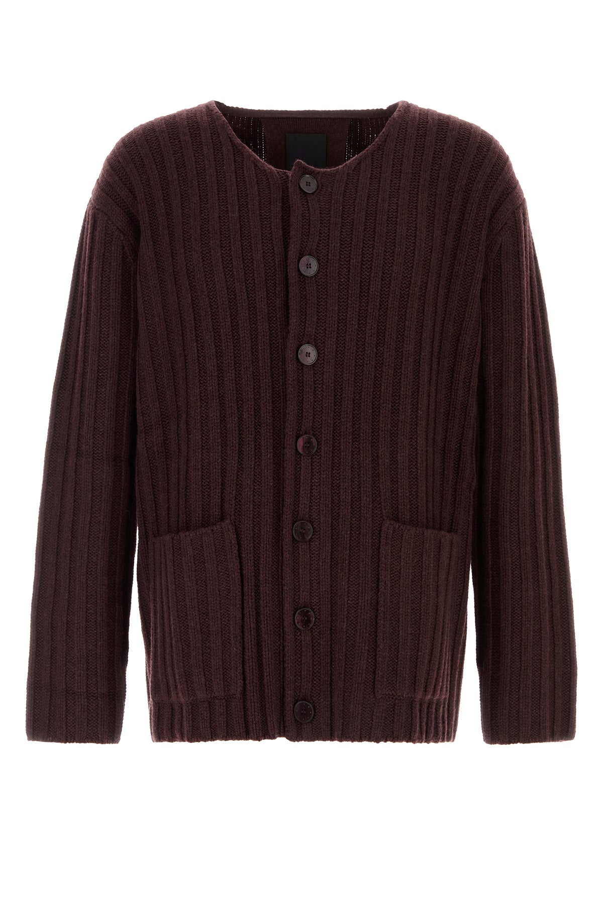 Cardigan realized in pure cashmere enriched by tonal fabric logoed label at the back.