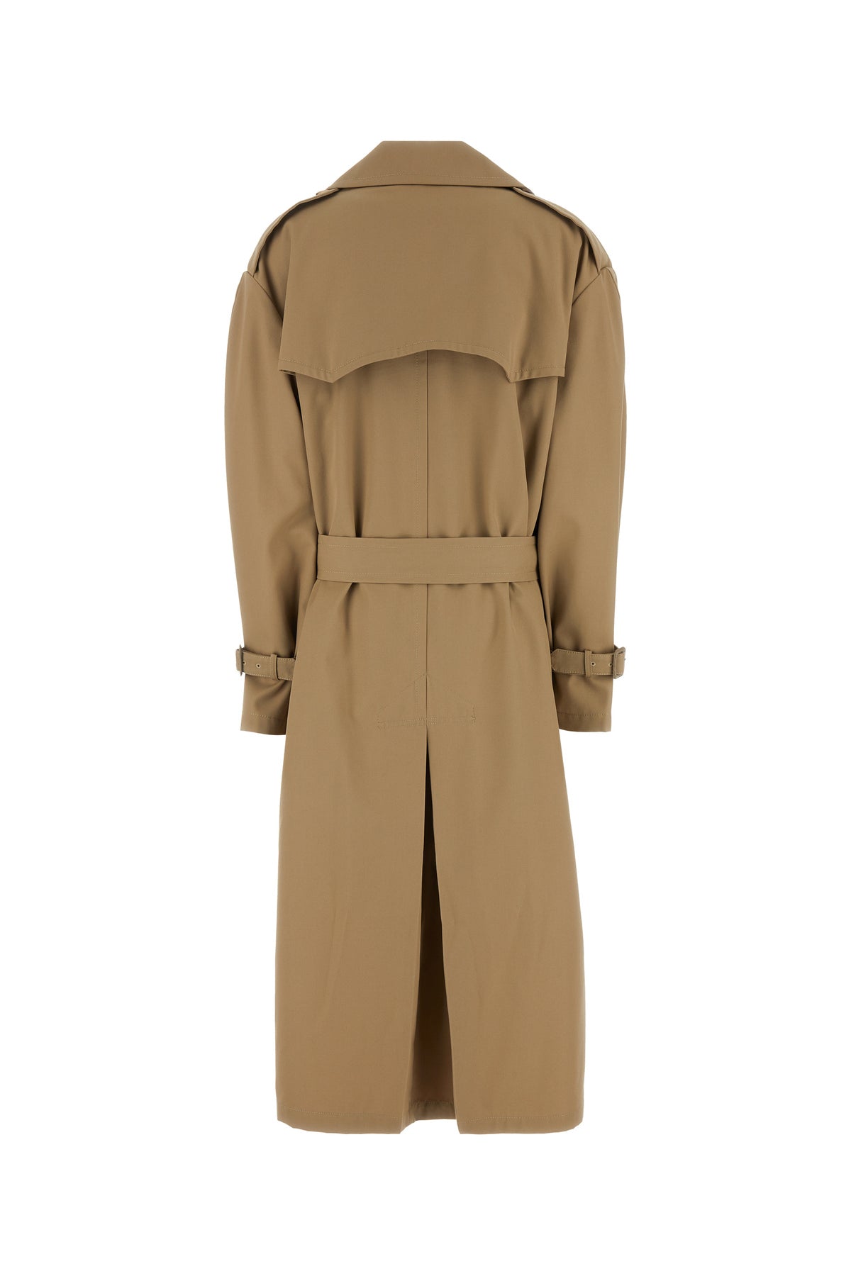 Oversize trench coat realized in gabardine enriched by detachable tonal fabric belt.